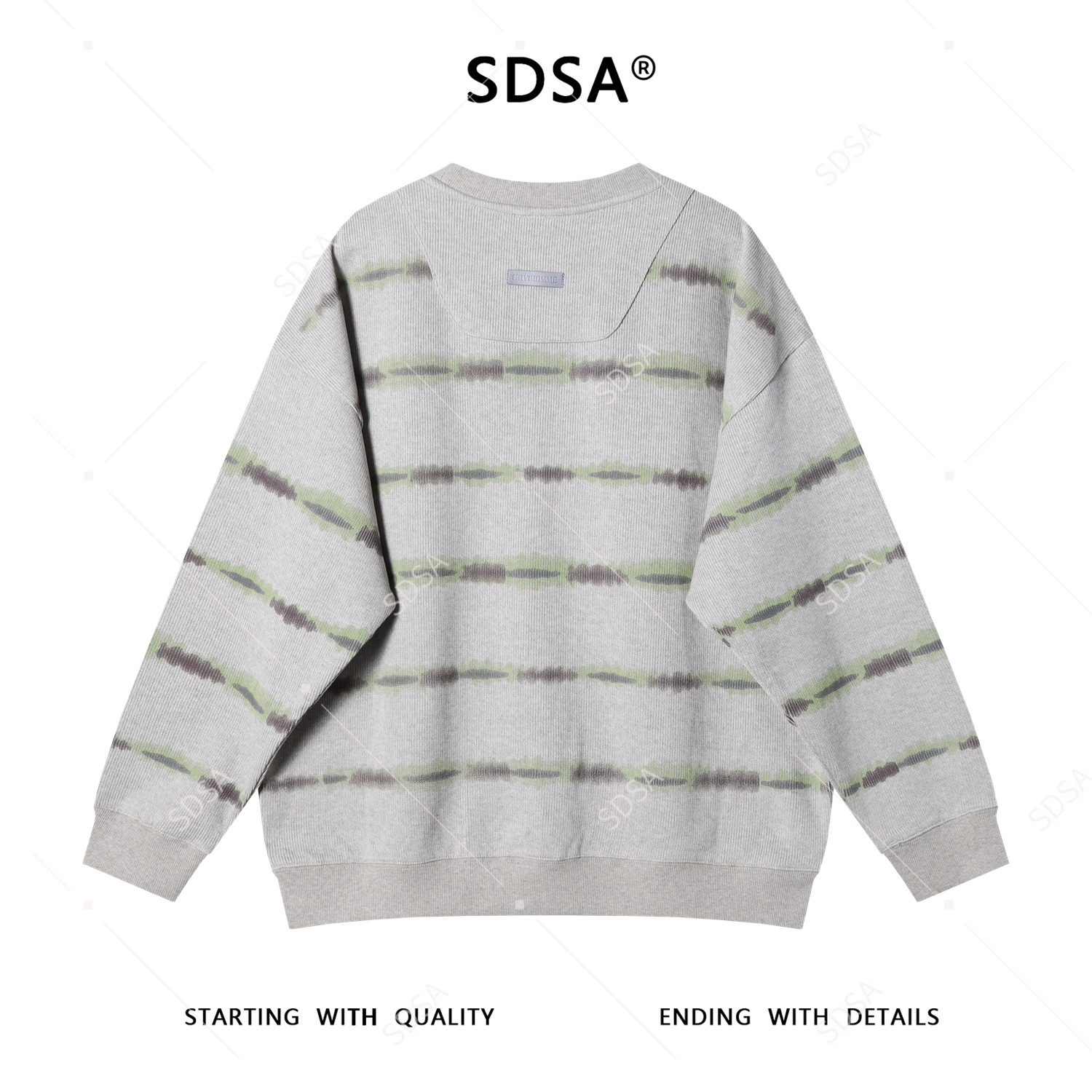 8029SDSA男士秋冬新款痞帅男装时尚潮牌扎染条纹圆领卫衣宽松套头上衣