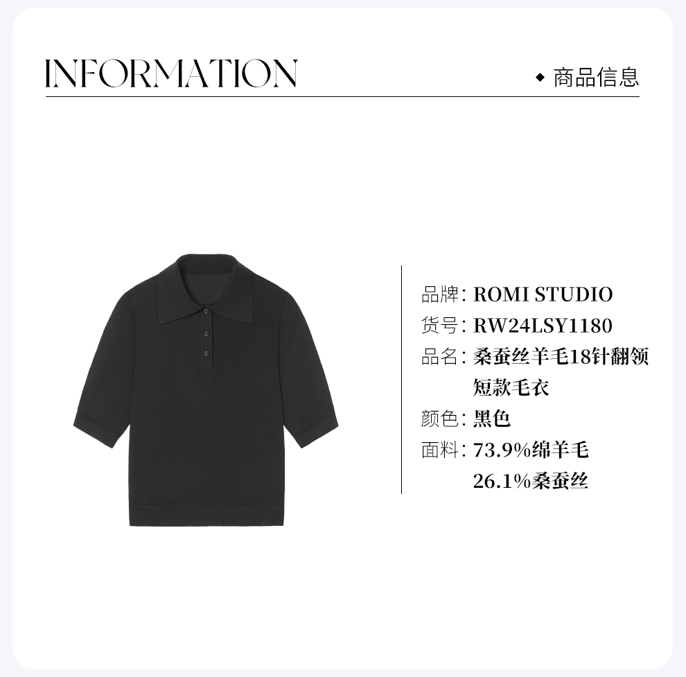 ROMI STUDIO桑蚕丝绵羊毛混纺极简老钱翻领短款针织衫RW24LSY1180【发货时效25天】