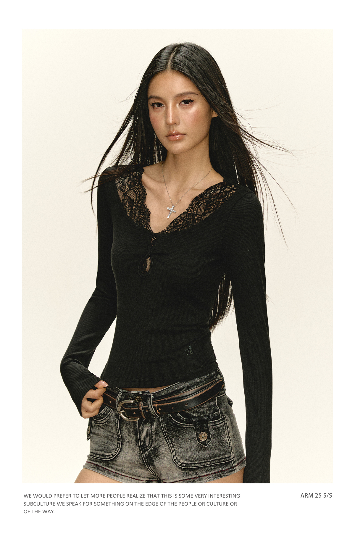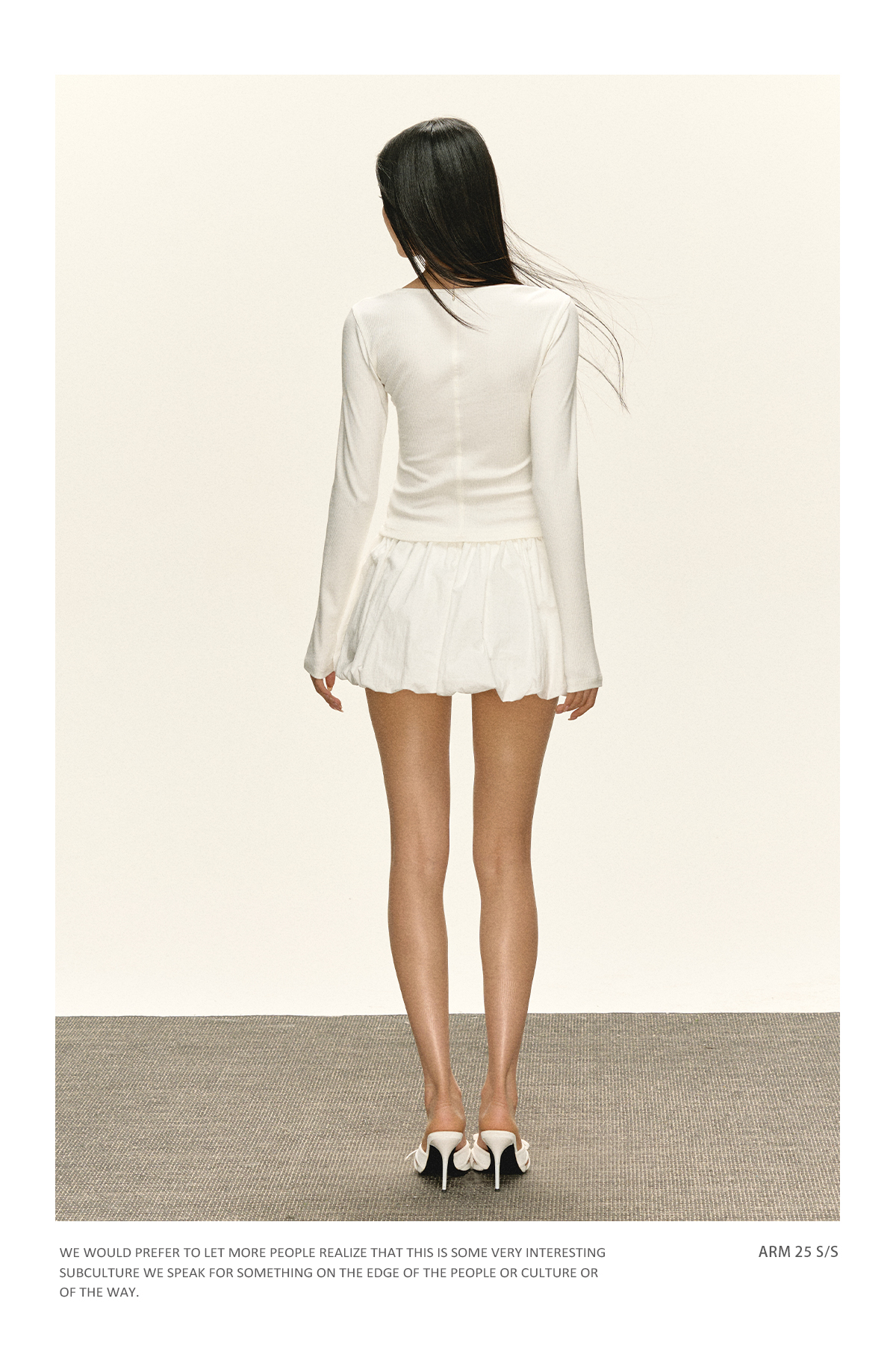 Ariseism 美式复古斜肩长袖上衣+短裤两件套早秋新款套装女