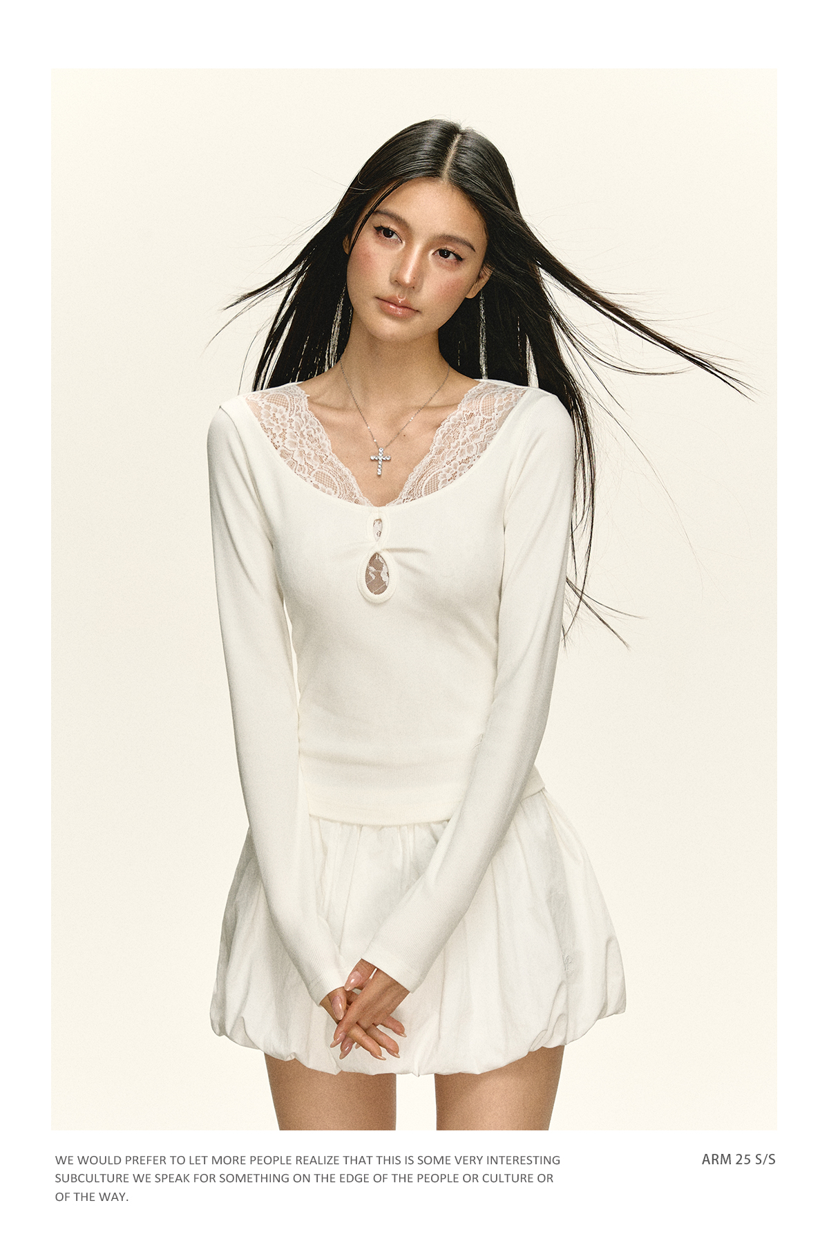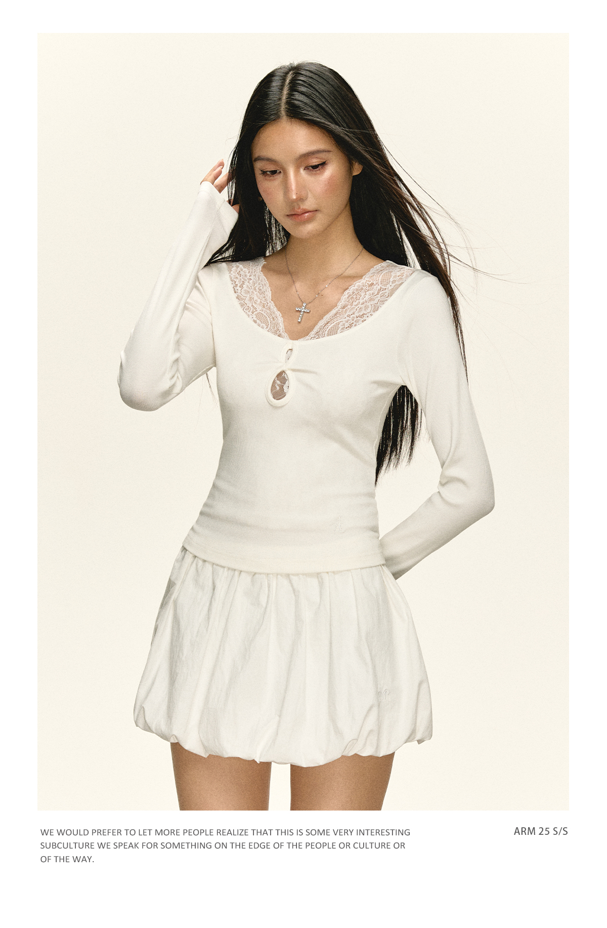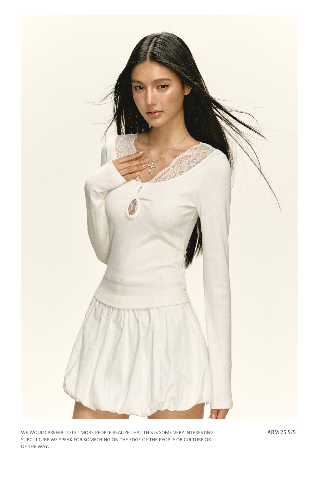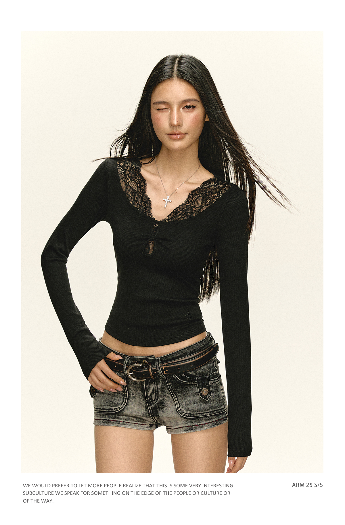 Ariseism 美式辣妹设计感一字肩长袖T恤女春季新款内搭修身上衣