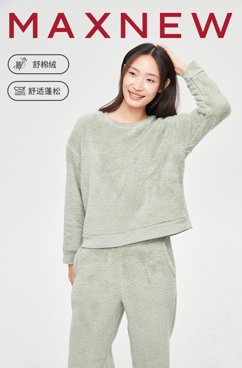 【门店同款】马恩MAXNEW女装珊瑚绒家居上衣睡衣长袖休闲秋季保暖