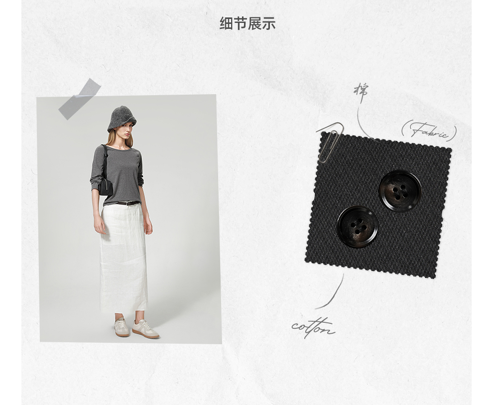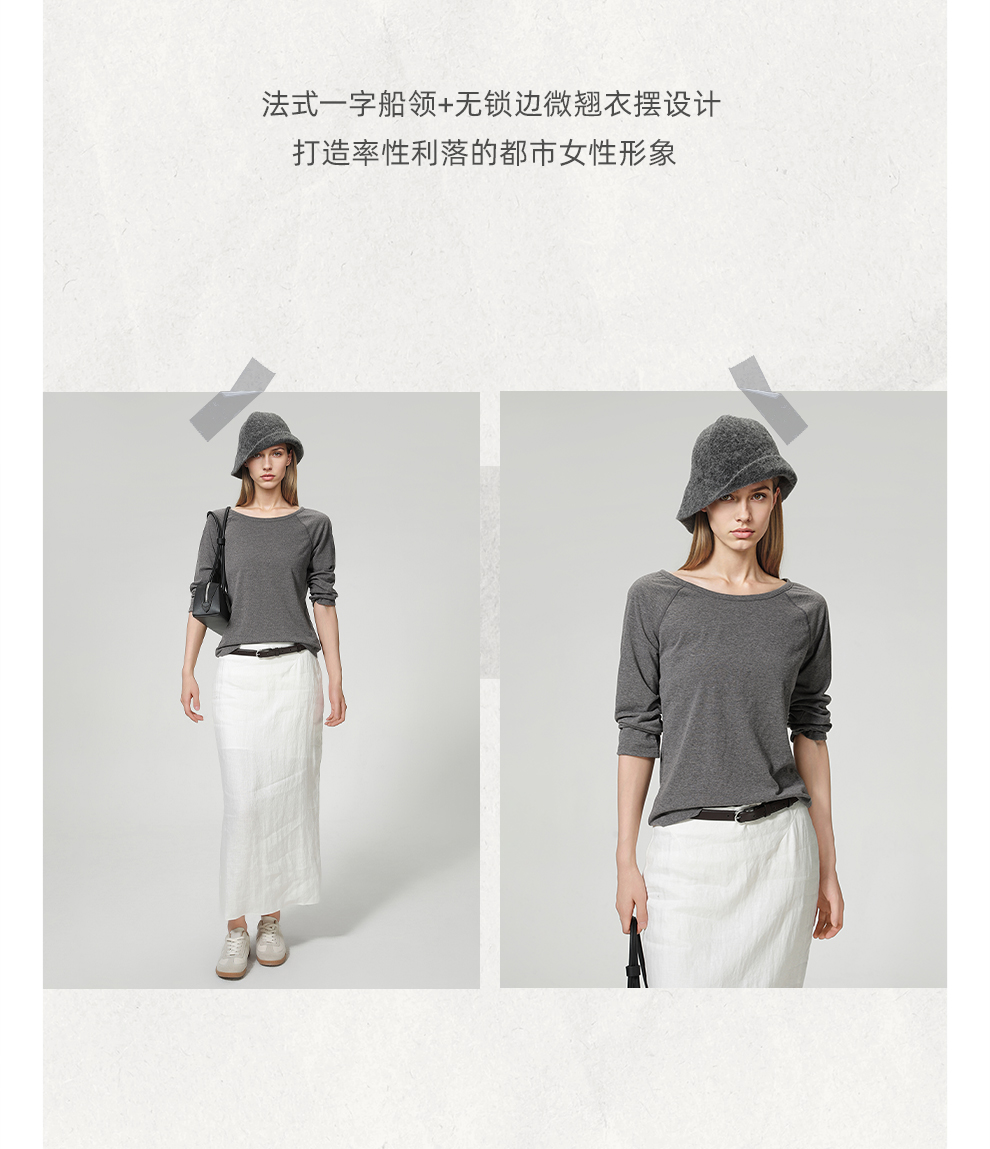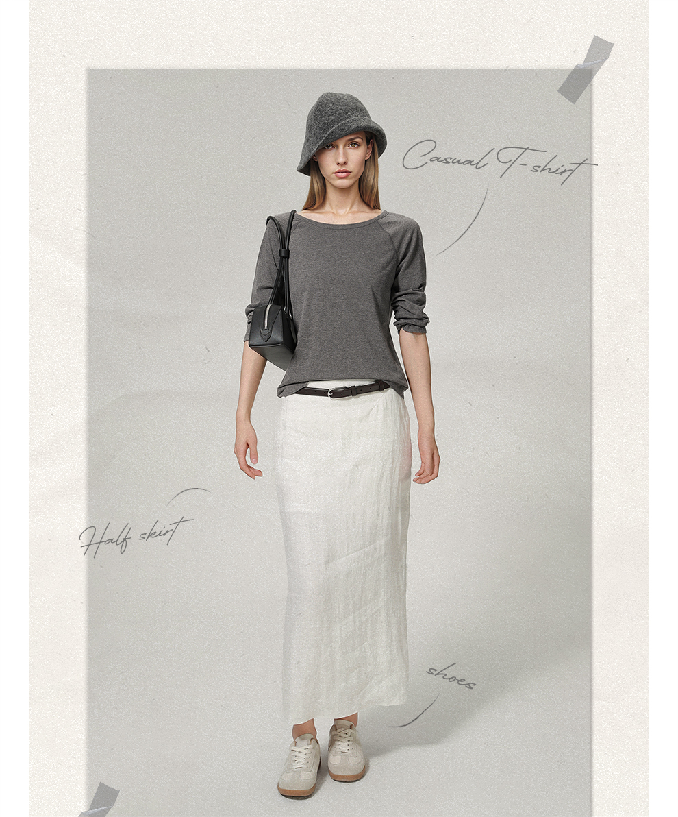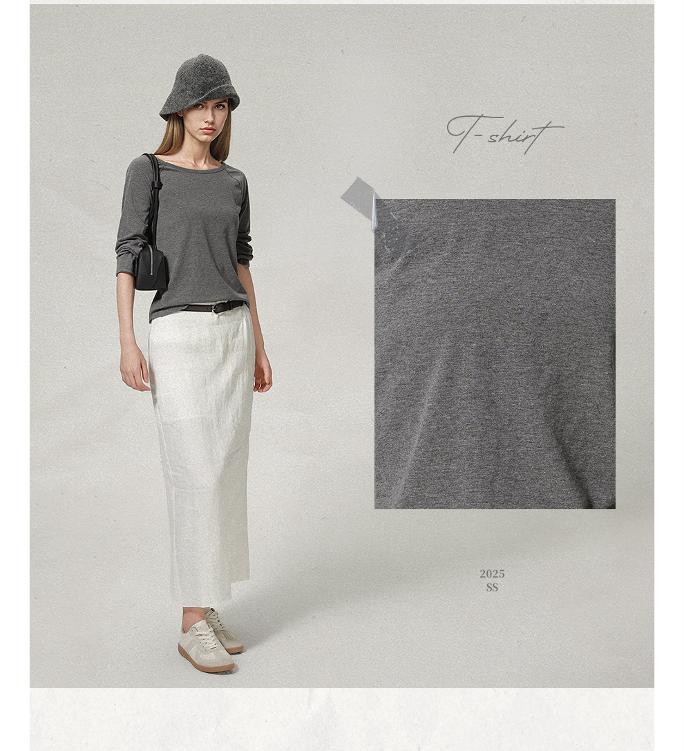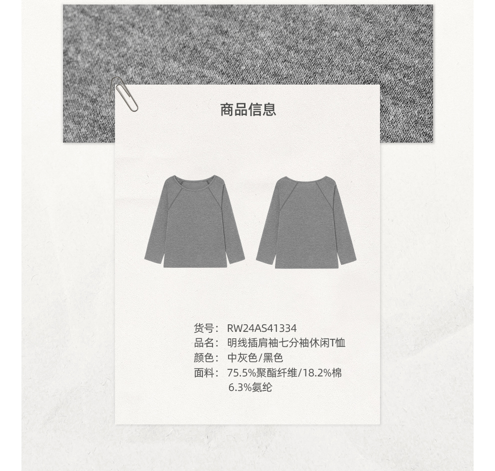 ROMI STUDIO“法式优雅”卷边弹力肤感休闲圆领中袖T恤 RW24AS41334