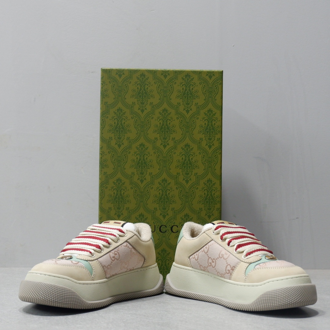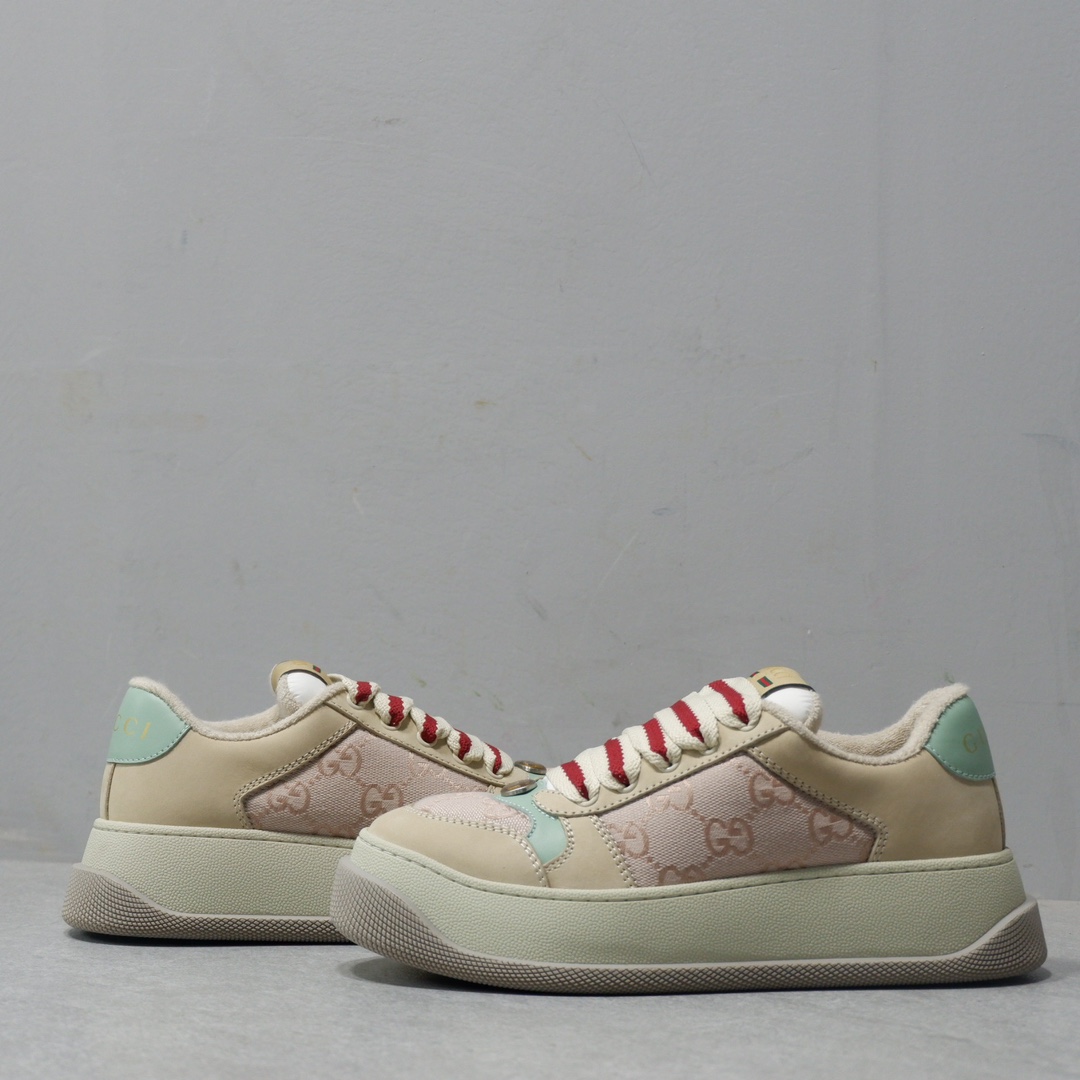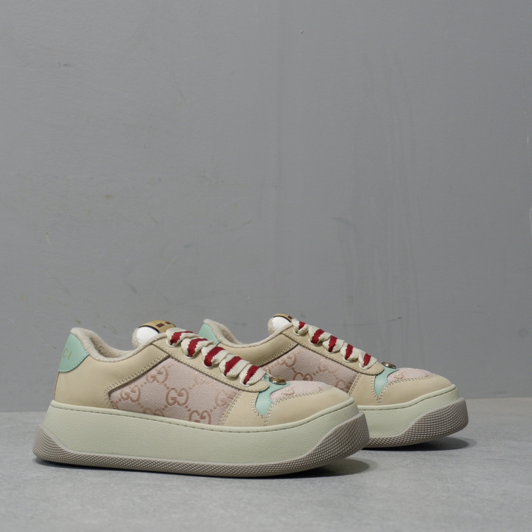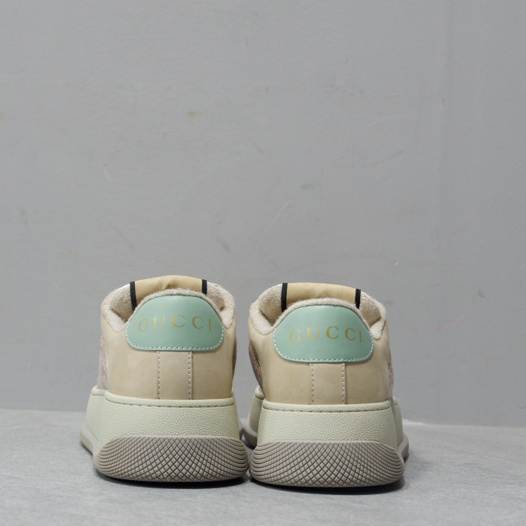 𝙂𝙪𝙘𝙘𝙞 𝘿𝙤𝙪𝙗𝙡𝙚 𝙎𝙘𝙧𝙚𝙚𝙣𝙚𝙧 古驰最新款胖嘟嘟厚底脏脏鞋~~情侣款休闲鞋 鞋面擦色牛皮拼接经典双G布面料,毛巾布里细腻吸汗透气,垫脚乳胶注塑一体,私模6cm厚TPU双色底