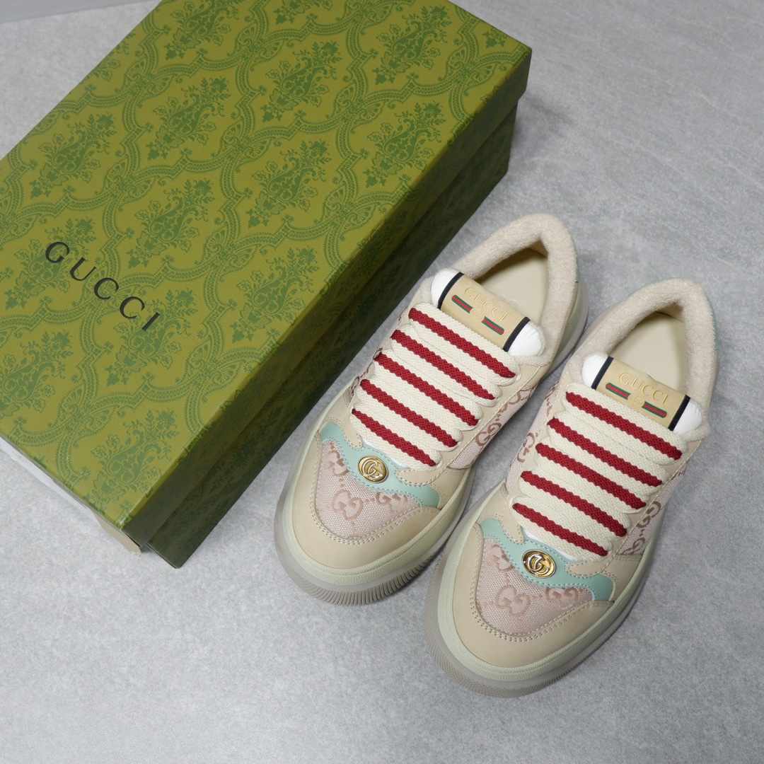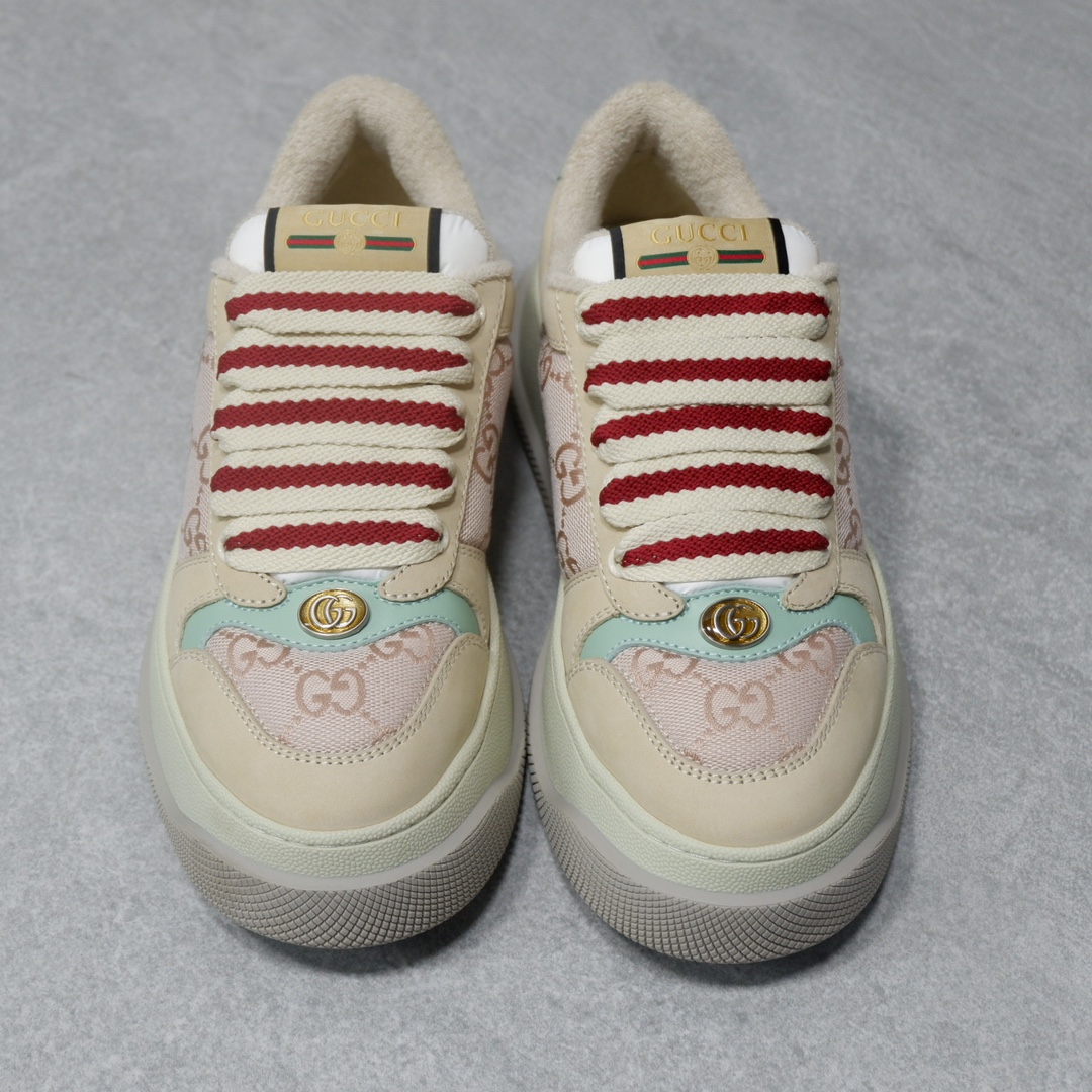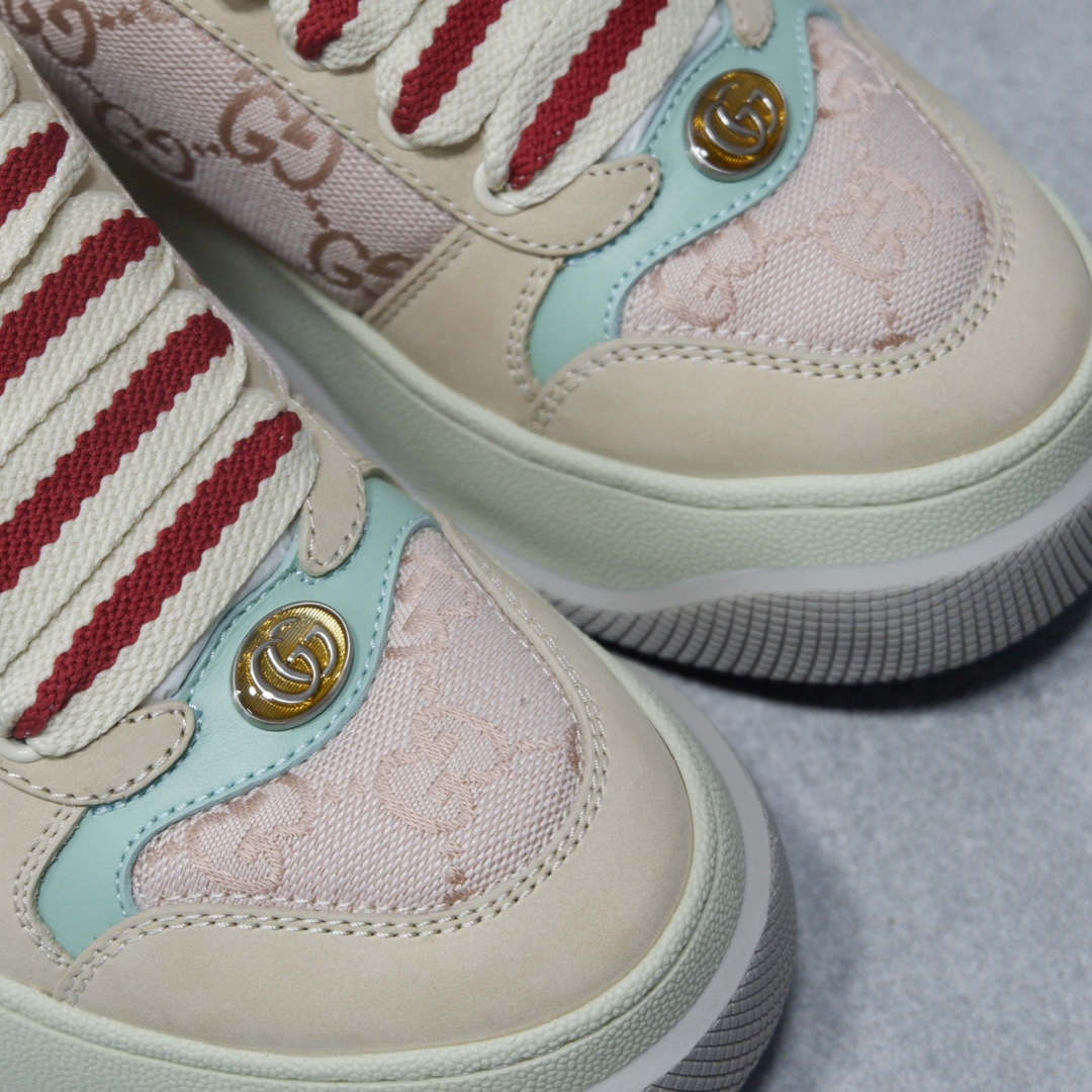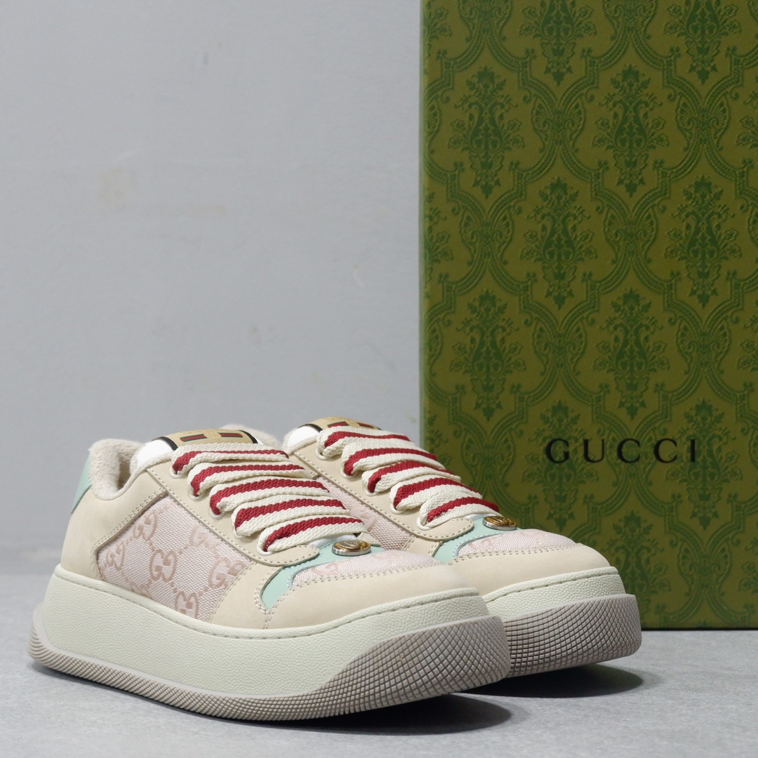 𝙂𝙪𝙘𝙘𝙞 𝘿𝙤𝙪𝙗𝙡𝙚 𝙎𝙘𝙧𝙚𝙚𝙣𝙚𝙧 古驰最新款胖嘟嘟厚底脏脏鞋~~情侣款休闲鞋 鞋面擦色牛皮拼接经典双G布面料,毛巾布里细腻吸汗透气,垫脚乳胶注塑一体,私模6cm厚TPU双色底