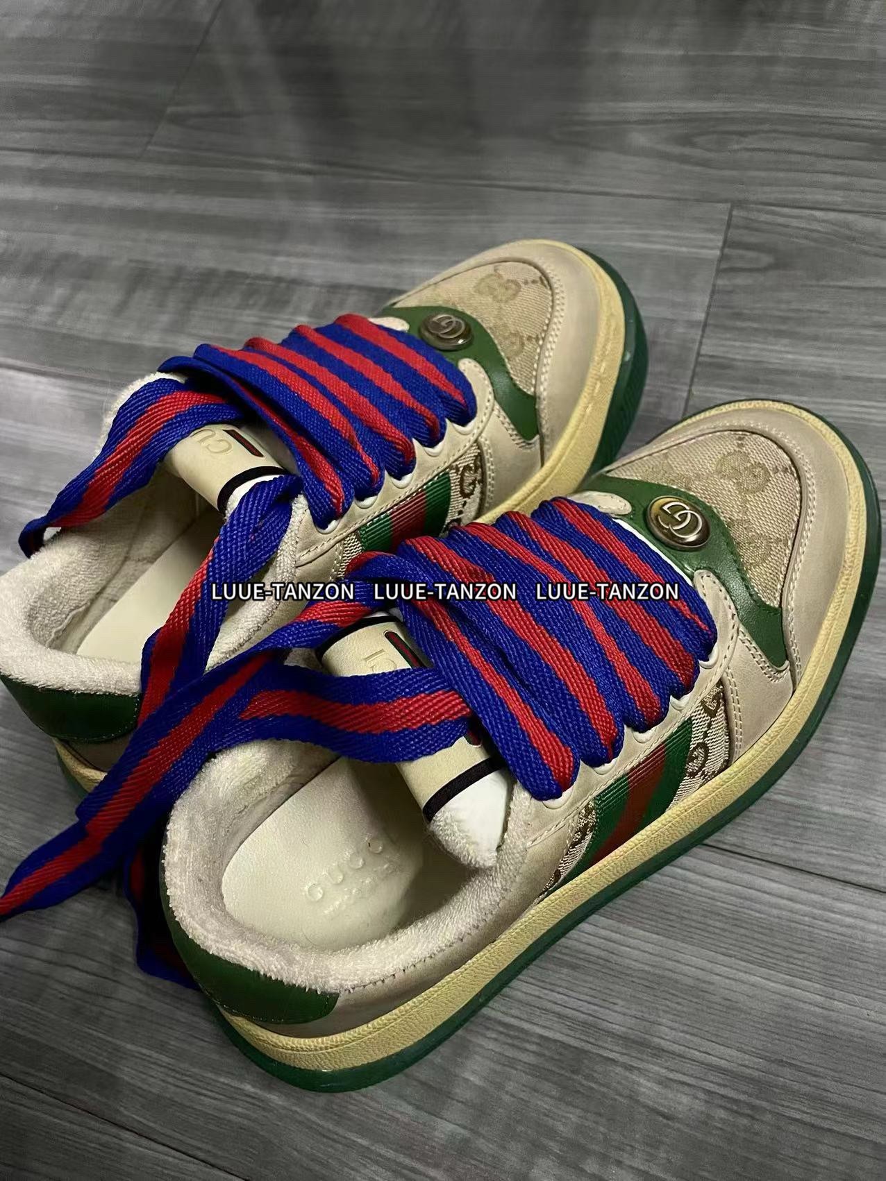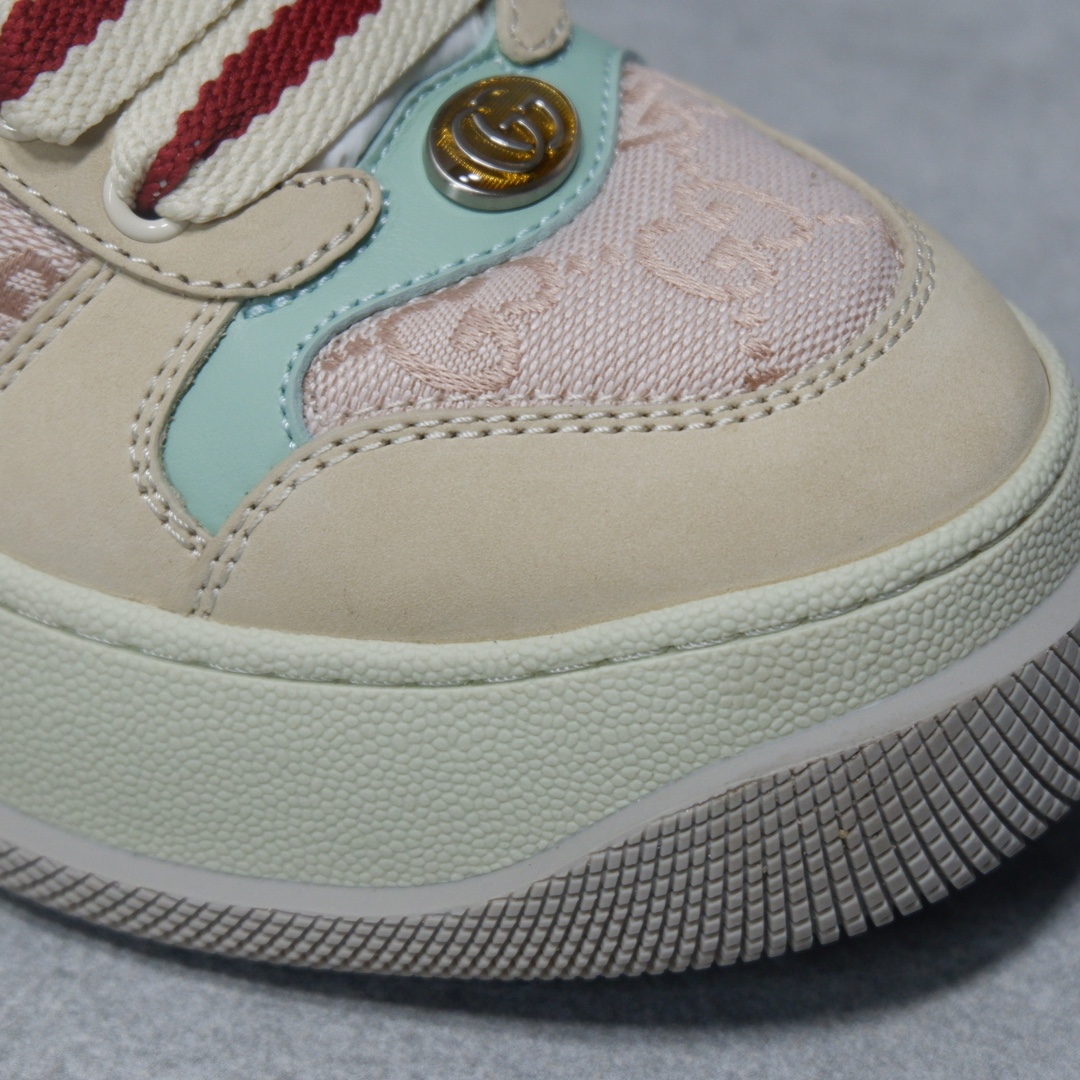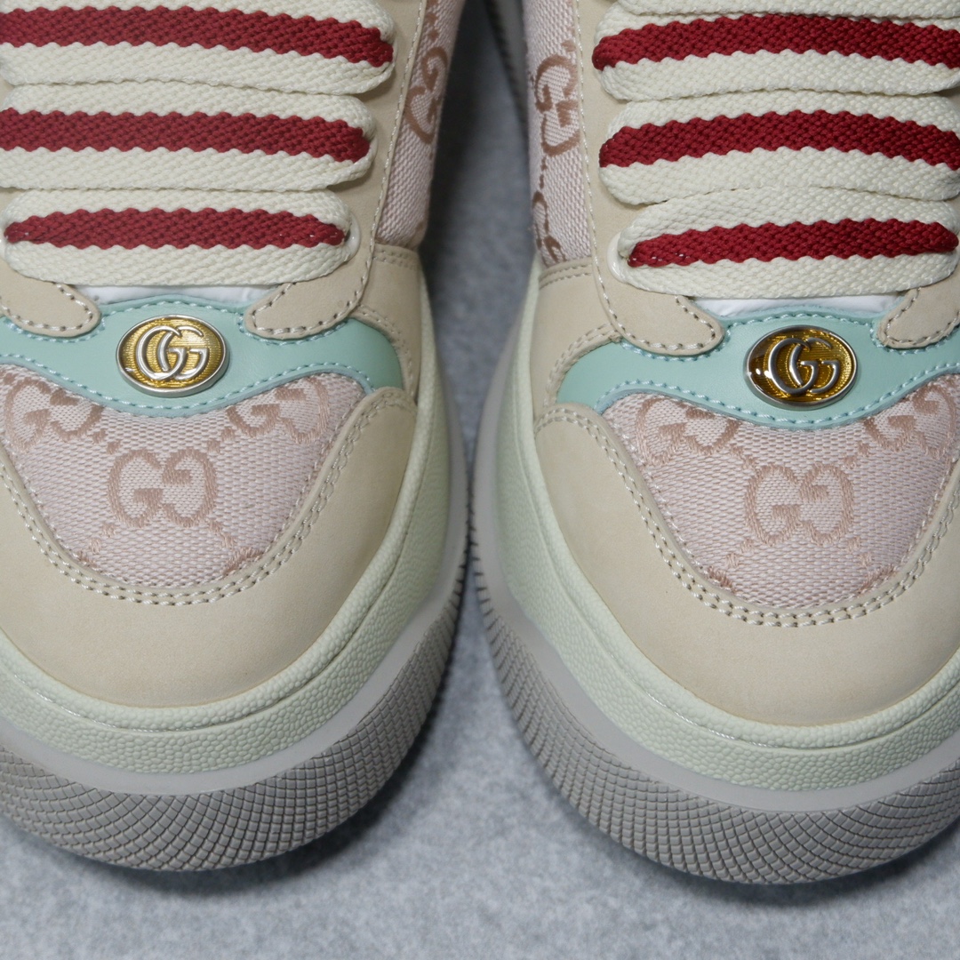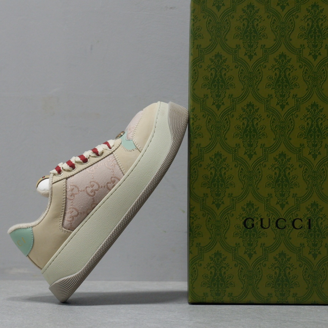 𝙂𝙪𝙘𝙘𝙞 𝘿𝙤𝙪𝙗𝙡𝙚 𝙎𝙘𝙧𝙚𝙚𝙣𝙚𝙧 古驰最新款胖嘟嘟厚底脏脏鞋~~情侣款休闲鞋 鞋面擦色牛皮拼接经典双G布面料,毛巾布里细腻吸汗透气,垫脚乳胶注塑一体,私模6cm厚TPU双色底