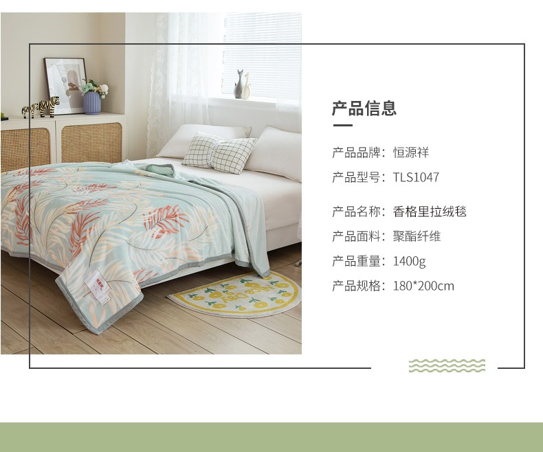 恒源祥(HYX) 恒源祥礼业TLS1047珊瑚绒薄毯香格里拉绒毯 香格里拉 180*200