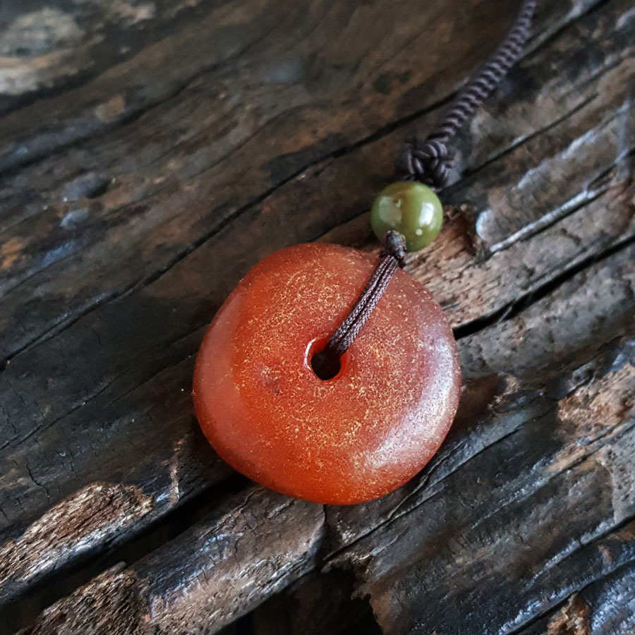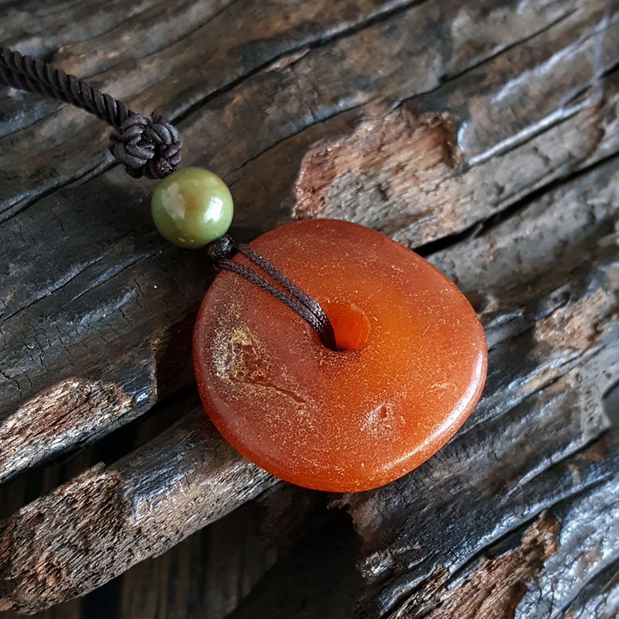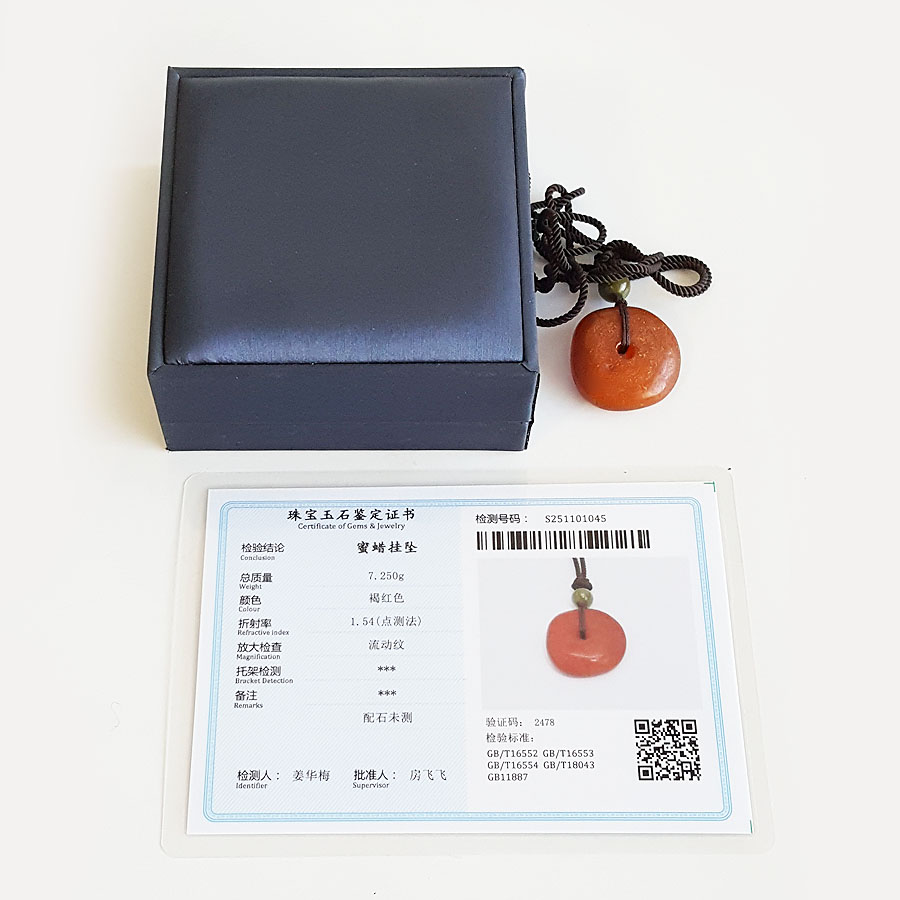 名称 | 天然无杂裂满蜜鸡油黄圆形平安扣老蜜蜡吊坠项链 |