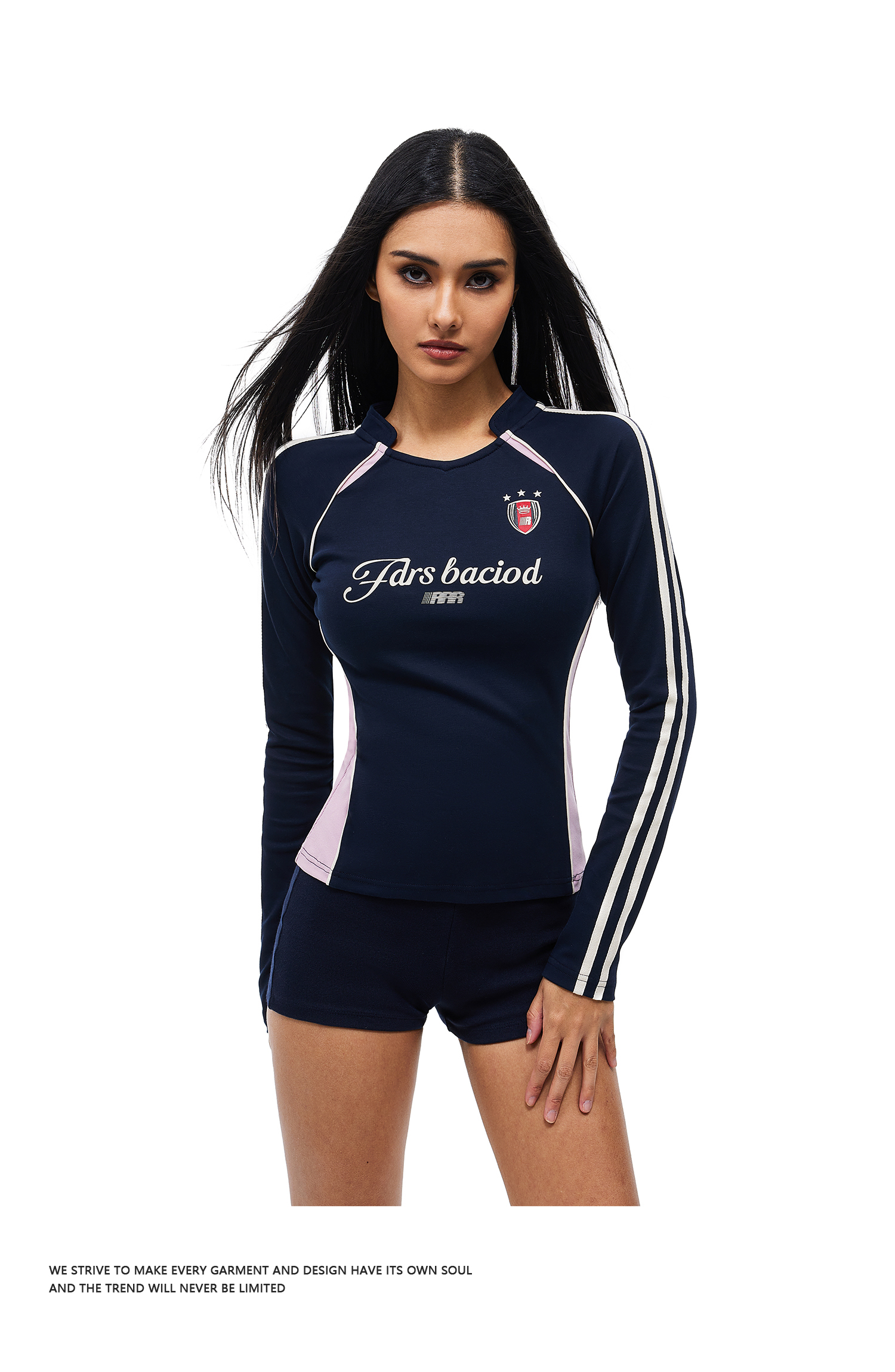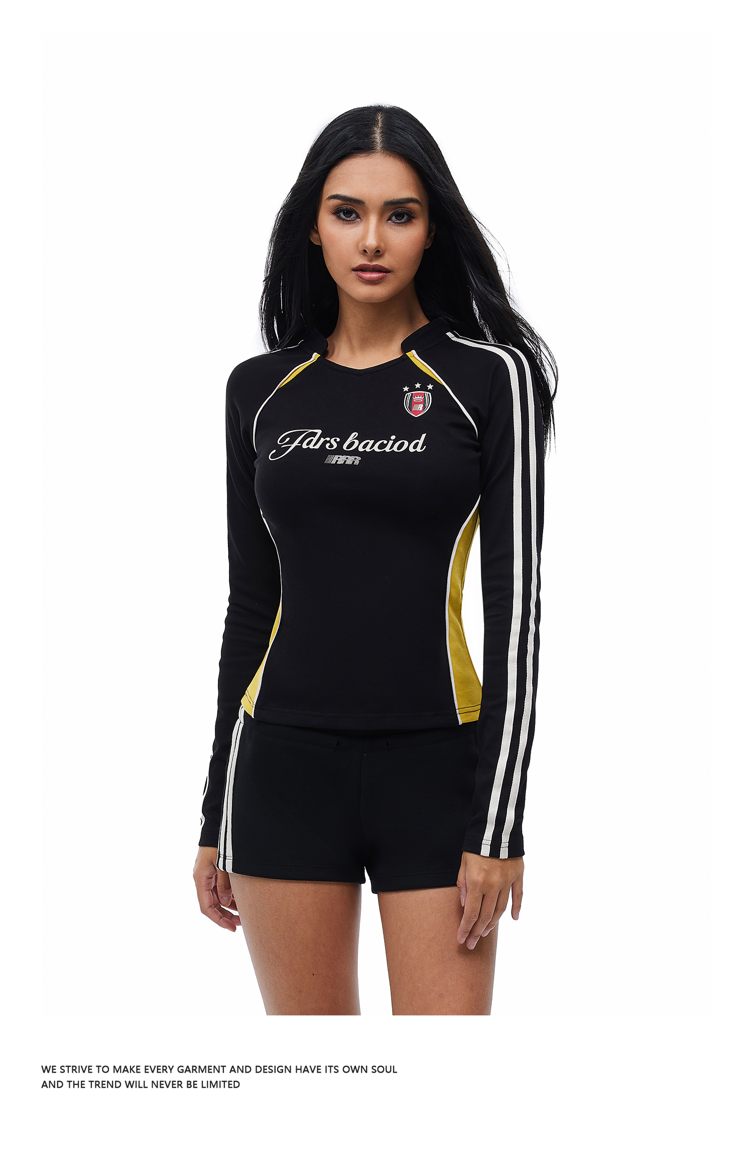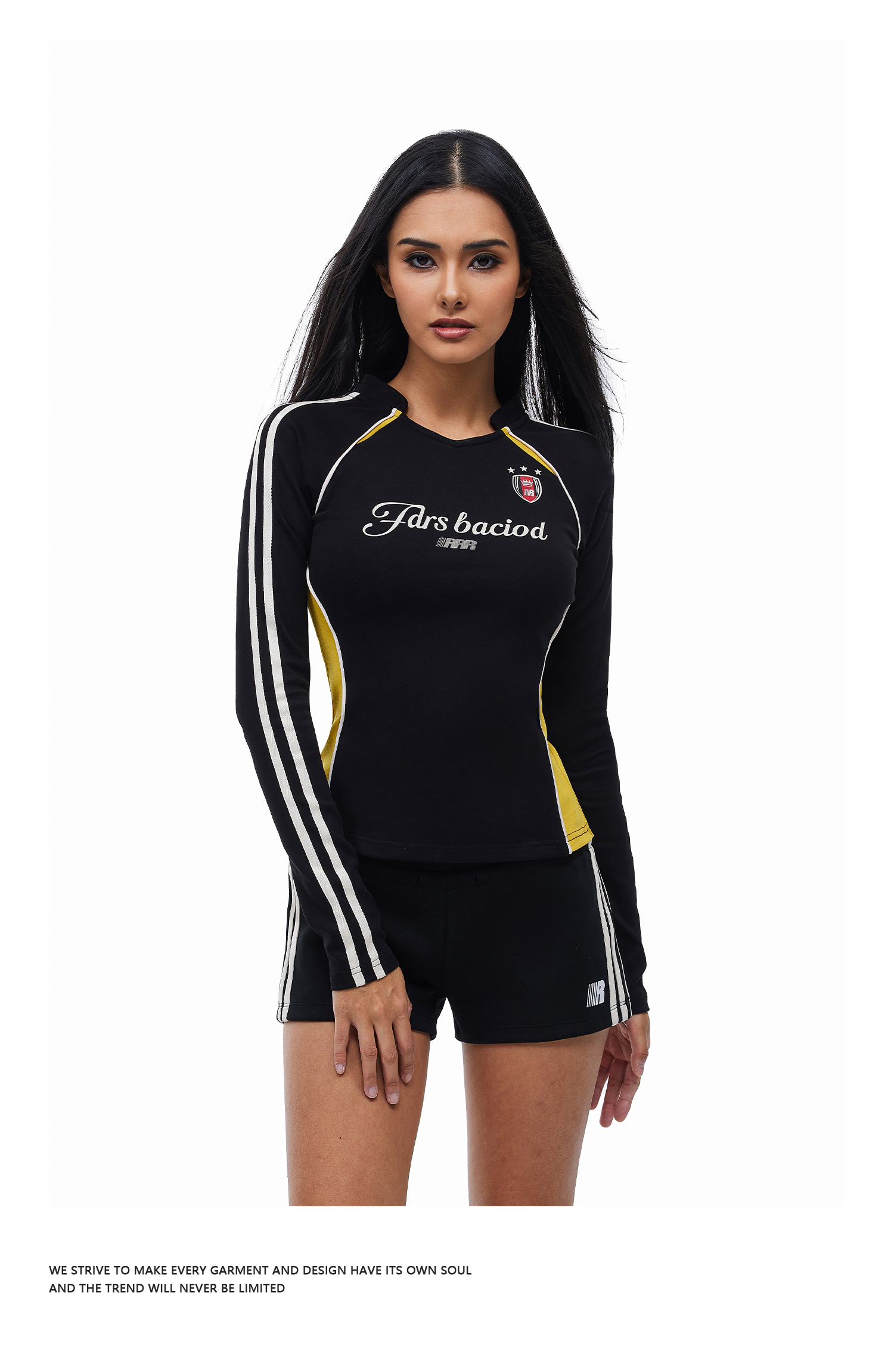 FDR旗舰店 柔软亲肤高弹保暖修身长袖t恤女秋季V领纽扣运动上衣