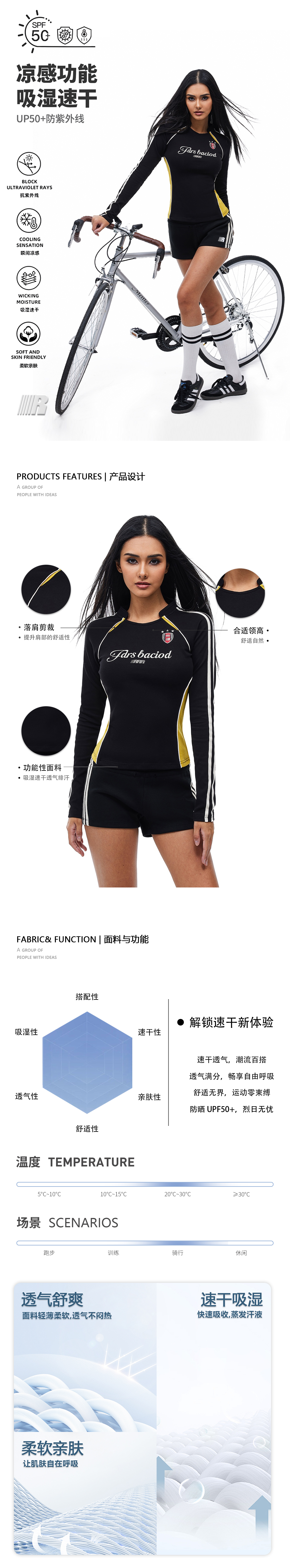 FDR官方店 复古户外运动拼接织带长袖T恤女秋季速干骑行修身上衣