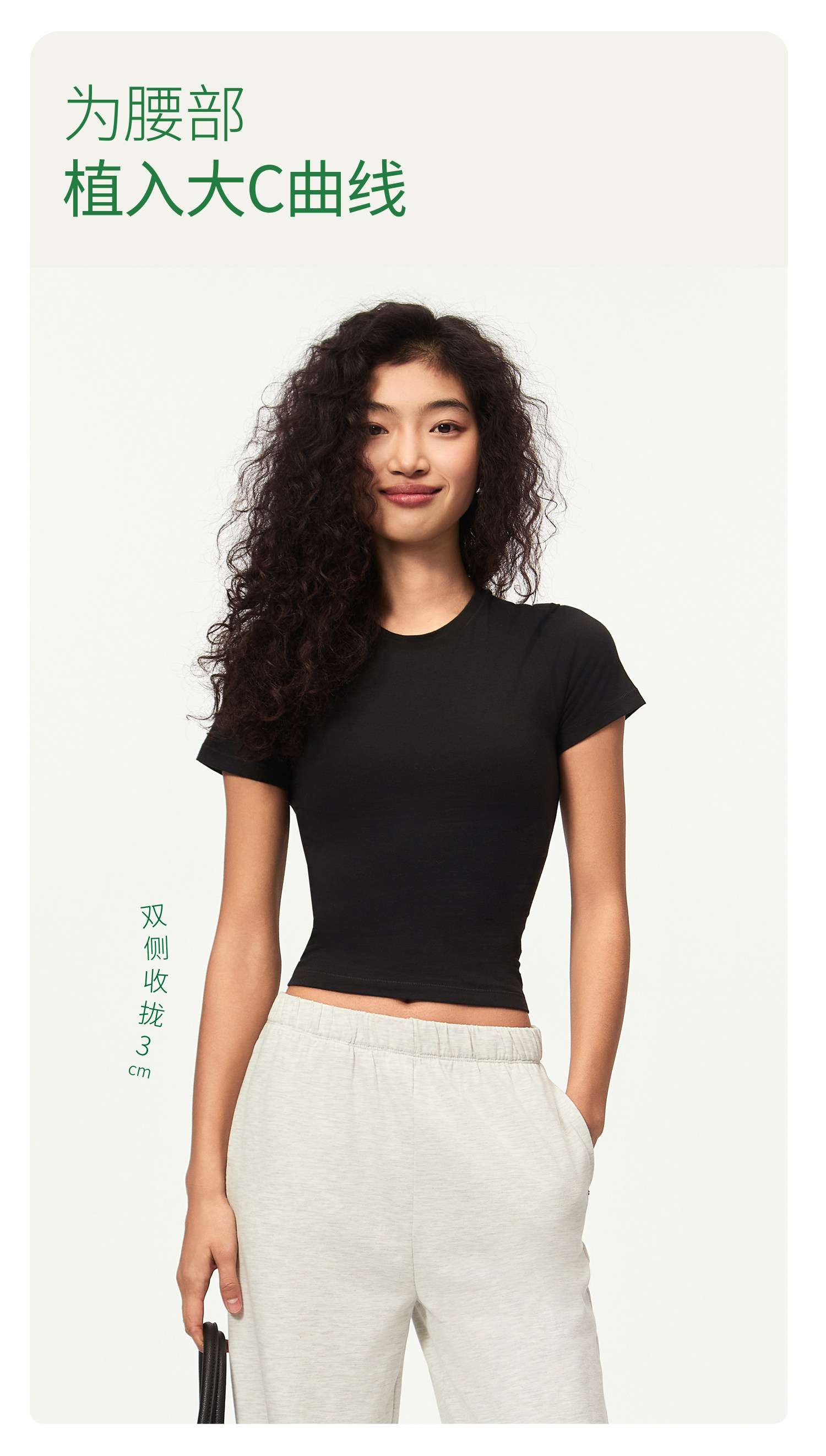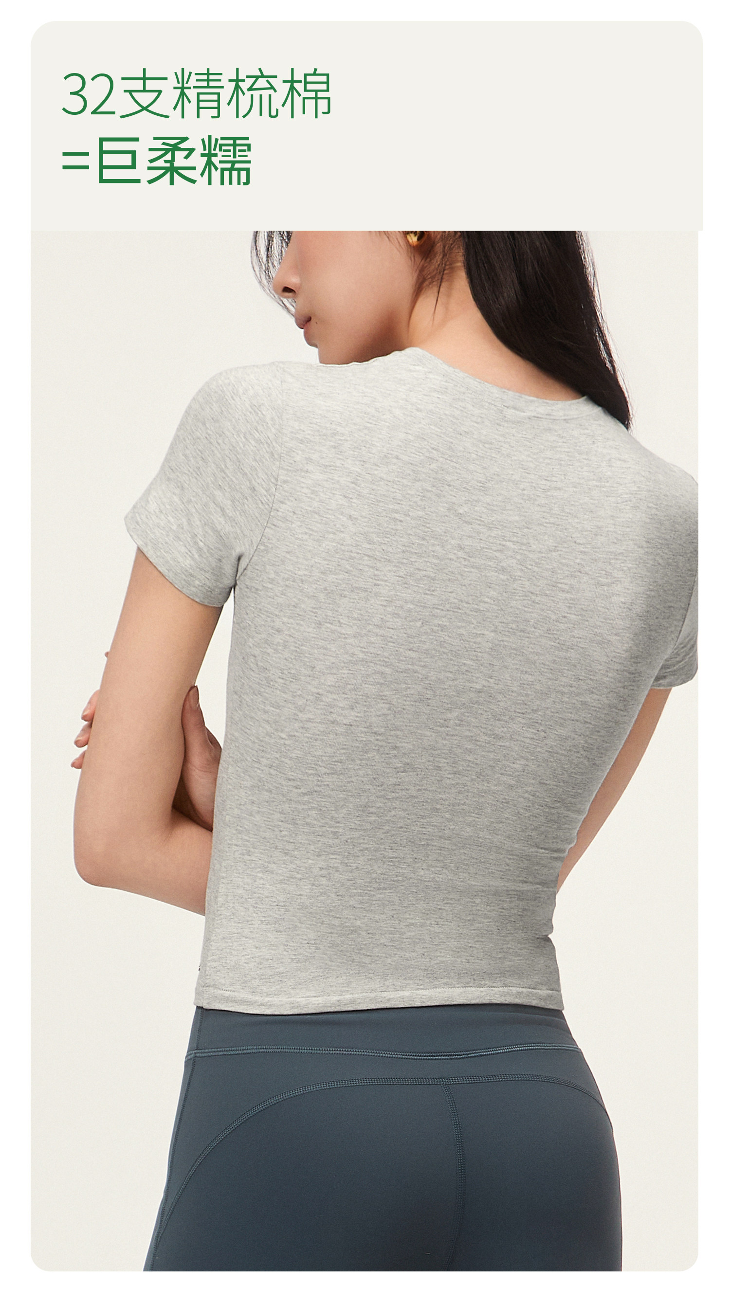 YOTTOY小蛮腰高棉短袖柔软修身瑜伽服运动跑步训练普拉提健身衣夏