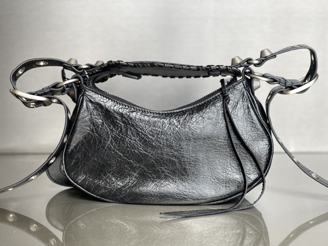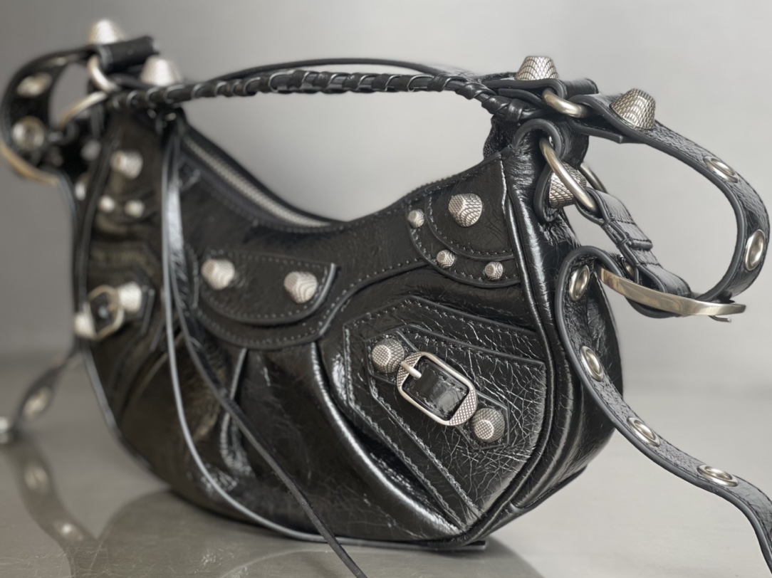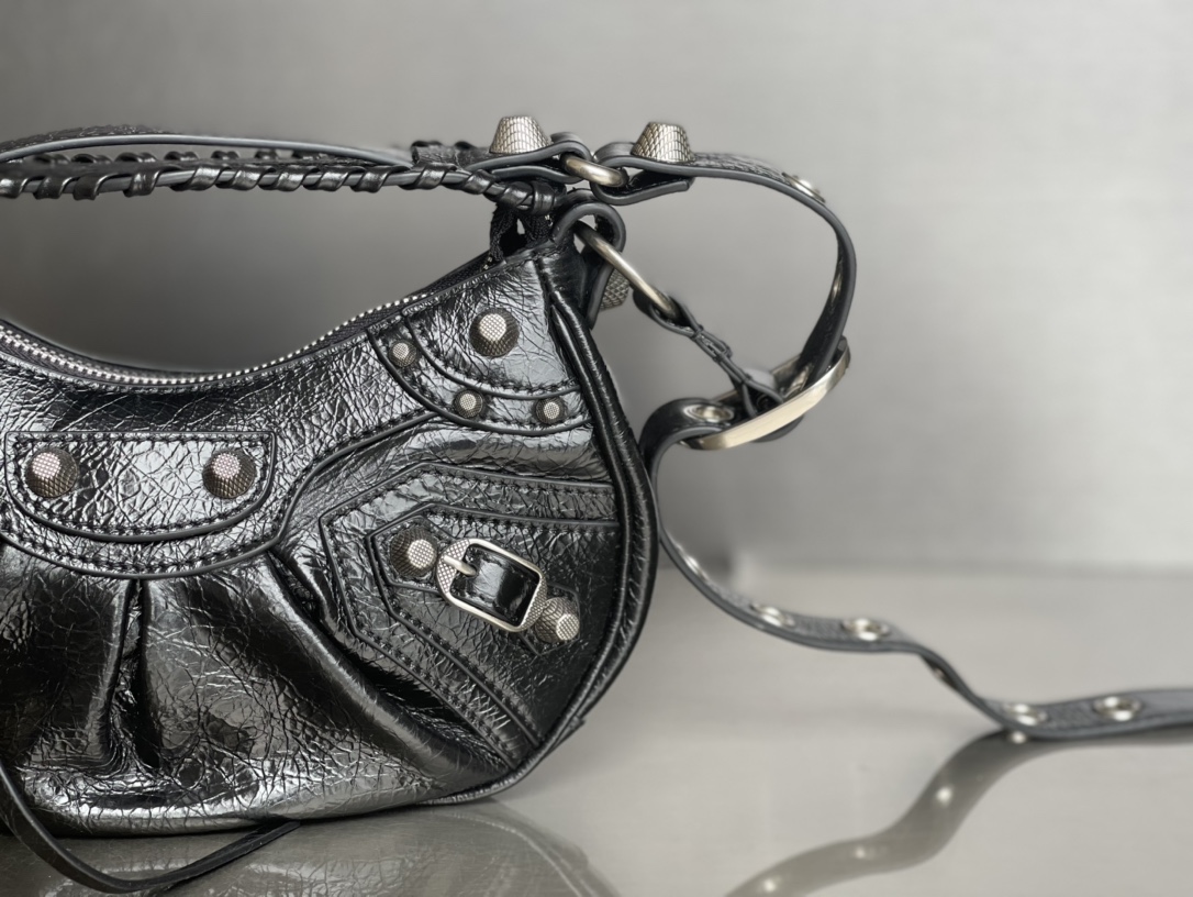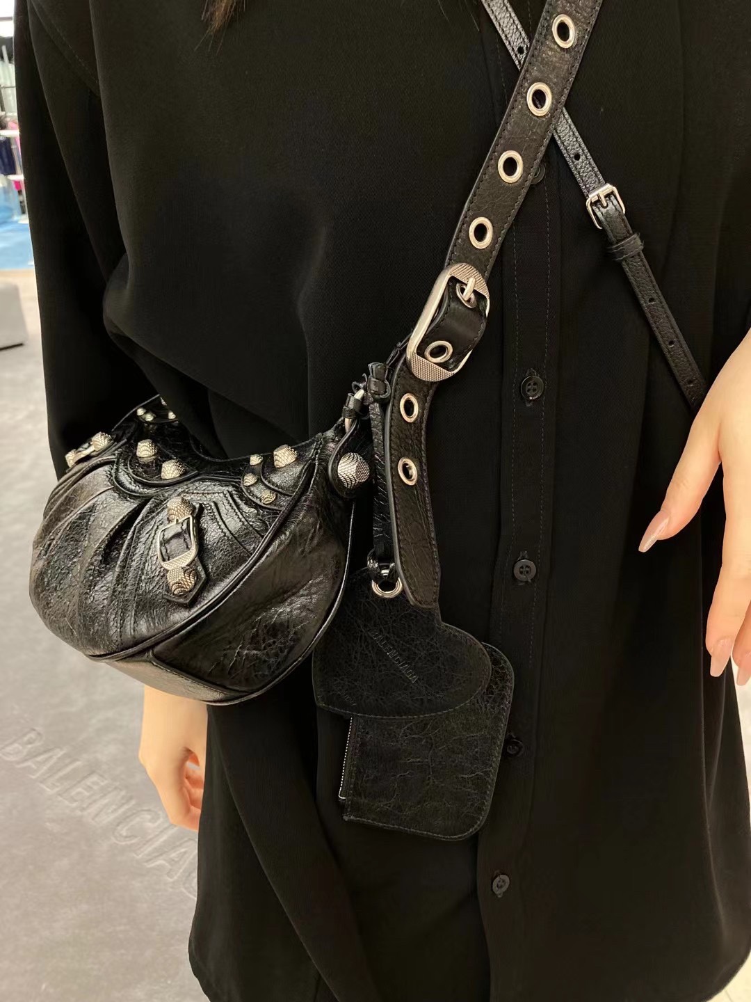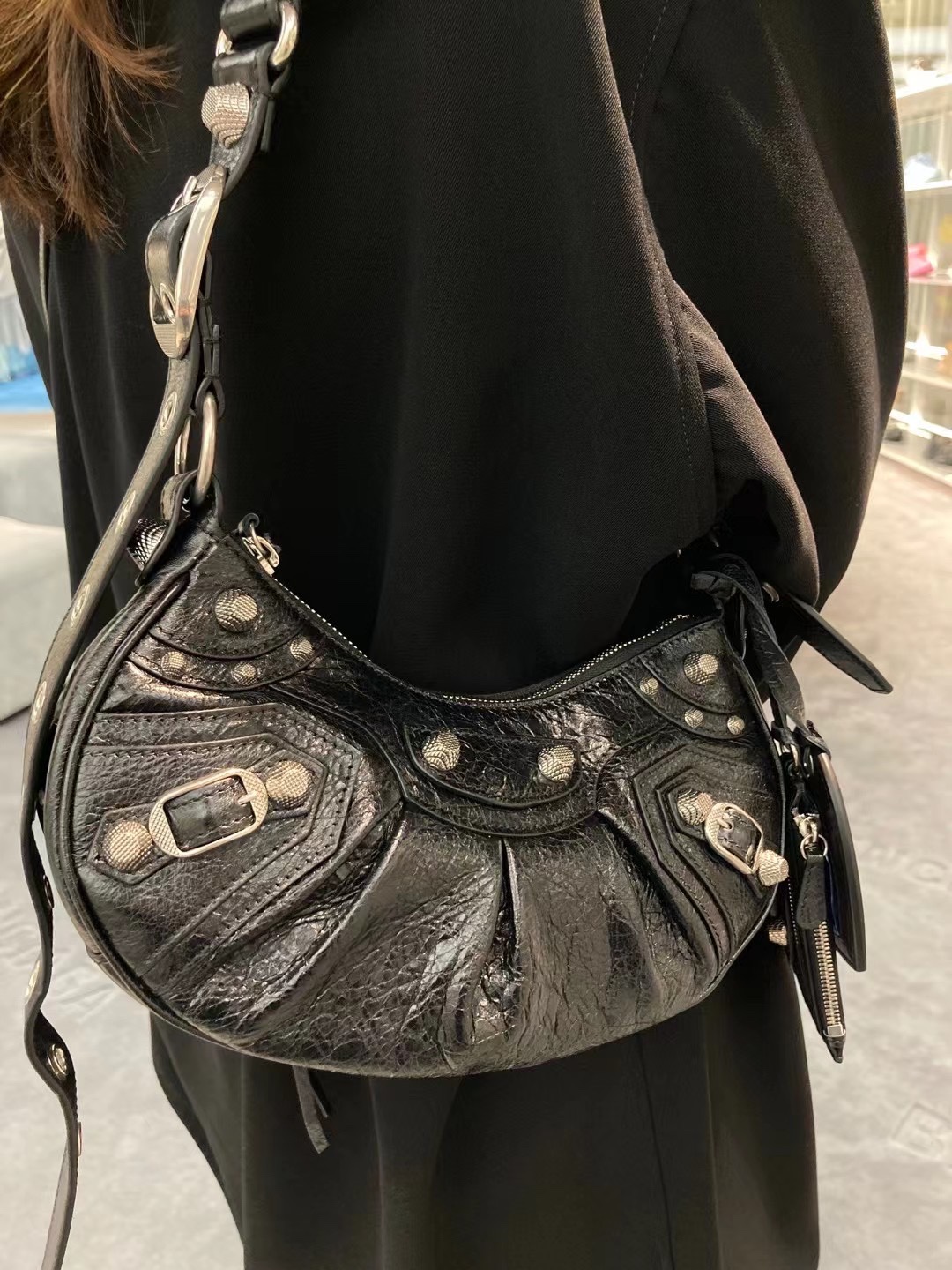 巴黎世家-Le Cagole S做旧银配件心形化妆镜羊皮饺子包机车包半月包月牙包单肩斜挎手提包 女款 (LZ)