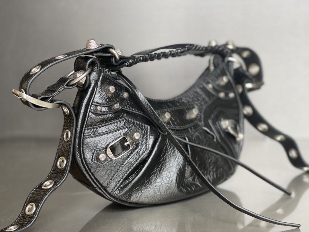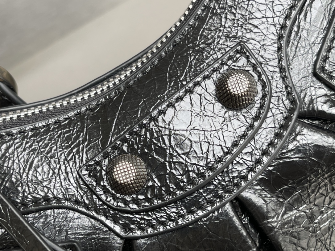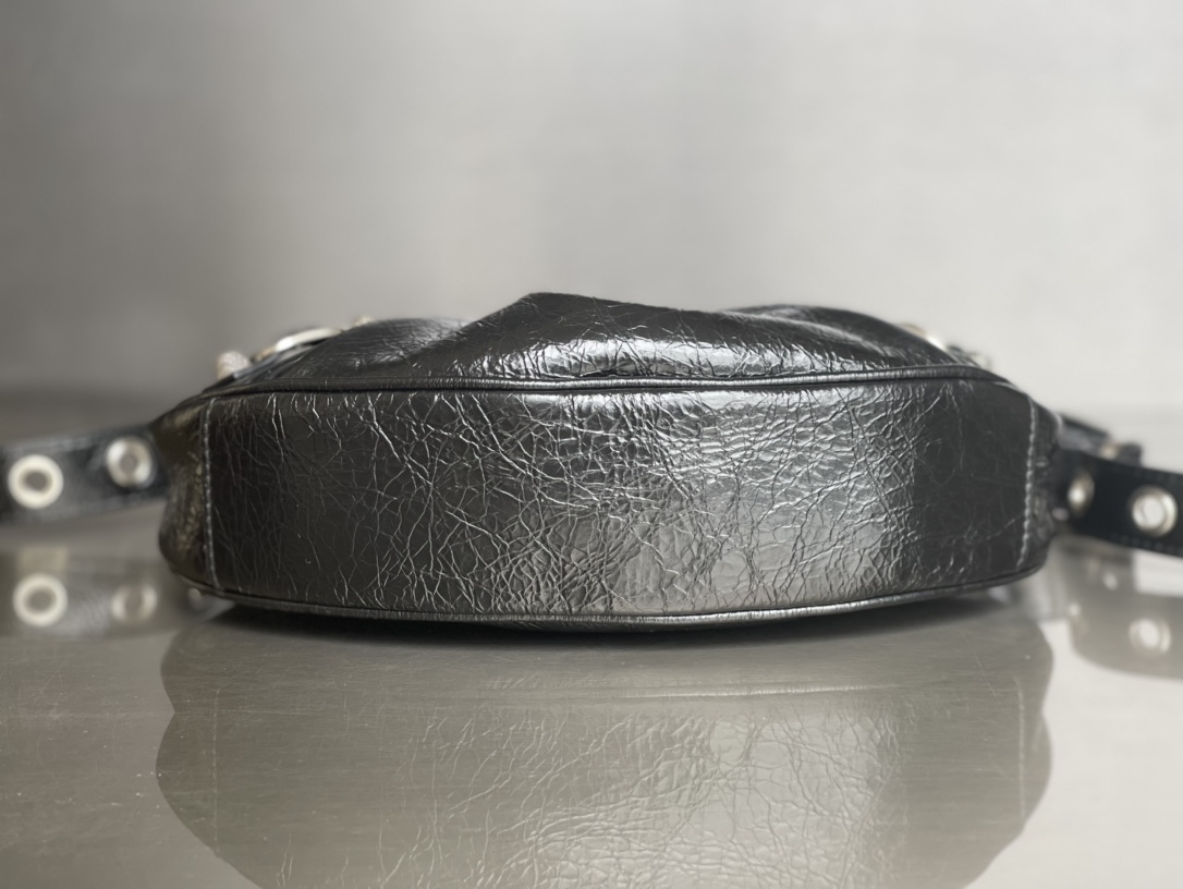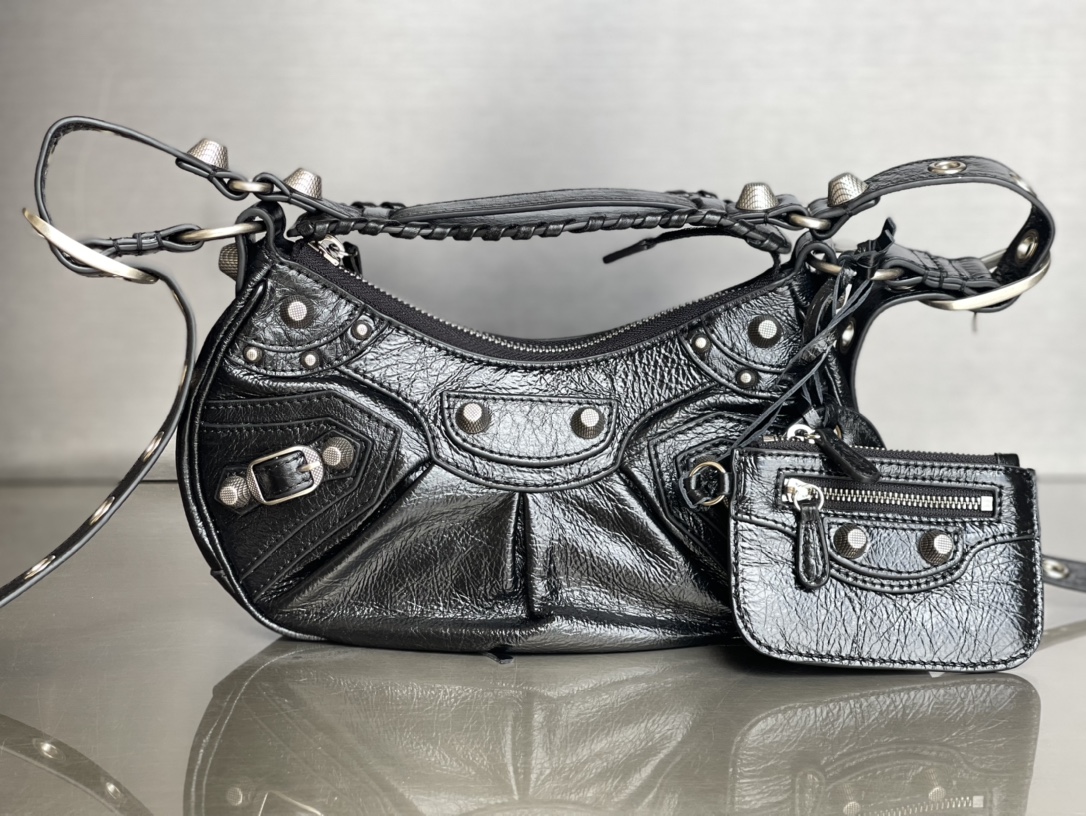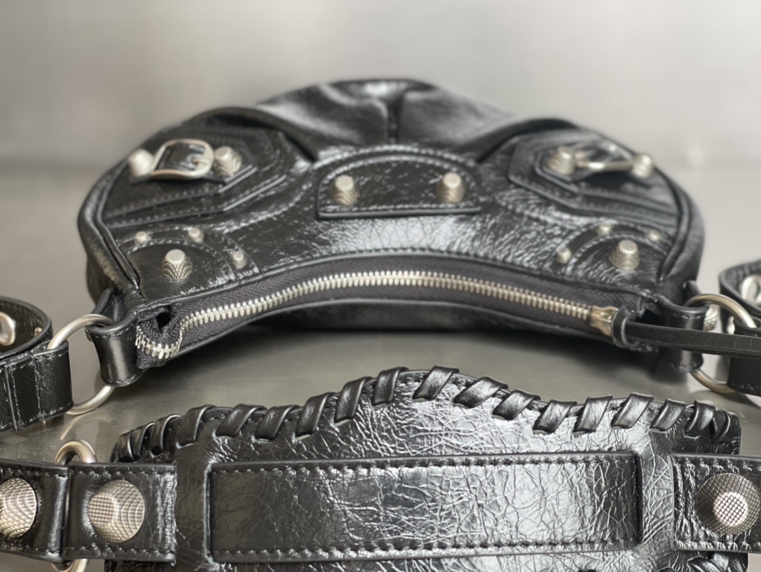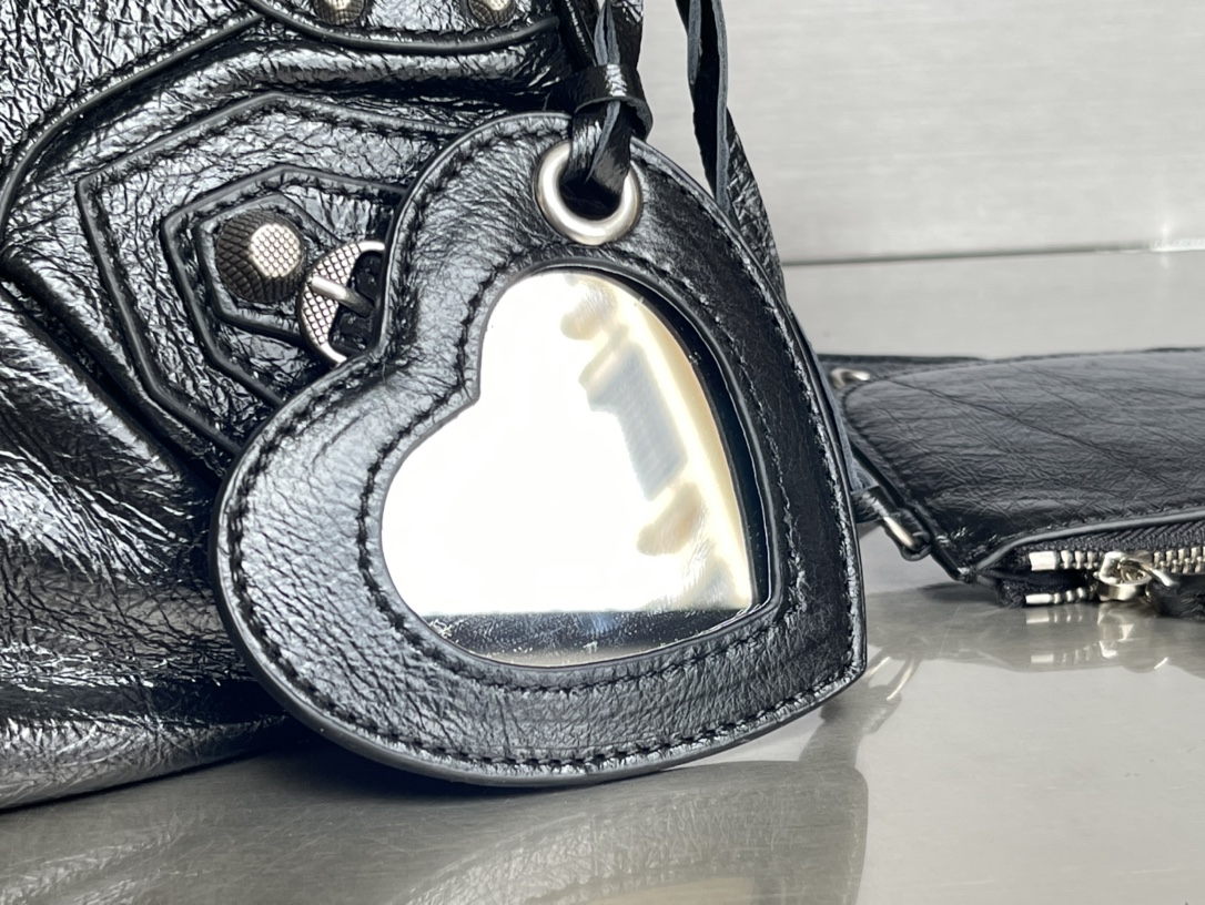 巴黎世家-Le Cagole S做旧银配件心形化妆镜羊皮饺子包机车包半月包月牙包单肩斜挎手提包 女款 (LZ)