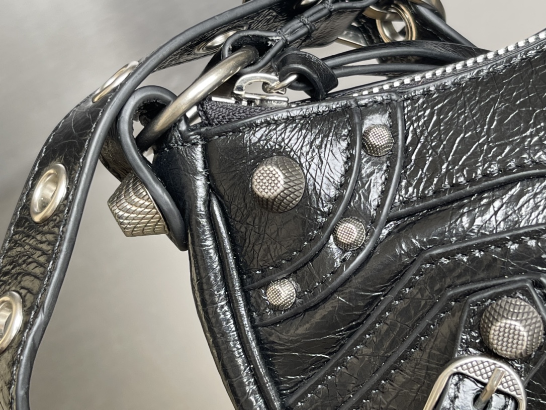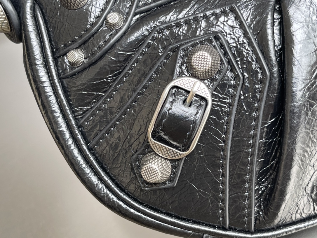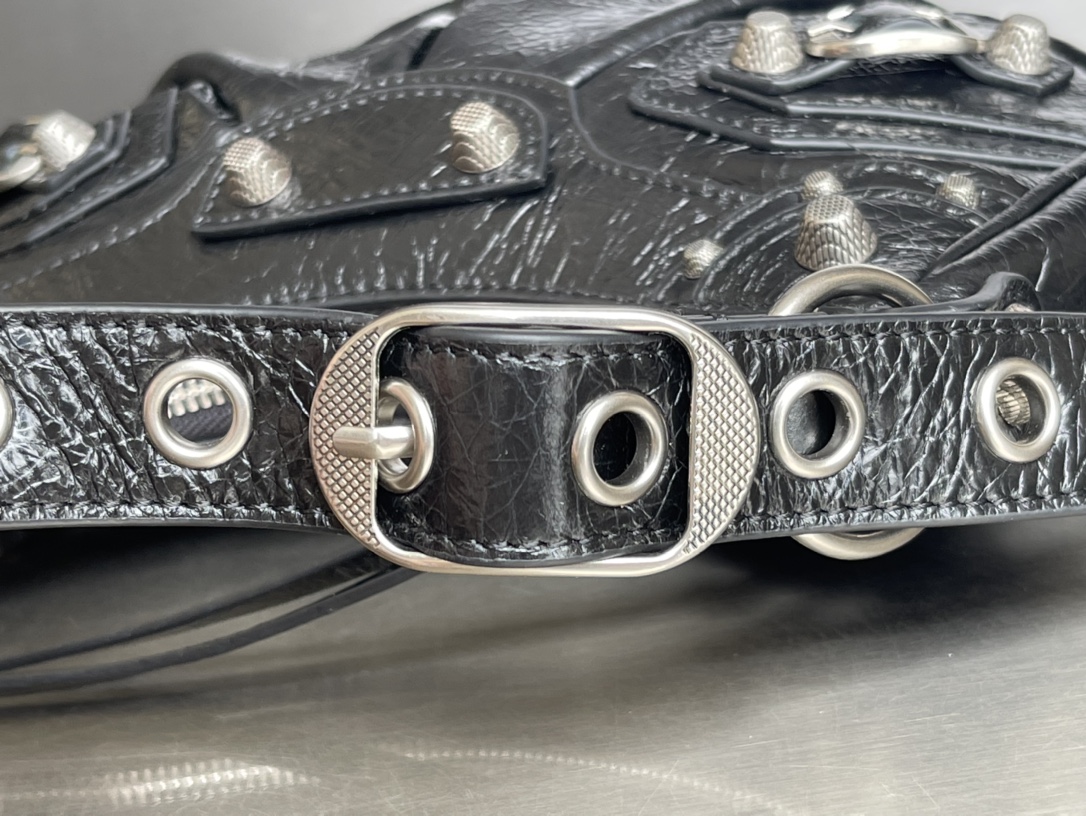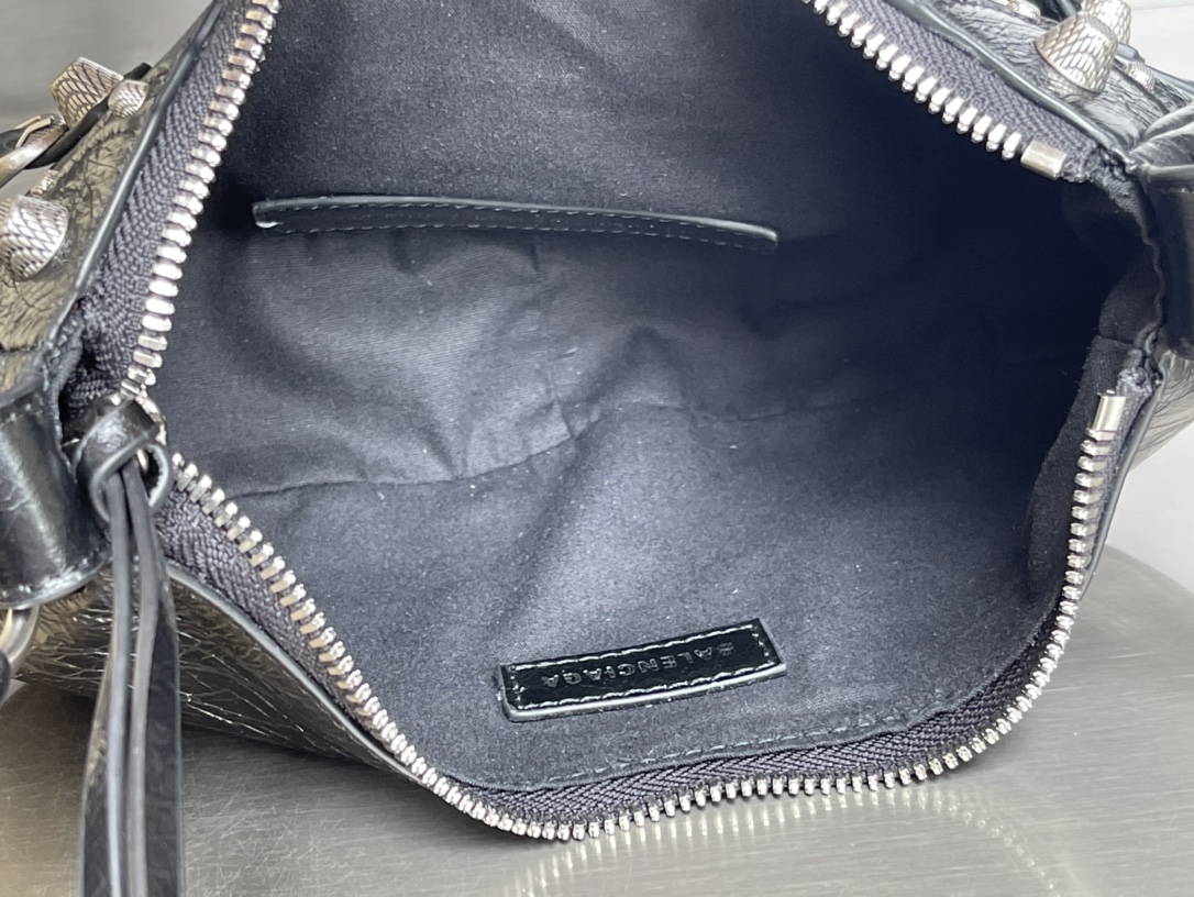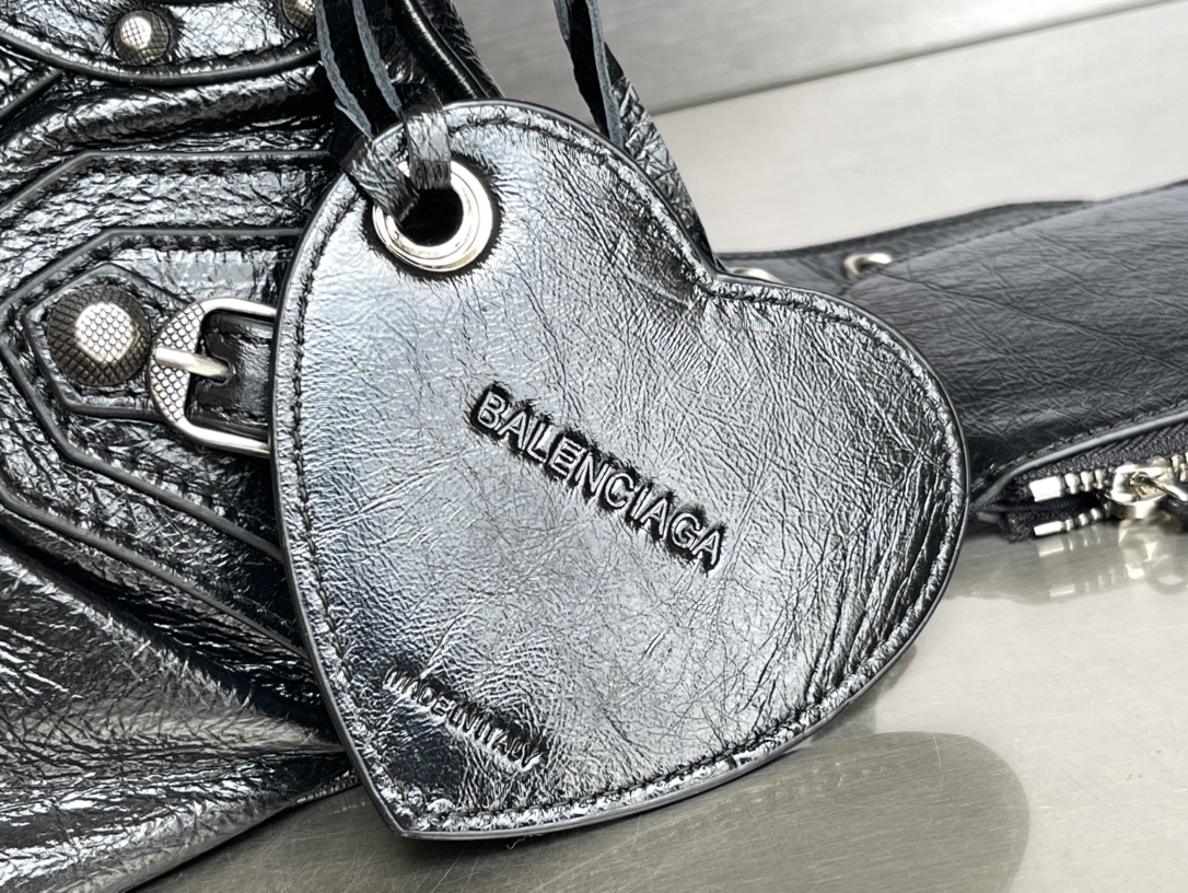 巴黎世家-Le Cagole S做旧银配件心形化妆镜羊皮饺子包机车包半月包月牙包单肩斜挎手提包 女款 (LZ)