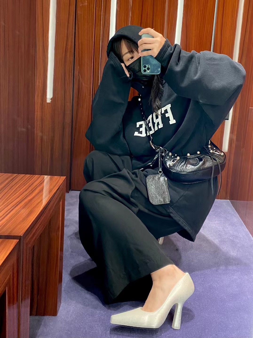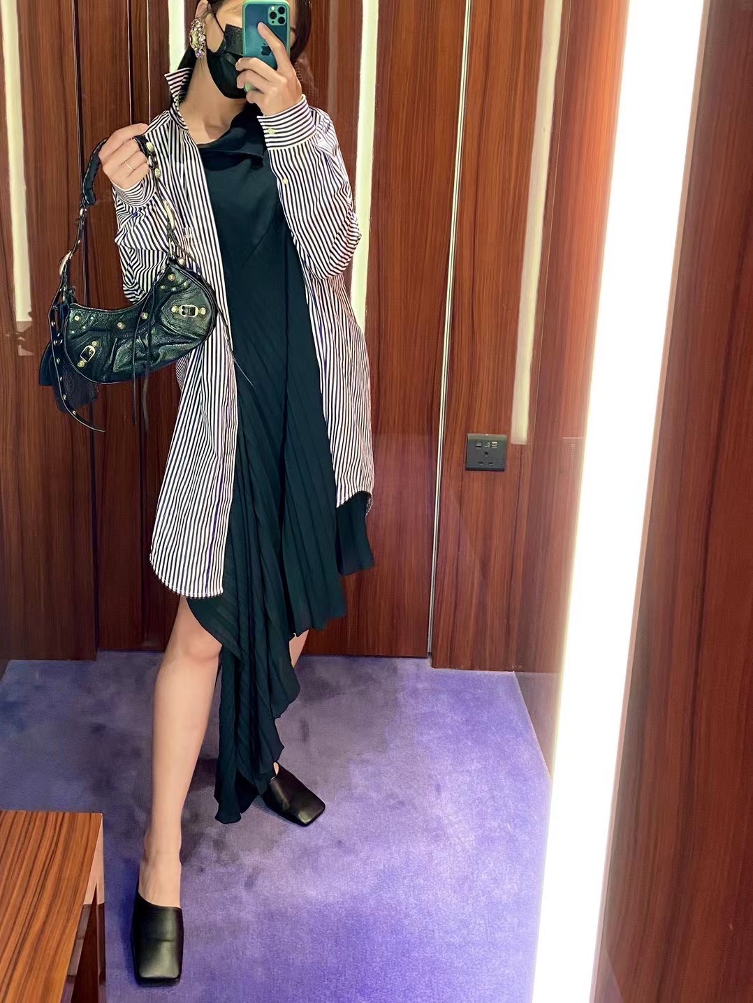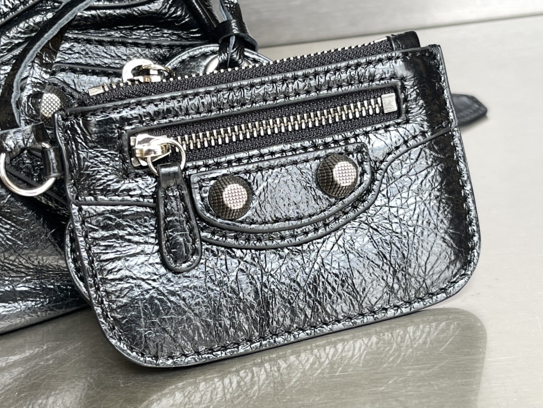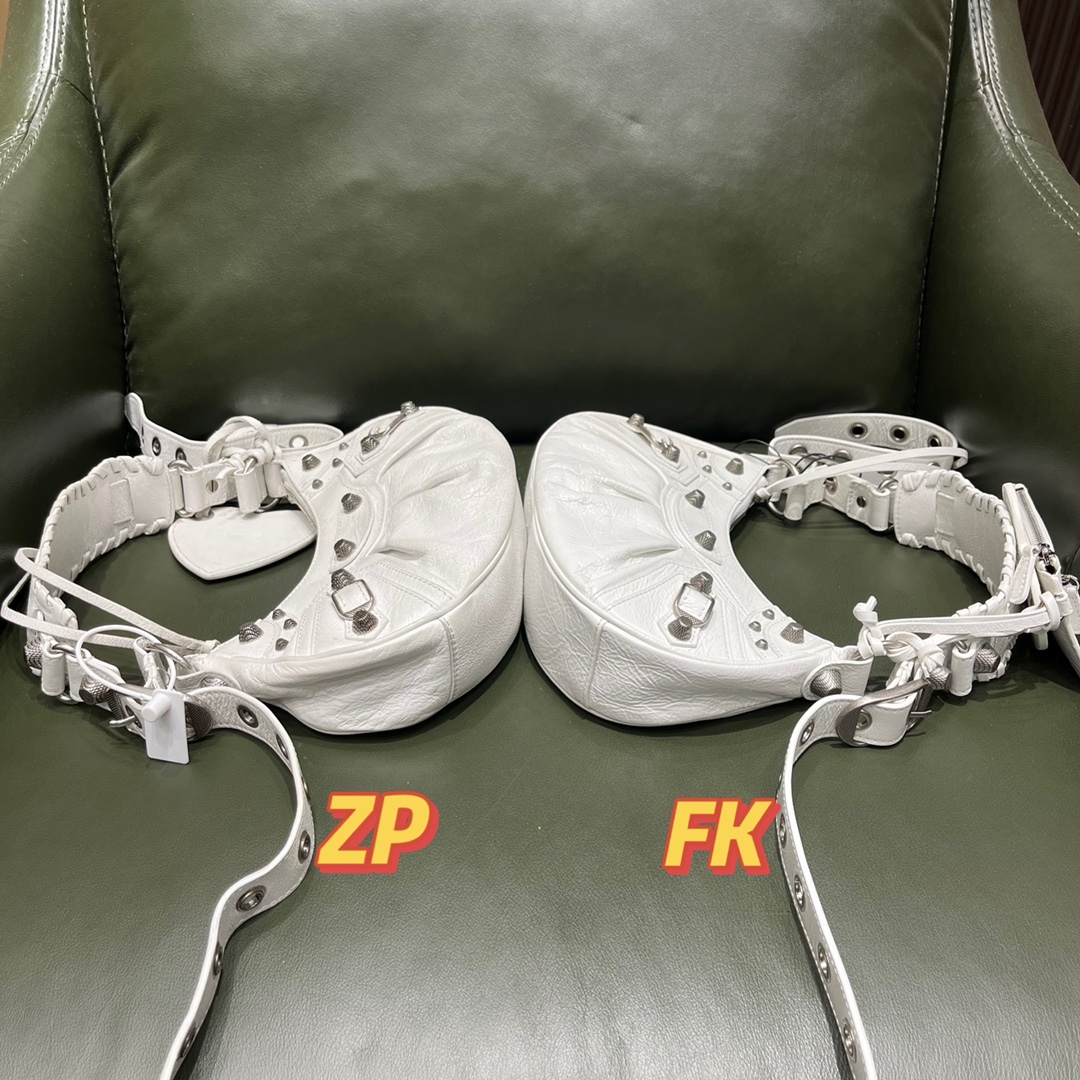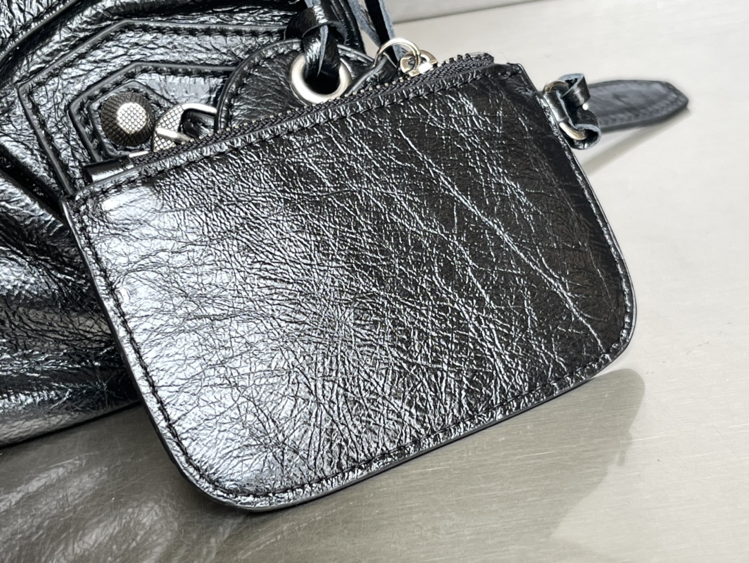 巴黎世家-Le Cagole S做旧银配件心形化妆镜羊皮饺子包机车包半月包月牙包单肩斜挎手提包 女款 (LZ)