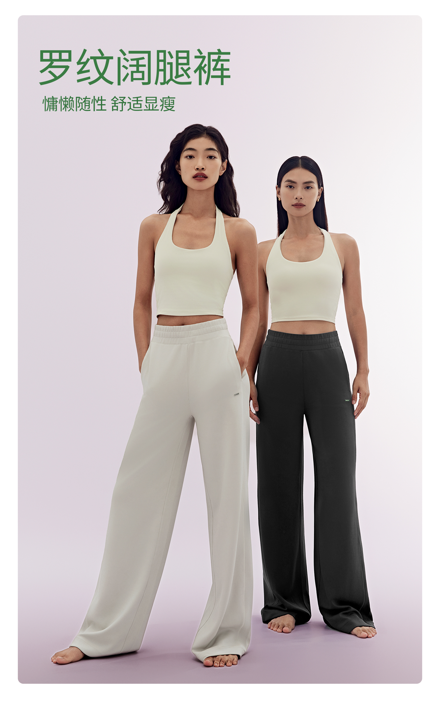 YOTTOY罗纹阔腿裤直筒瑜伽长裤高腰宽松运动跑步健身休闲裤女新款
