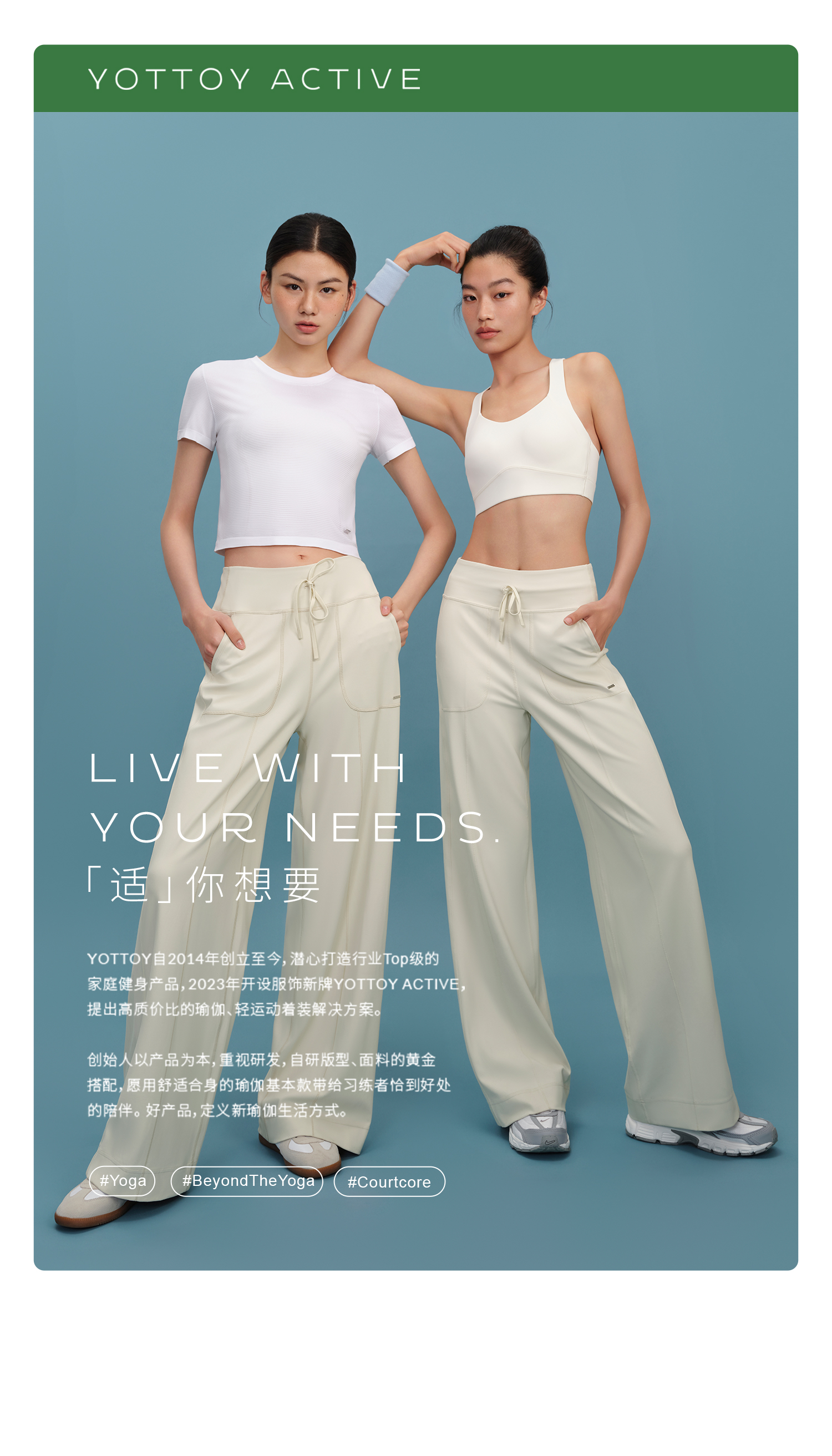 - YOTTOY 私享运动空间 | 为热爱注入专业与美 「YOTTOY|与3000万+女性轻盈前行✨ 用婴儿肌触感的环保装备,温柔呵护每一次蜕变。加入运动闺蜜圈,遇见更美好的自己,此刻启程。」