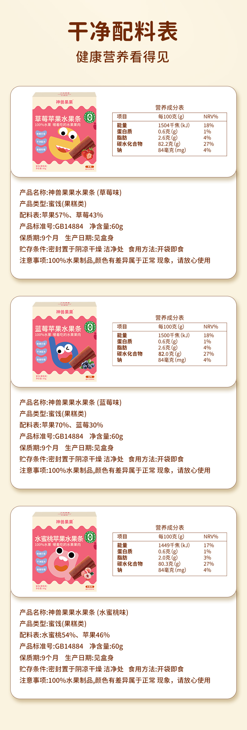 神兽果果100%水果条儿童健康零食宝宝辅食新鲜打浆