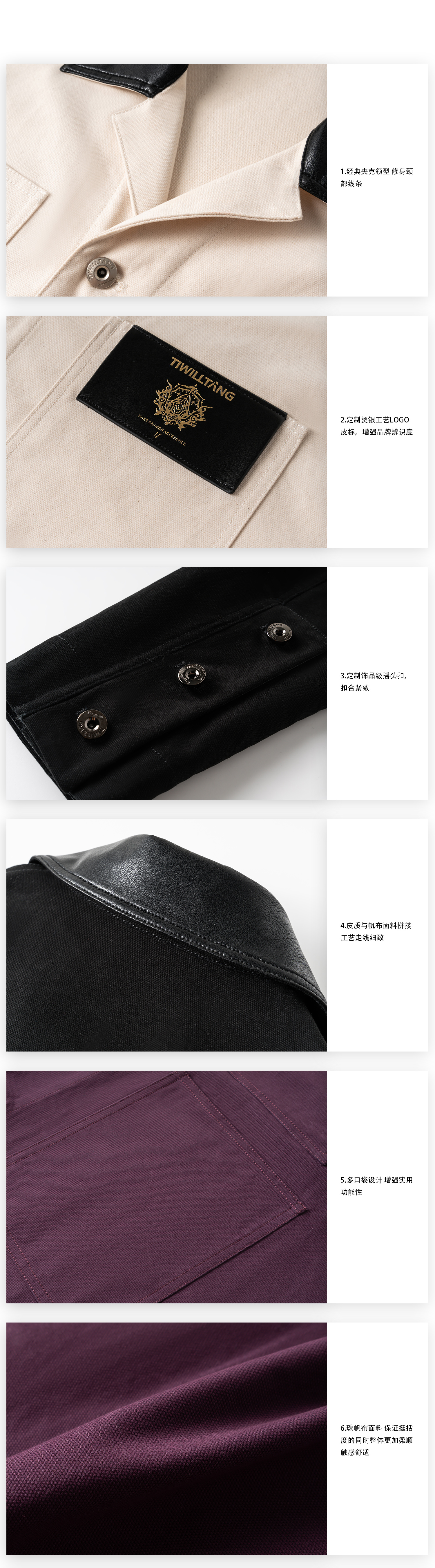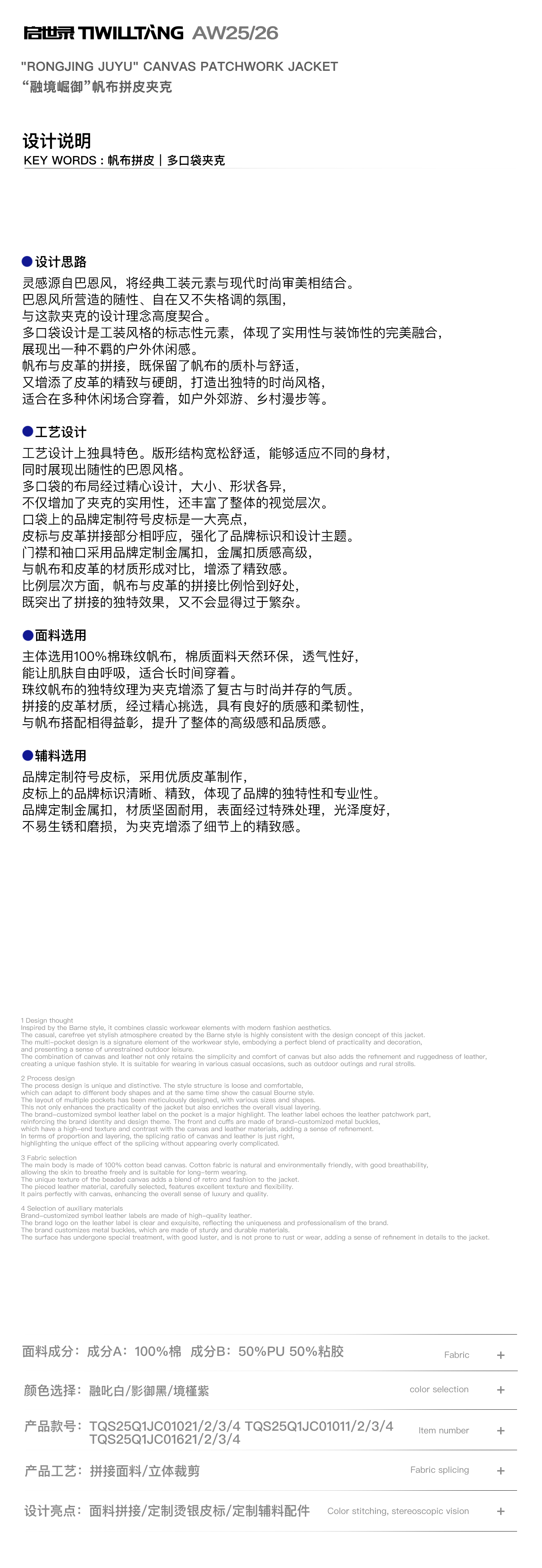 启世录TIWILLTANG“融境崛御”纯棉透气多口袋帆布拼皮夹克