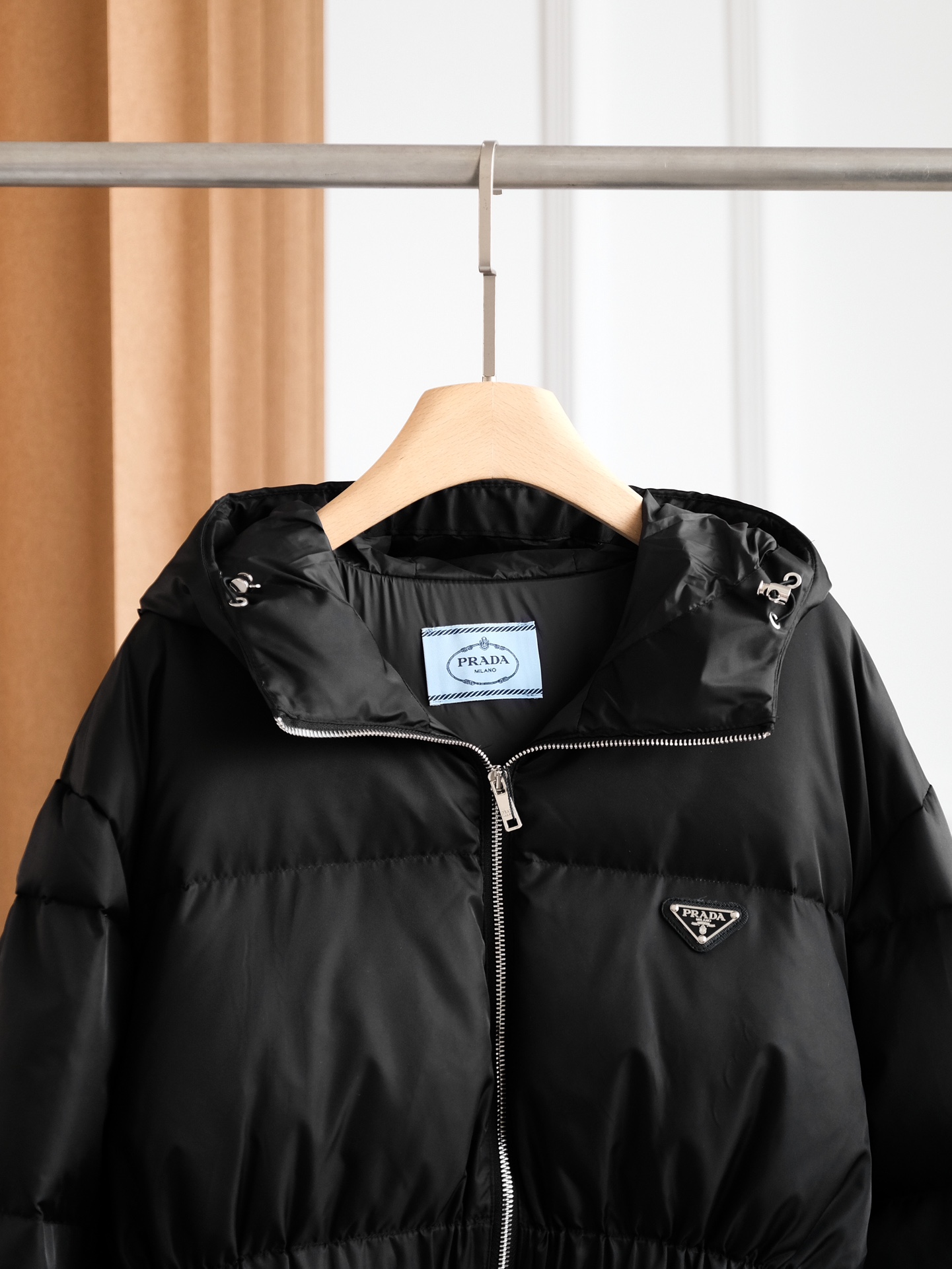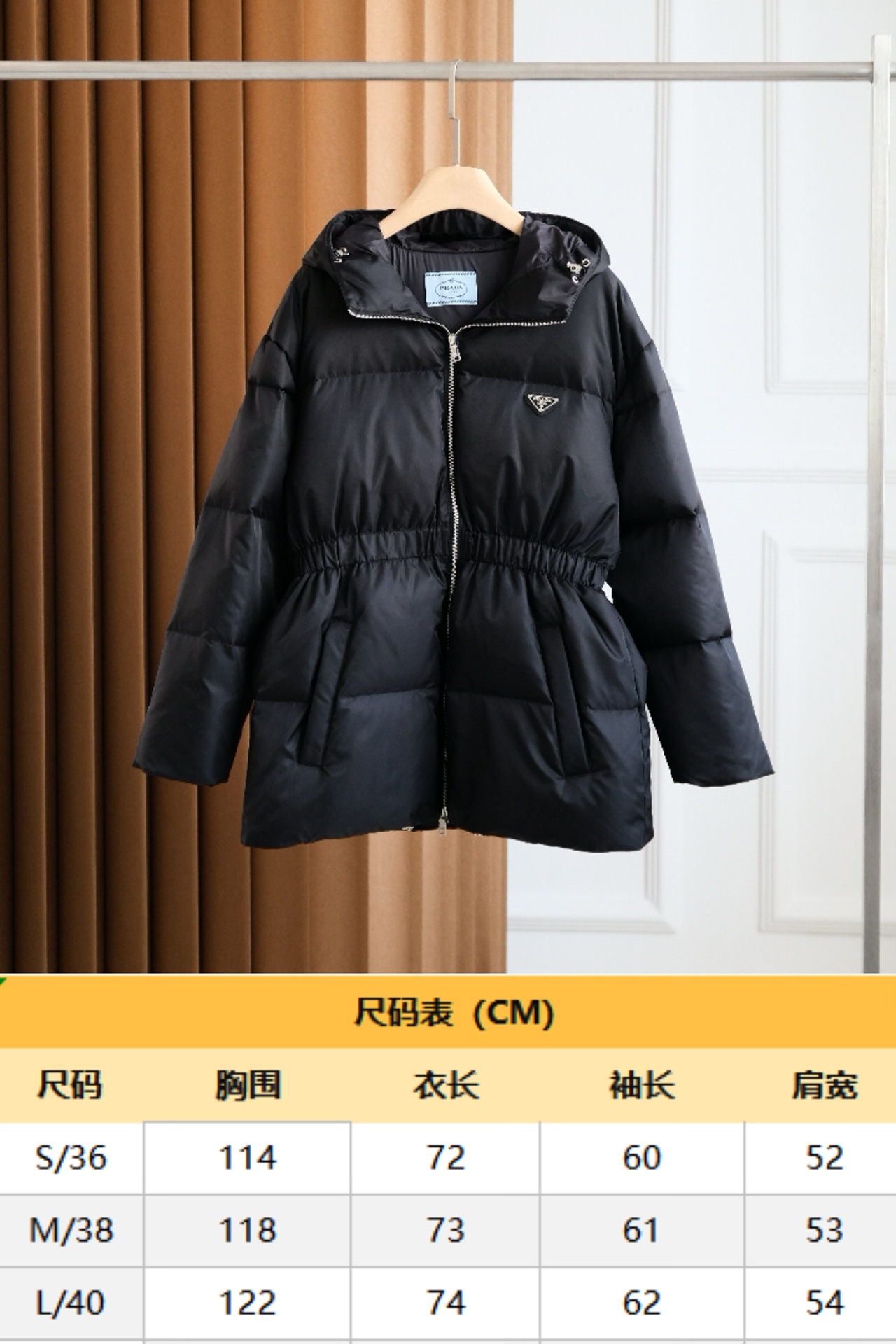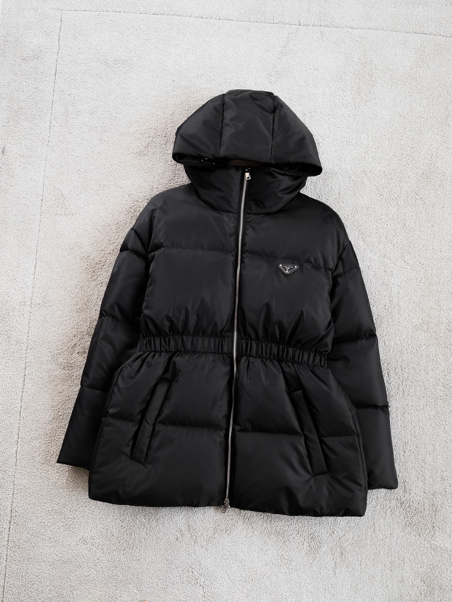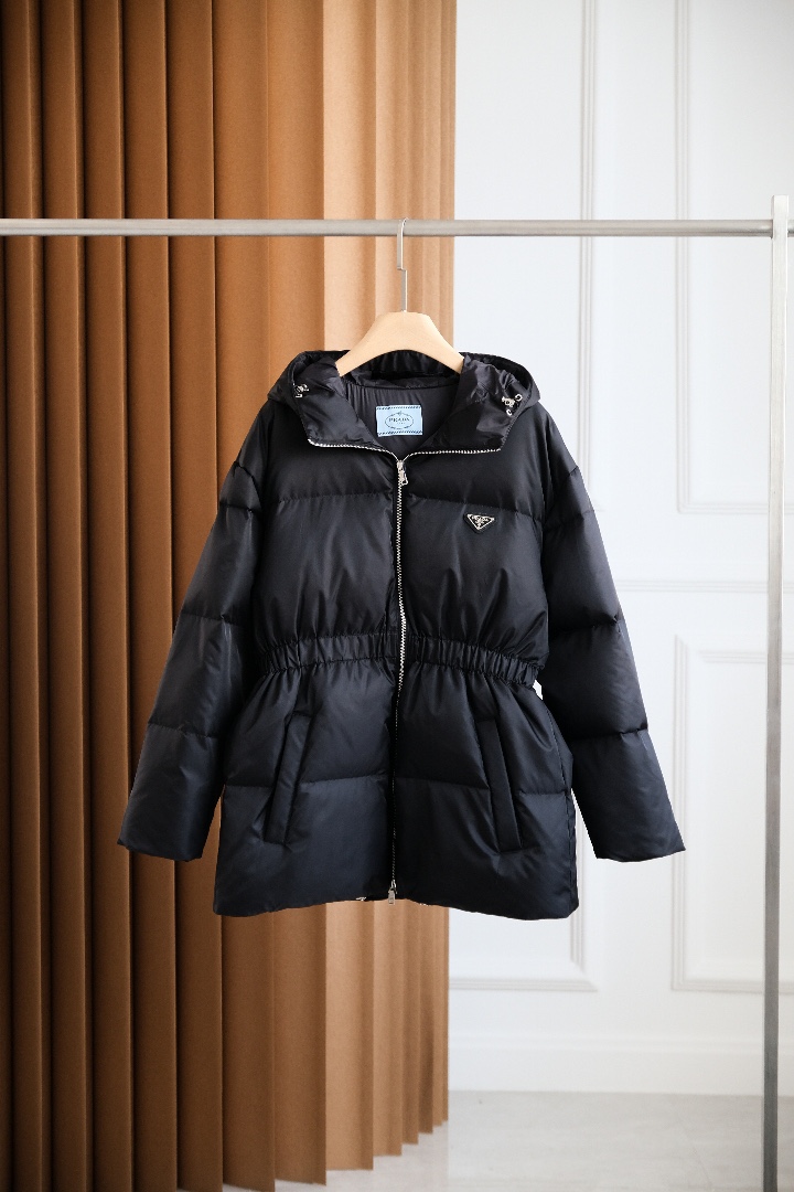 Prad*a普拉达 连帽羽绒服💕 90%鹅绒+10%羽毛⚠️ 独特的双层轻质再生尼龙面料 其蓬松感与回弹性极为优越🌈 蚂蚁🐜腰型设计,主打一个显瘦,皮质 防风防水御寒性能更是毋庸置疑 拉链采用高端烤漆工艺 胸前经典三角钢标logo 客供品牌字母刻印拉链头 简约大气,怎么穿怎么好看✨✨
