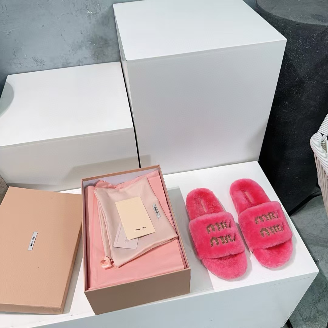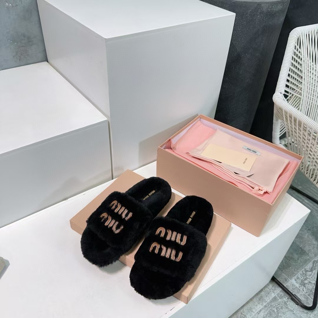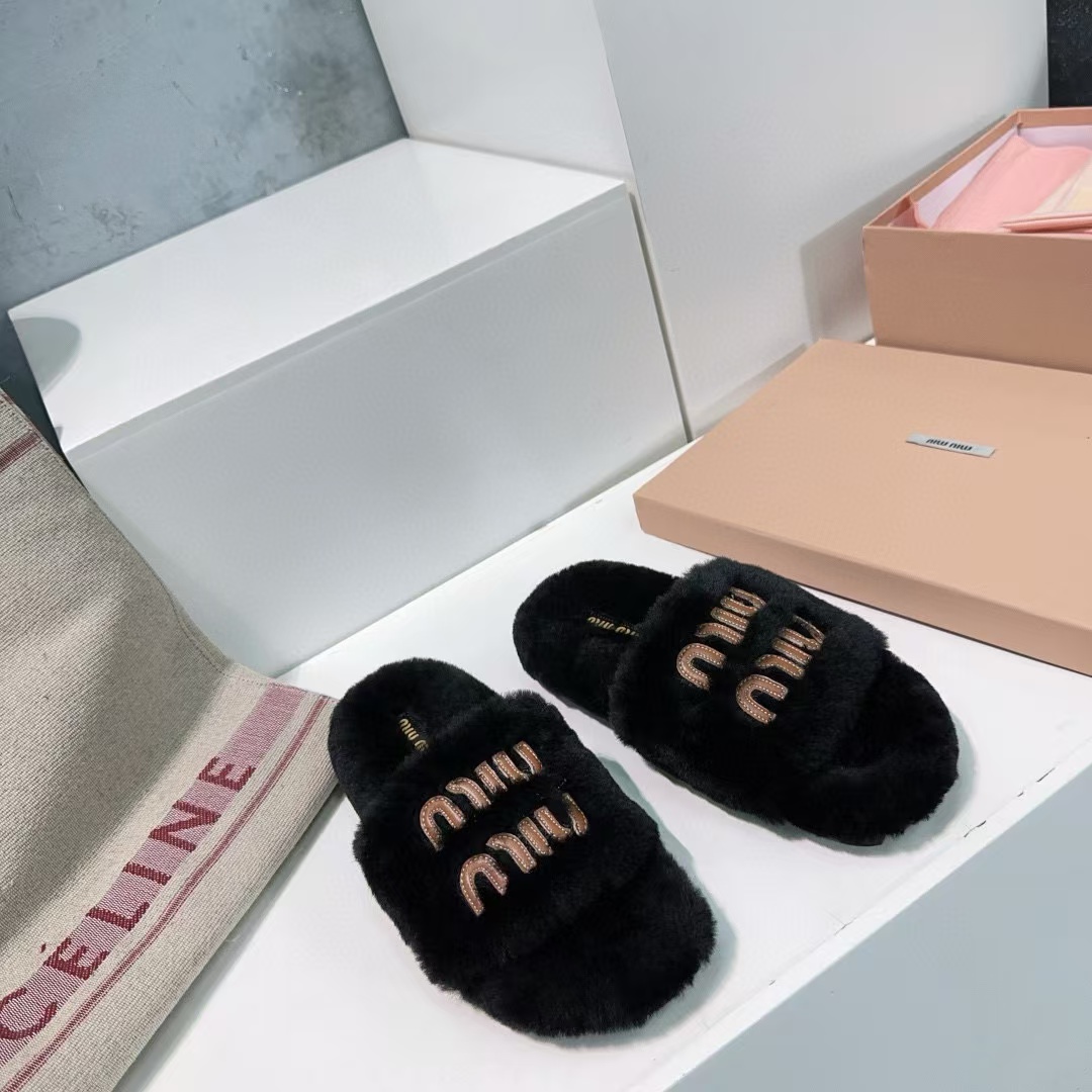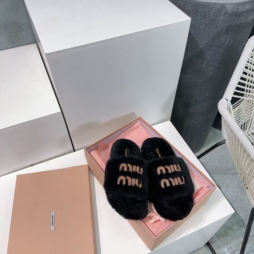 MIUMIU家 2024秋冬新品 毛毛拖鞋