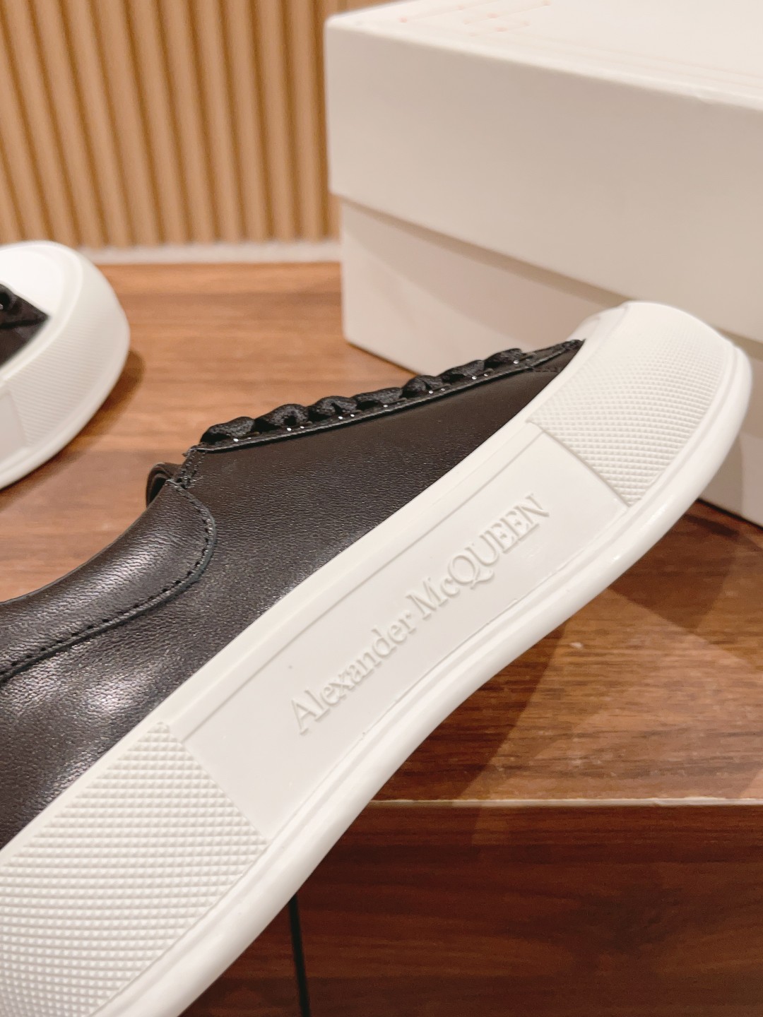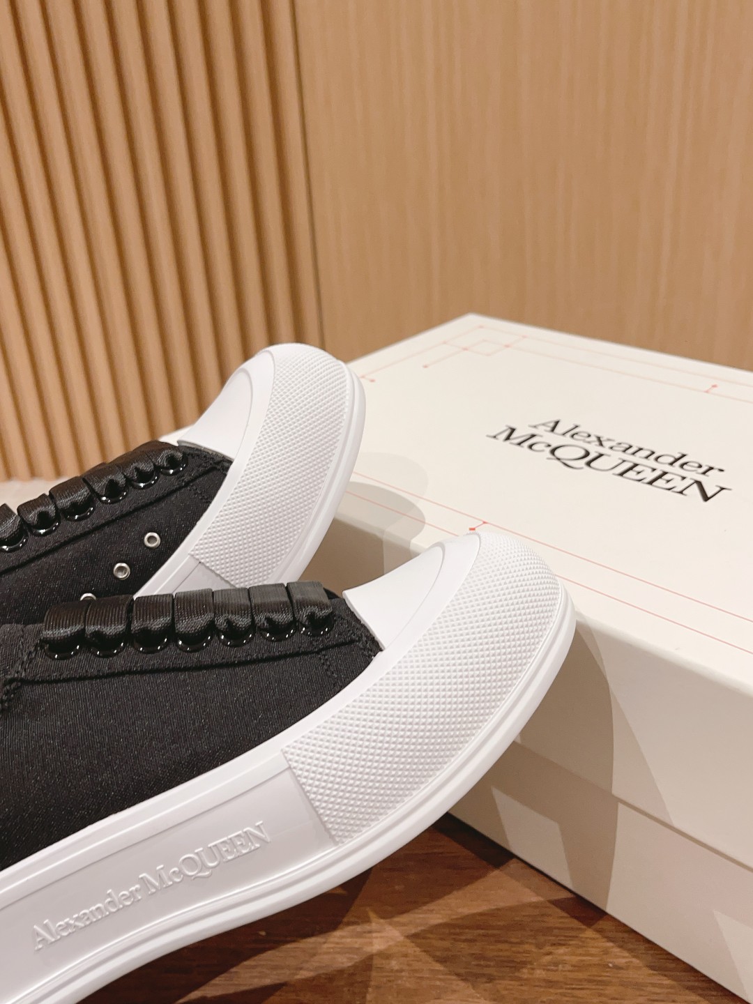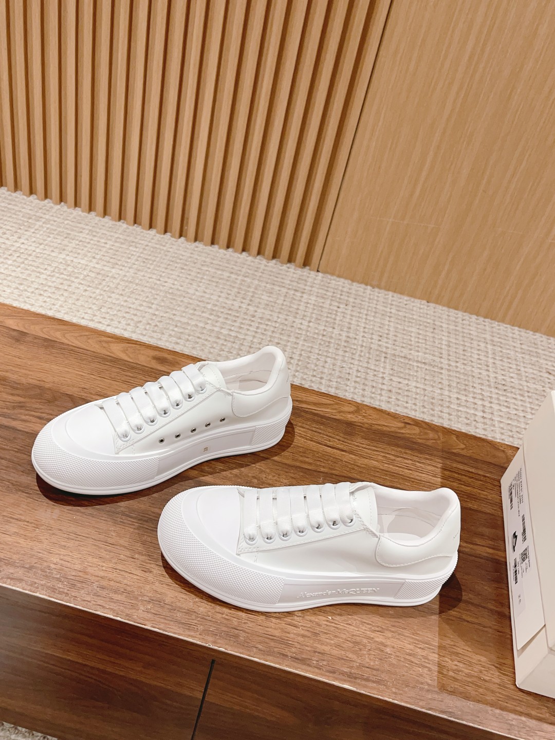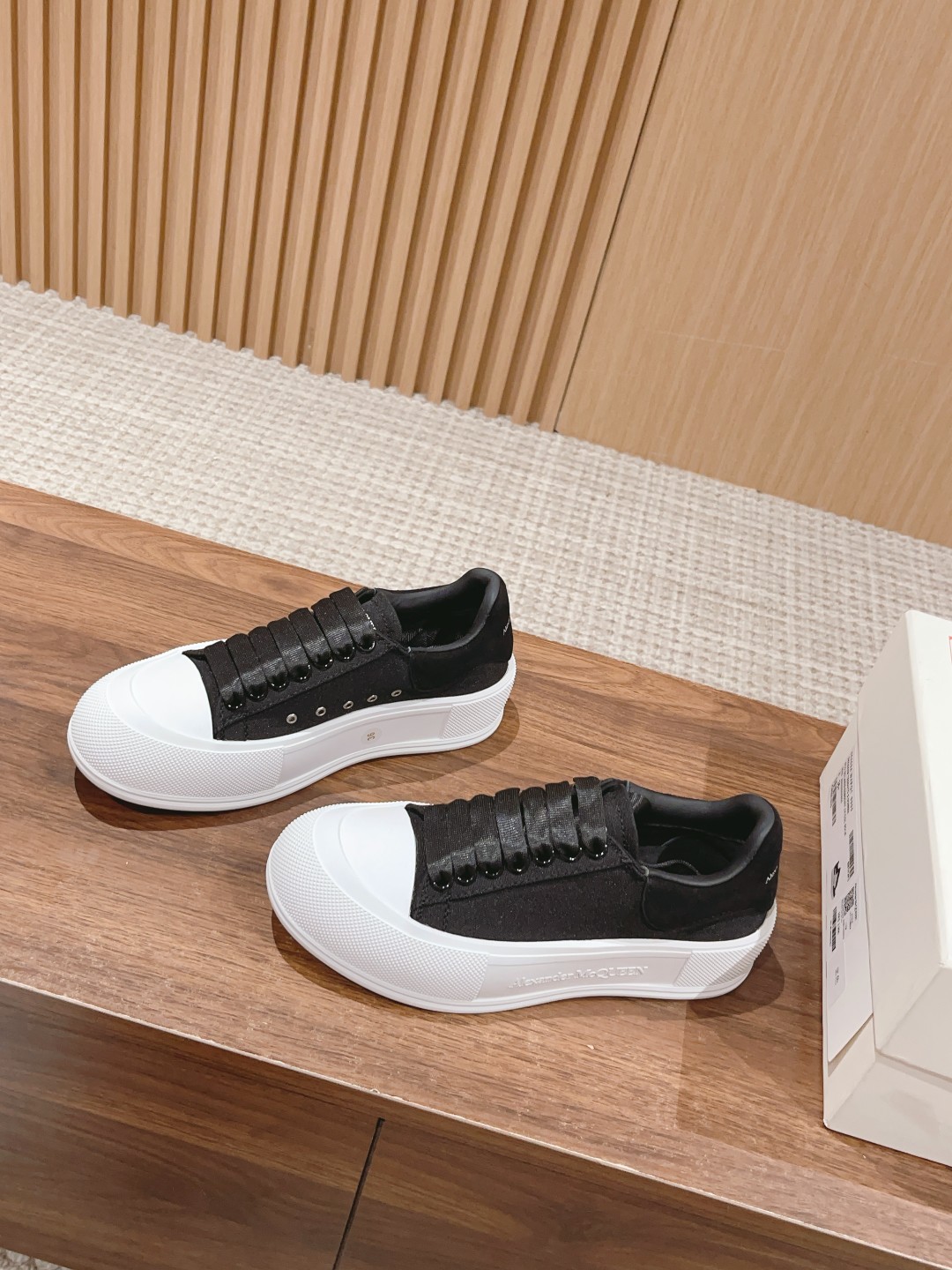 大王 麦昆经典帆布系带甲板Plimsoll与厚超大橡胶TPU 鞋底。系带是详细的橡胶包裹鞋底和色调亚历山大麦昆签名,完成了麂皮高跟柜台。圆形鞋头造型轮廓细节橡胶鞋头这款帆布鞋搭配橡胶包覆鞋底和同色系Alexander McQueen标志,饰有经典后帮。圆头廓形,鞋头覆以橡胶细节。。