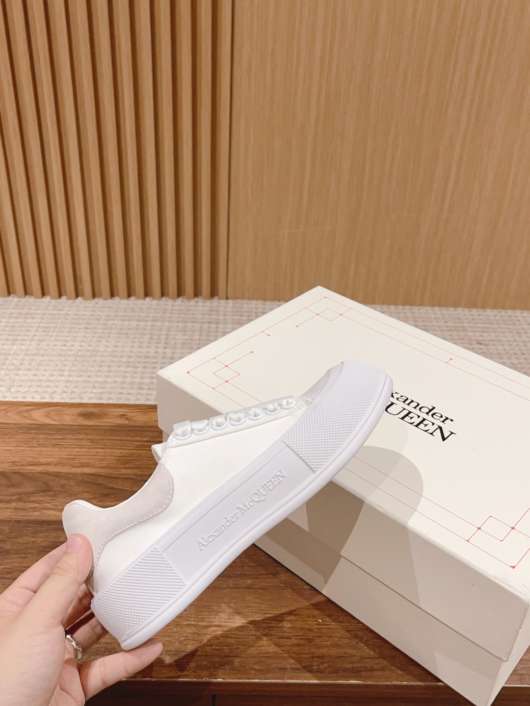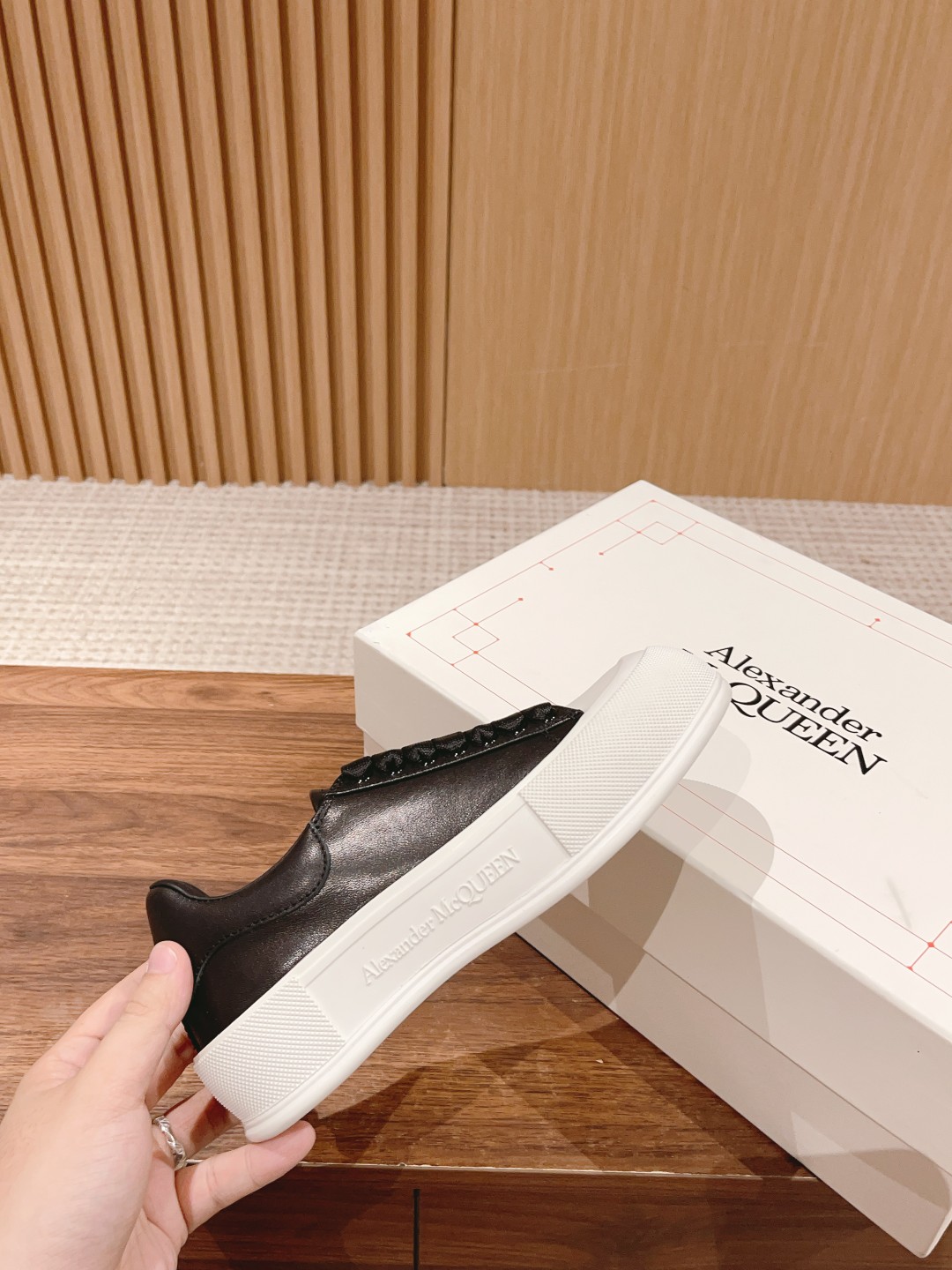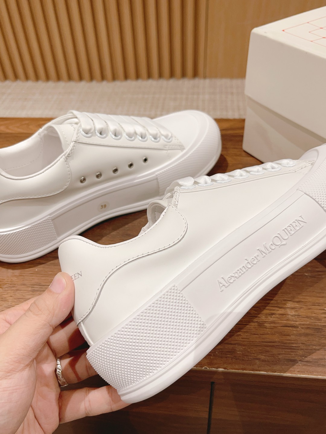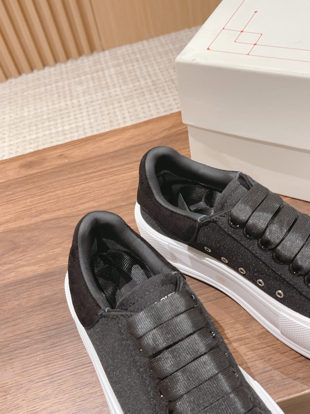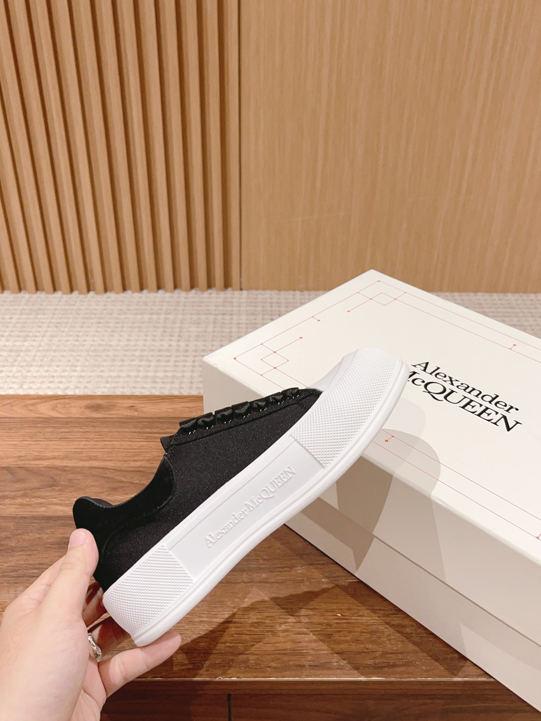 大王 麦昆经典帆布系带甲板Plimsoll与厚超大橡胶TPU 鞋底。系带是详细的橡胶包裹鞋底和色调亚历山大麦昆签名,完成了麂皮高跟柜台。圆形鞋头造型轮廓细节橡胶鞋头这款帆布鞋搭配橡胶包覆鞋底和同色系Alexander McQueen标志,饰有经典后帮。圆头廓形,鞋头覆以橡胶细节。。