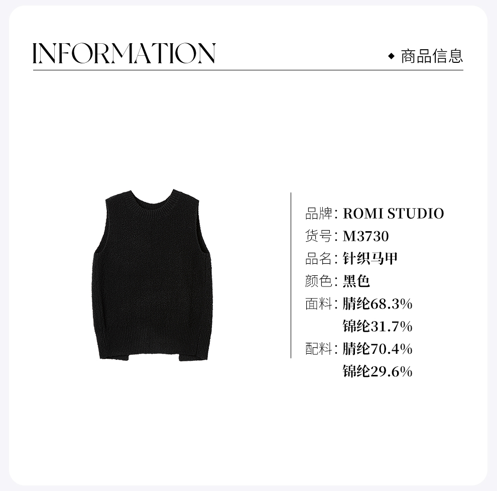 ROMI STUDIO"编织初夏"百搭耐看圆领立体后开叉黑色马甲背心M3730