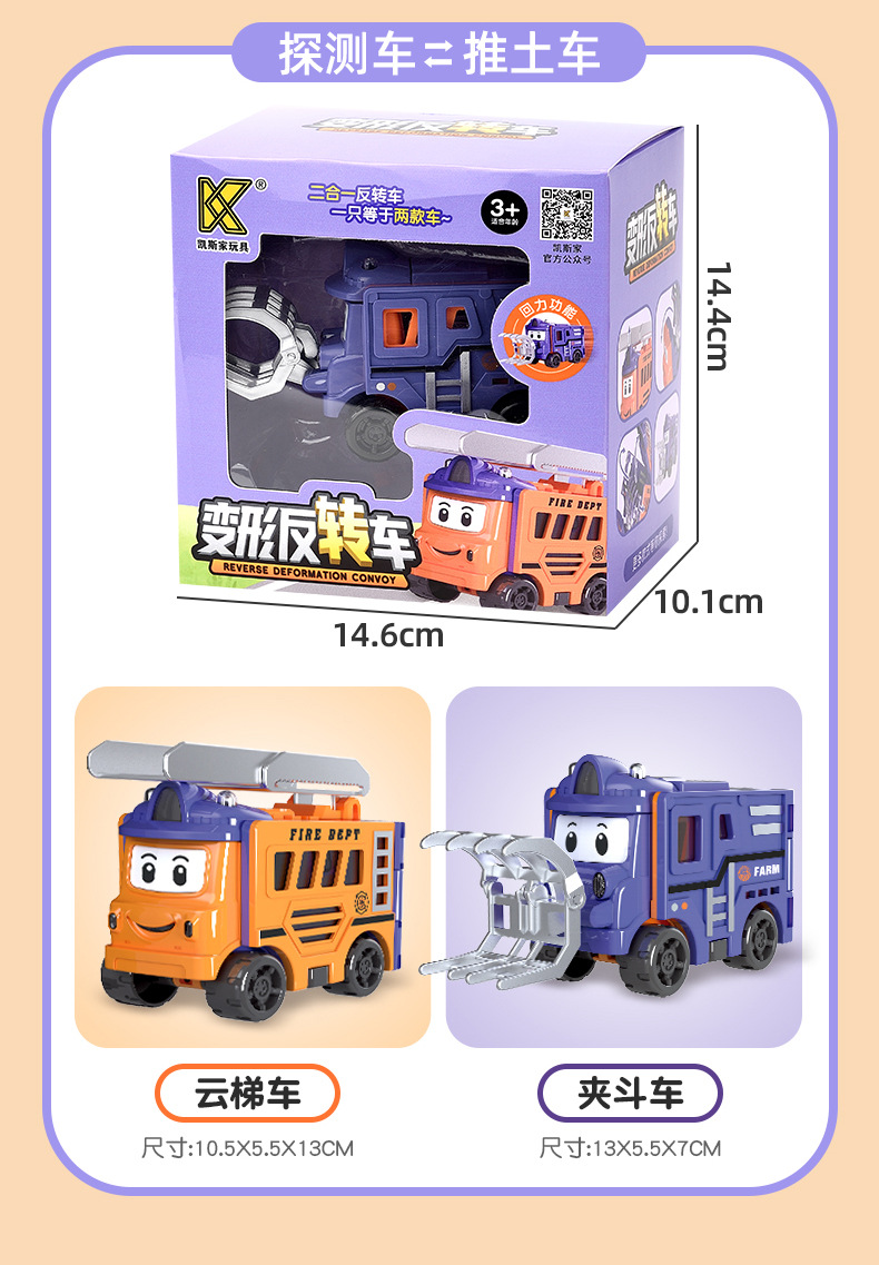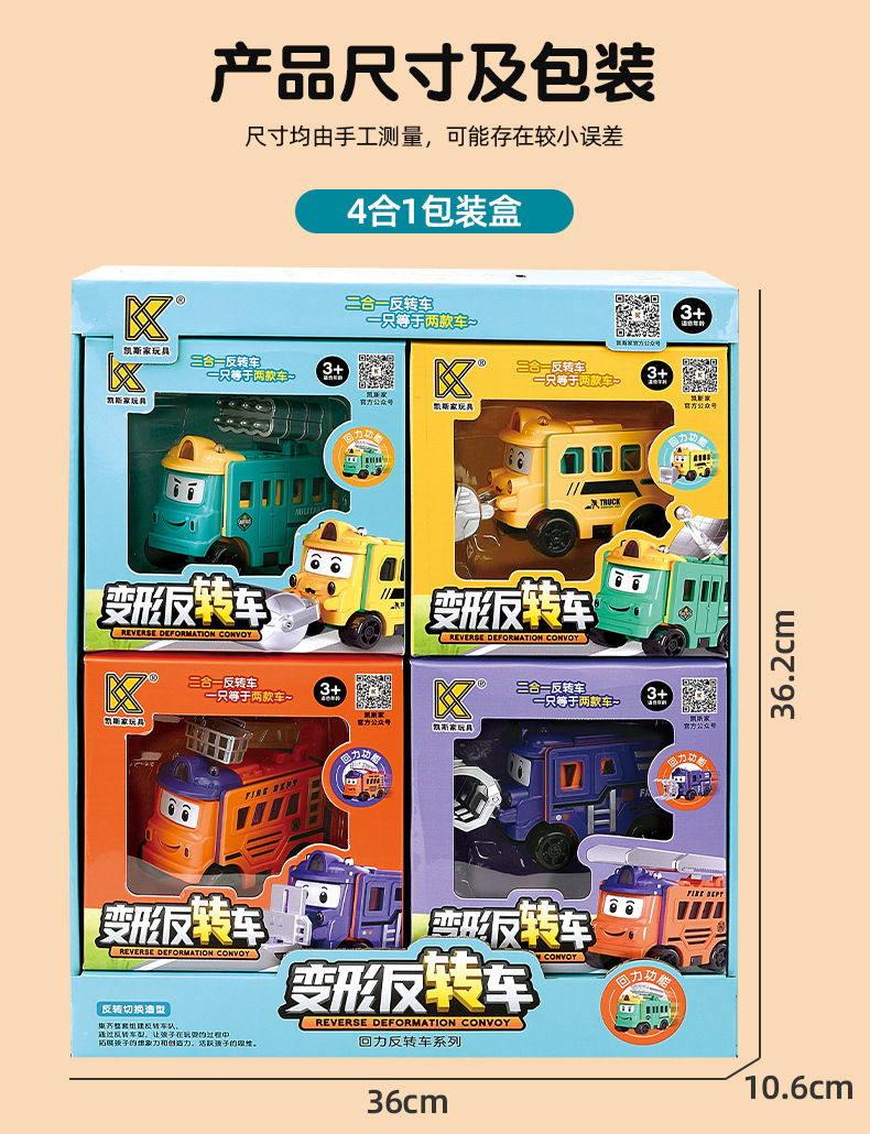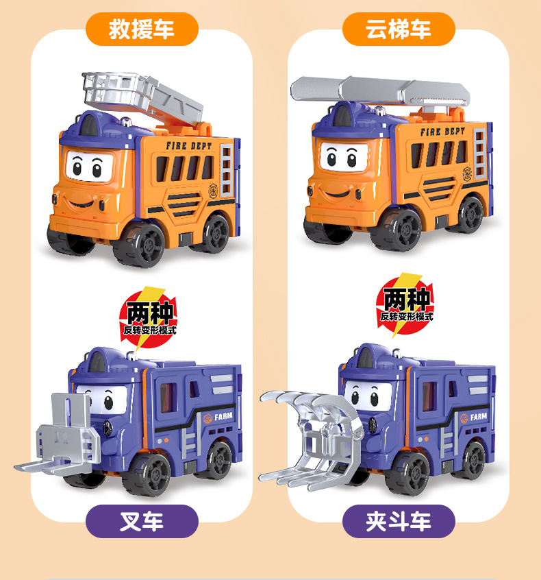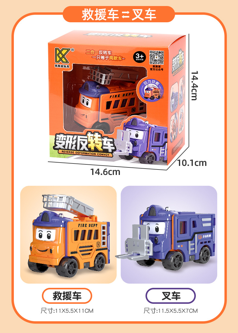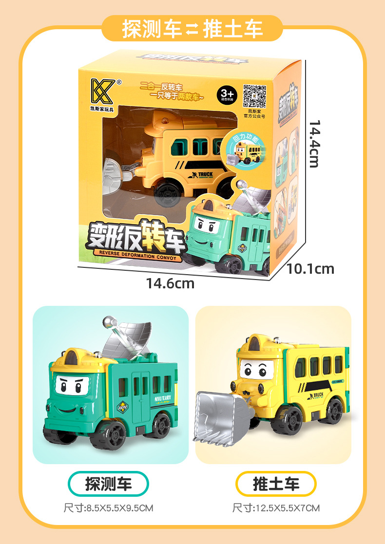 【多款Q萌形象,一次满足!】变形反转车百变儿童玩具车,翻转变形工程车回力小汽车校车男孩,趣味反转培养小朋友专注力!