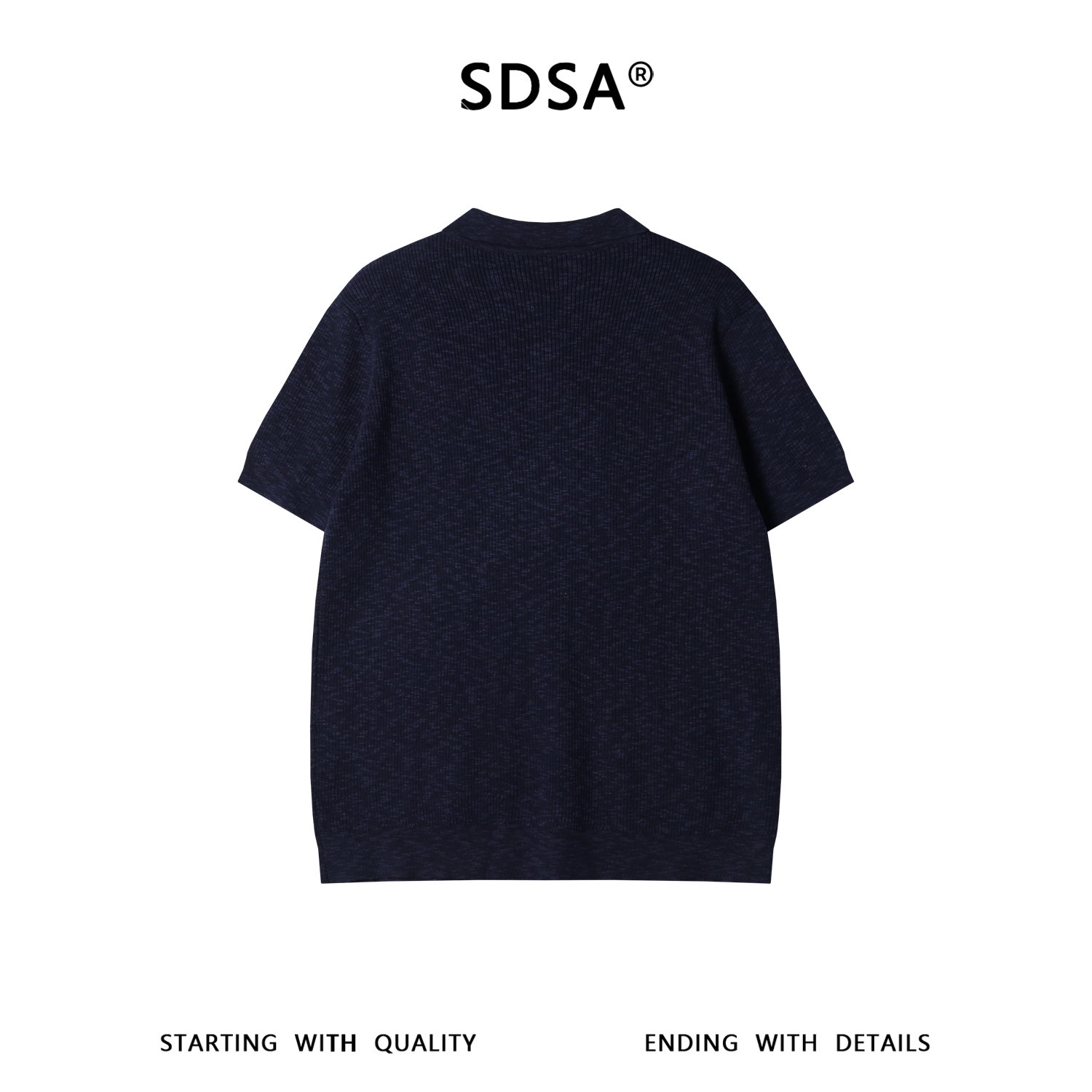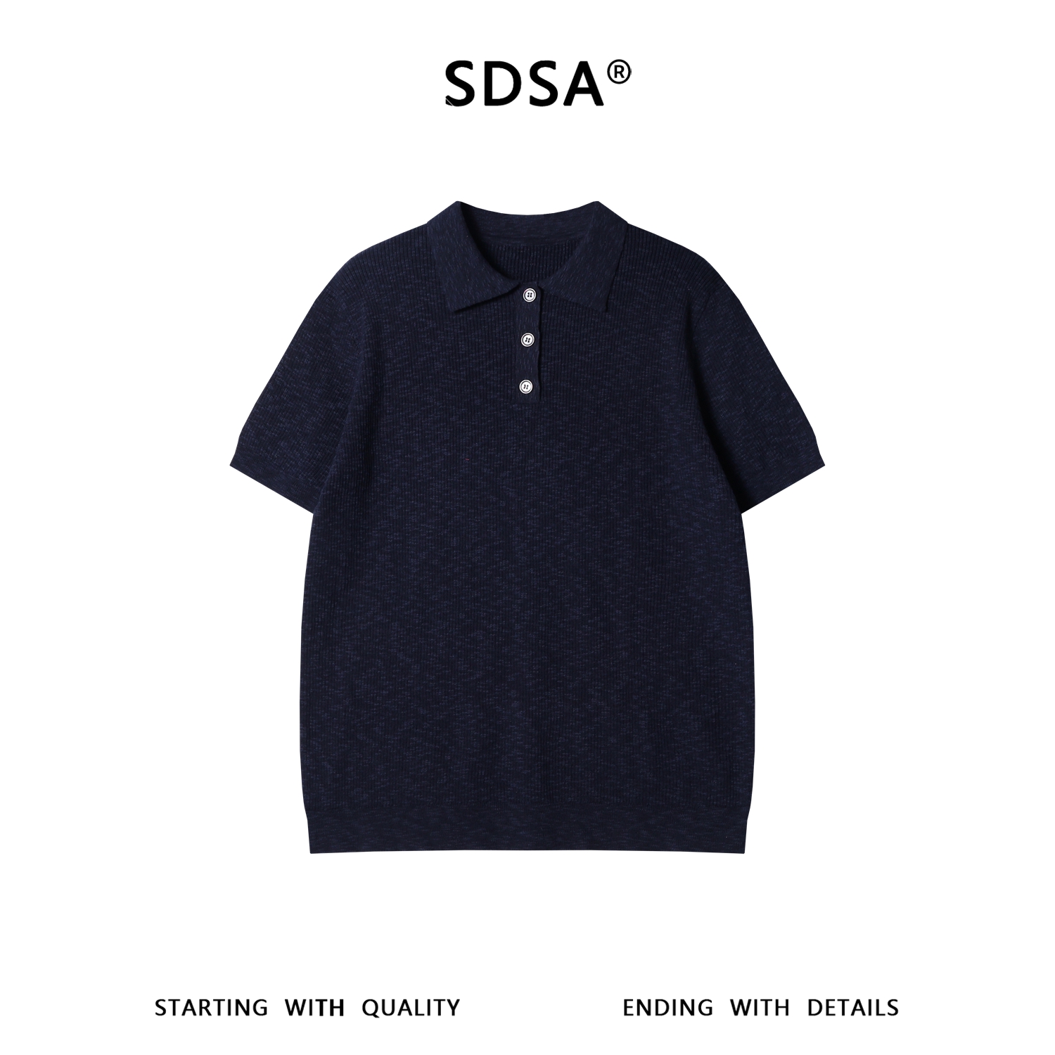 SDSA男装2026新款高贵轻奢老钱风竖纹纽扣翻领短袖T恤百搭休闲