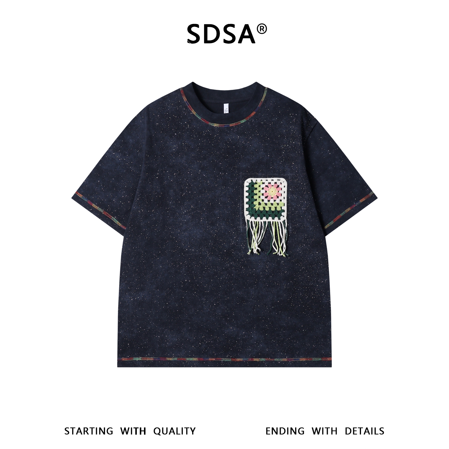 26T190SDSA男装2026新款重工彩色缝线满天星圆领短袖T恤流苏绣花百搭潮