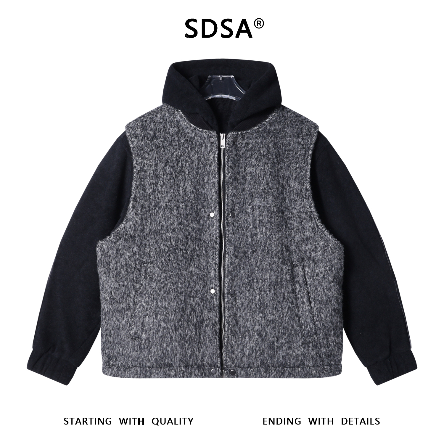 J59266SDSA男士秋冬新款痞帅男装美式简约撞色假两件拉链连帽卫衣外套