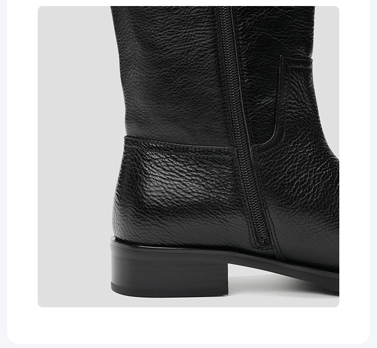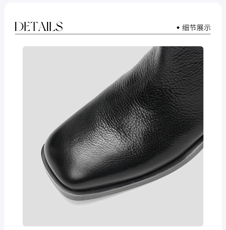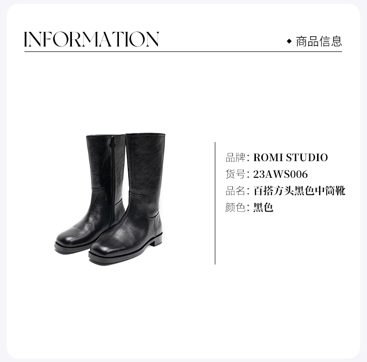 ROMI STUDIO“复古小众”率性百搭英伦方头粗跟黑色中筒靴 23AWS006