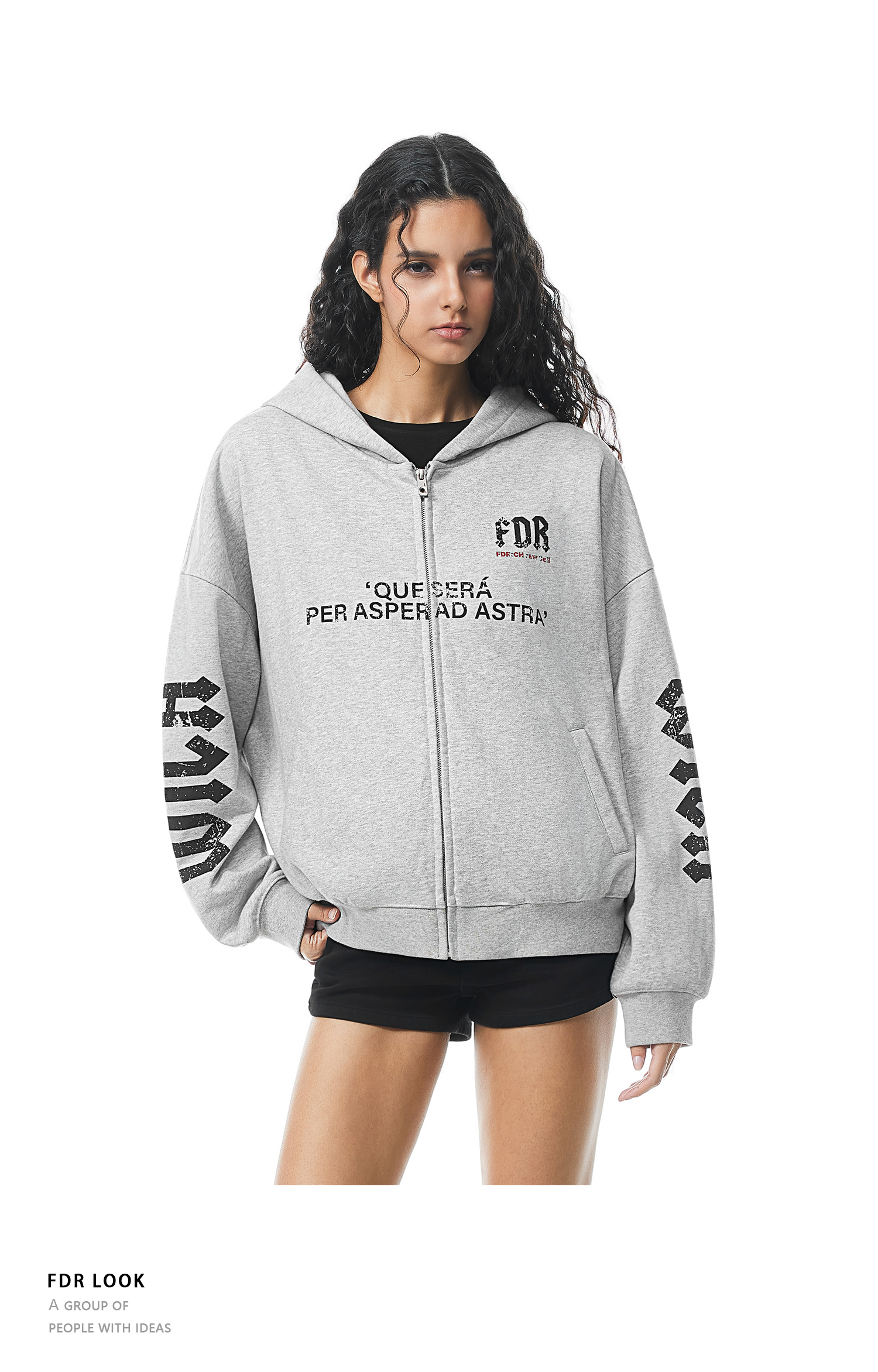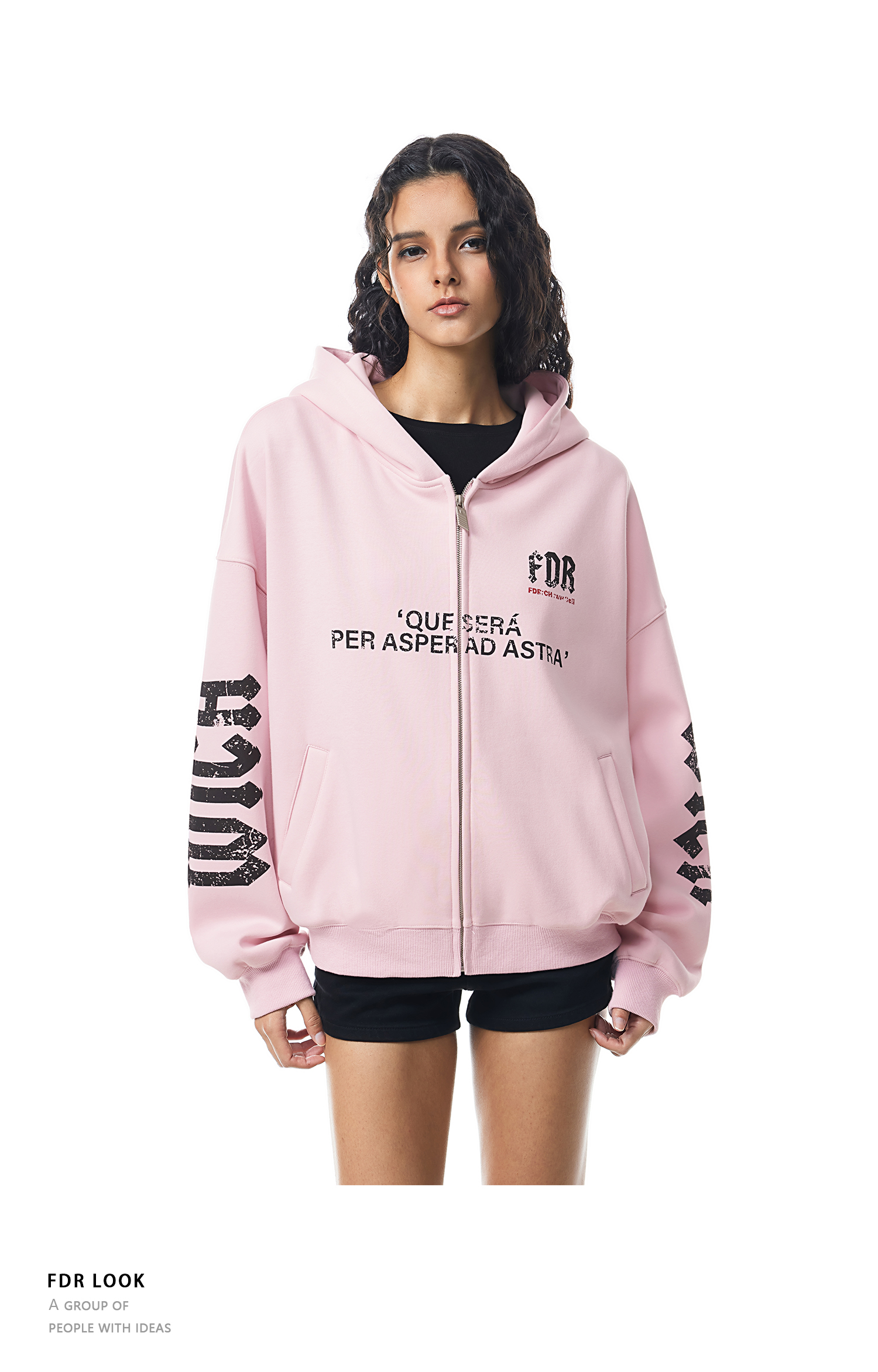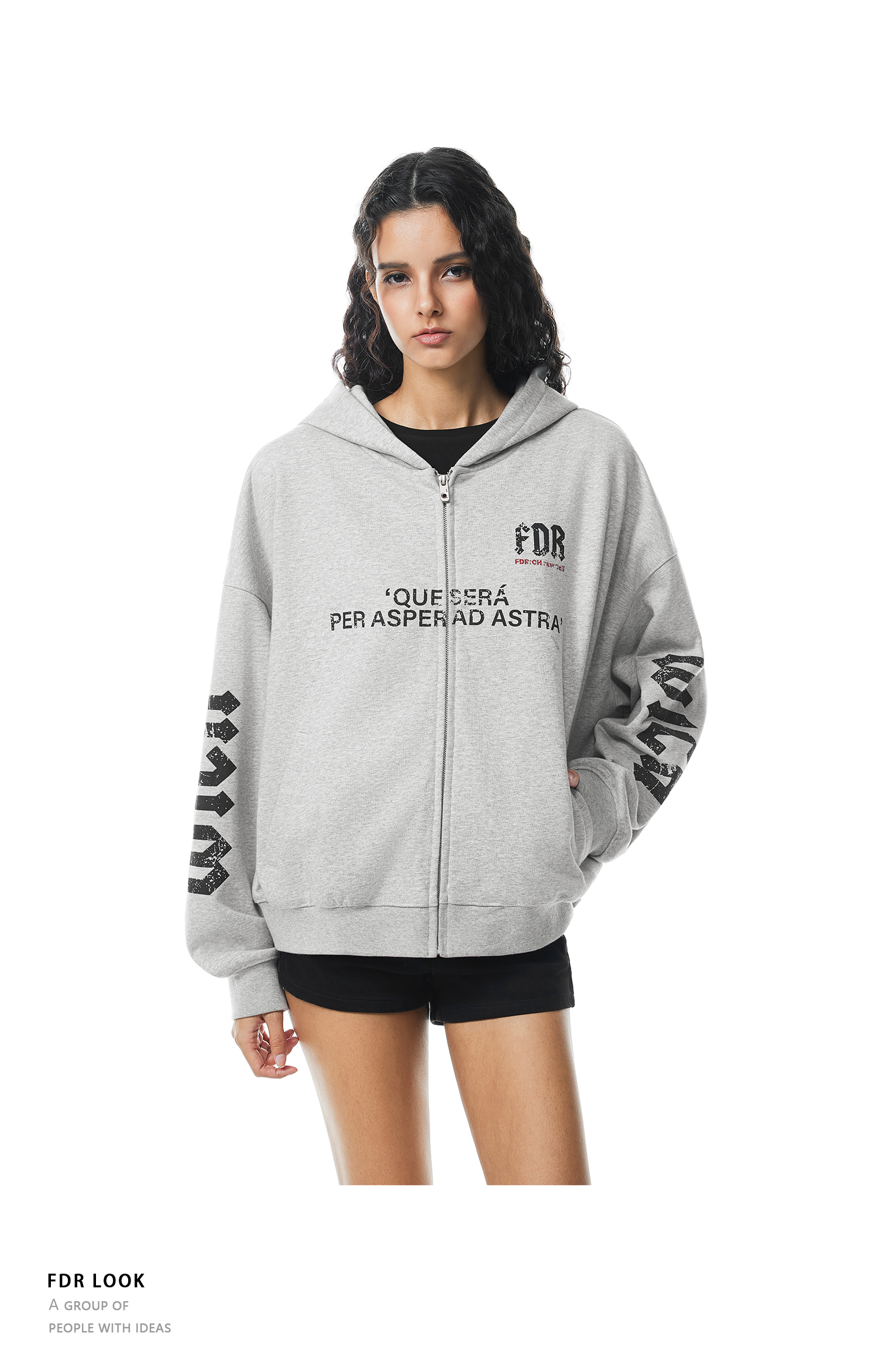 FDR官方店 哥特英文美式连帽卫衣外套男女秋季情侣装宽松开衫上衣