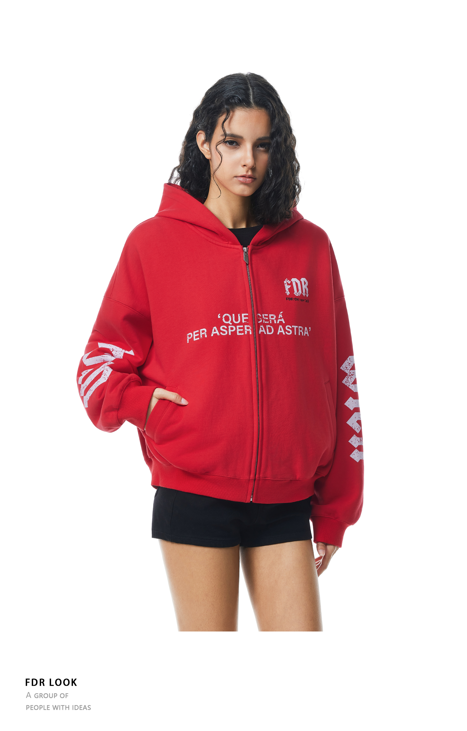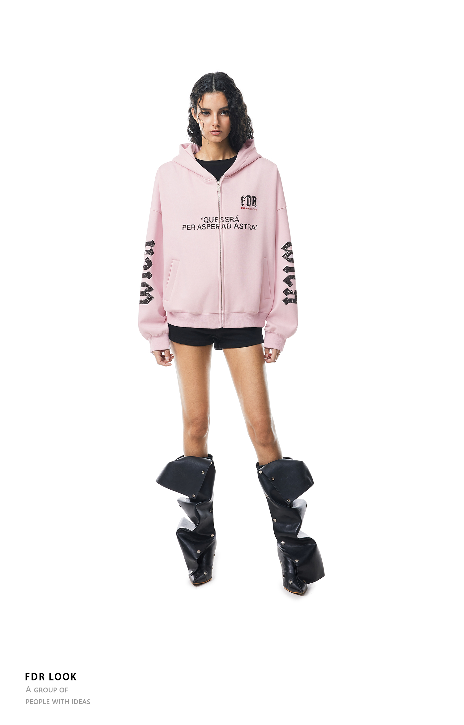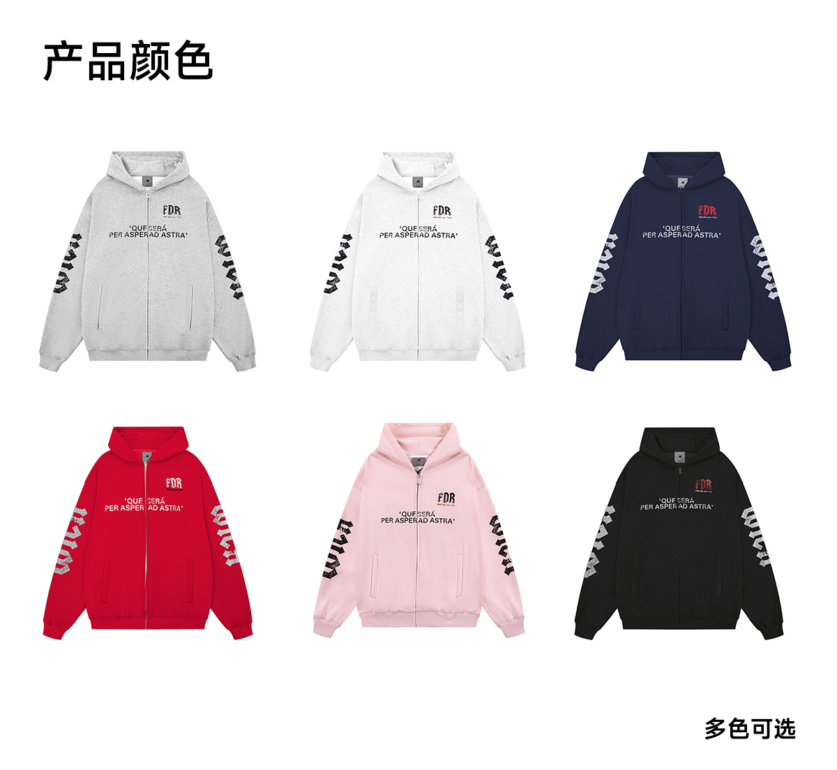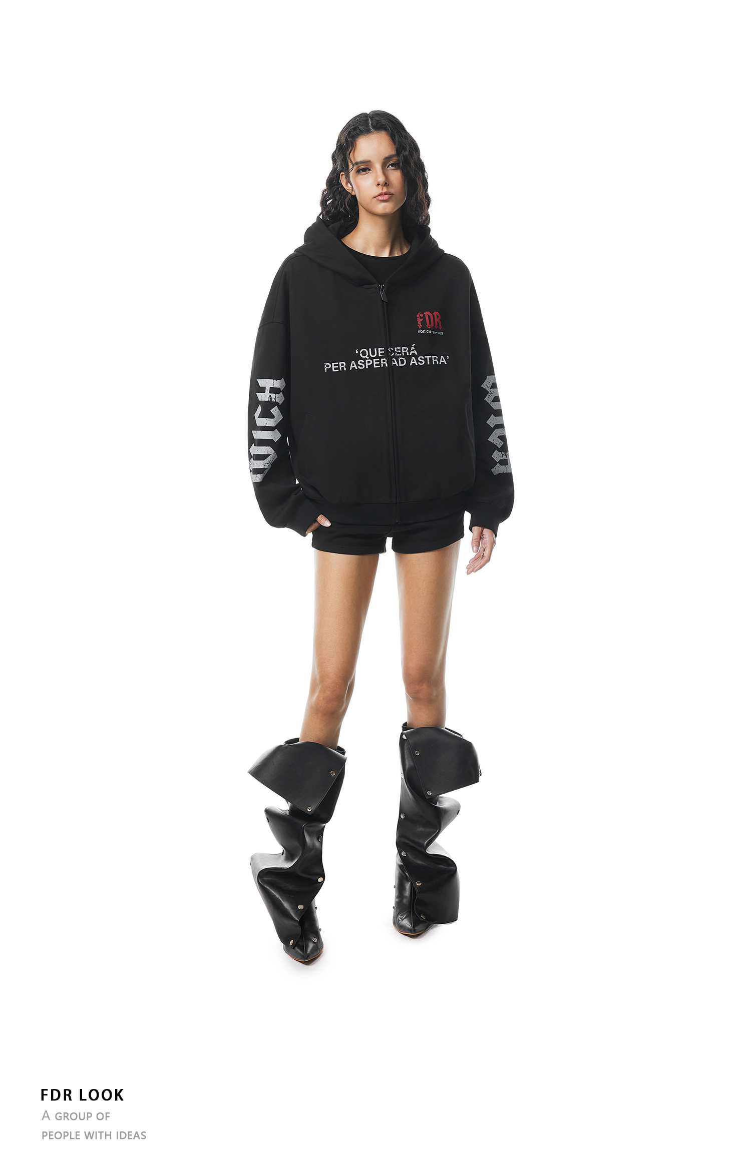 FDR官方店 哥特英文美式连帽卫衣外套男女秋季情侣装宽松开衫上衣