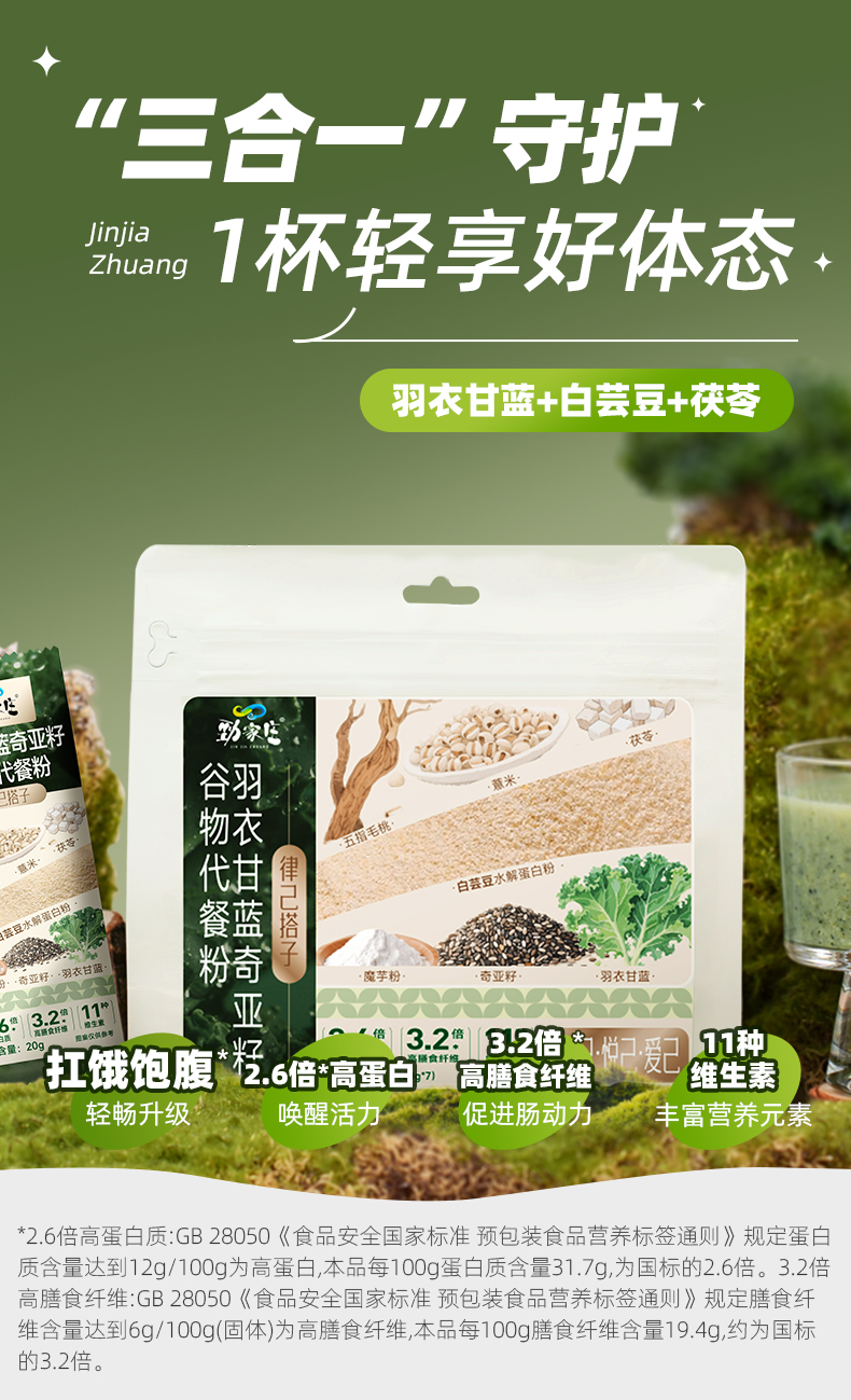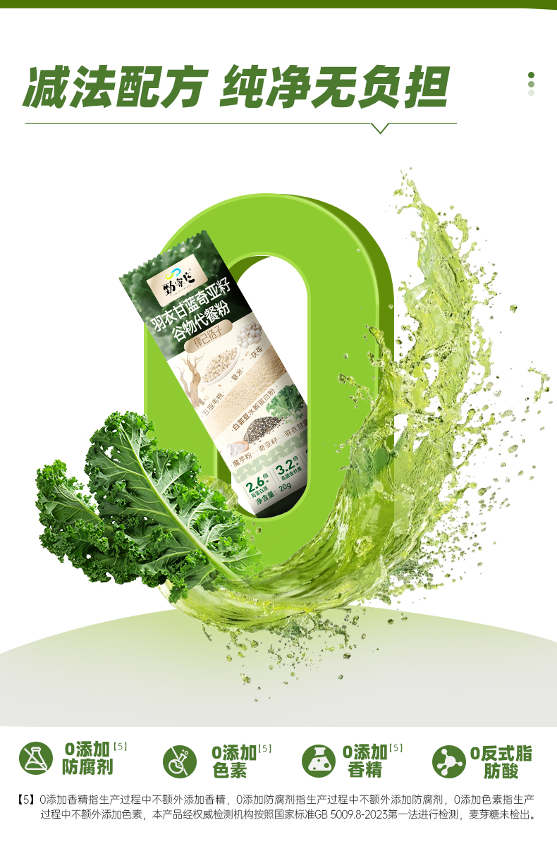 超模食谱同款—羽衣甘蓝奇亚籽代餐粉,一杯汇聚多种植物营养,轻松享受。