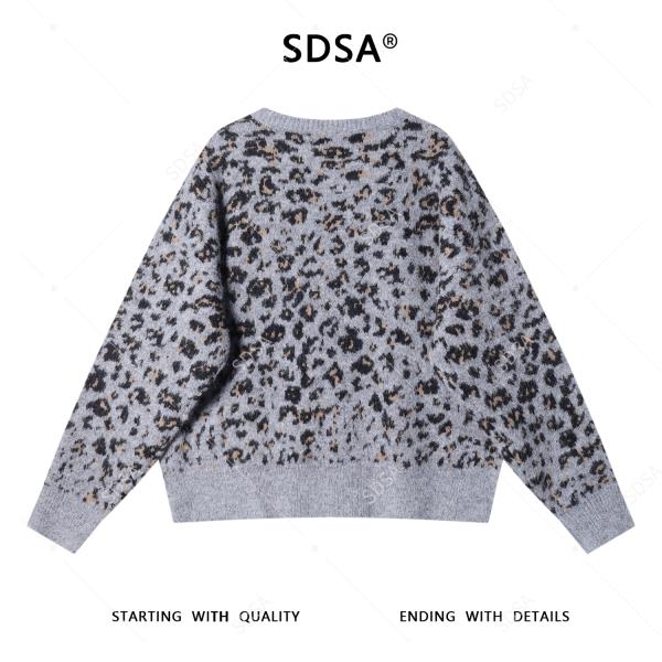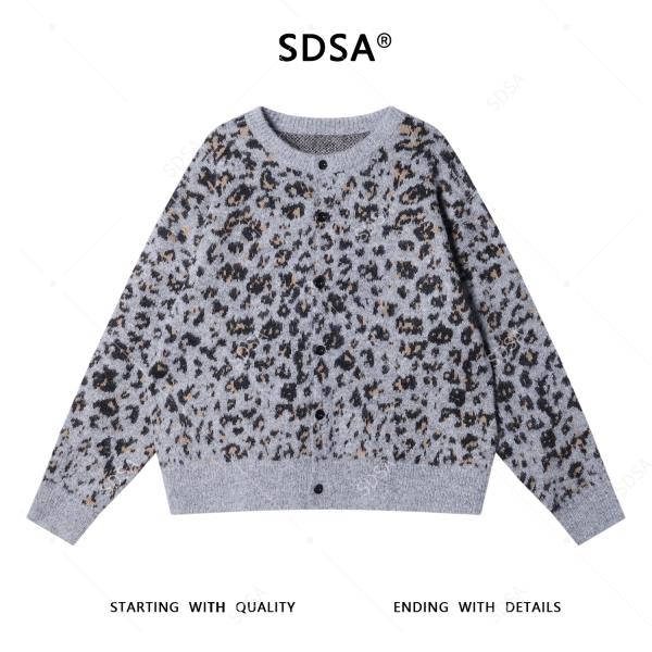44143SDSA男士秋冬新款痞帅男装潮牌豹纹纽扣圆领开衫毛衣慵懒风针织衫