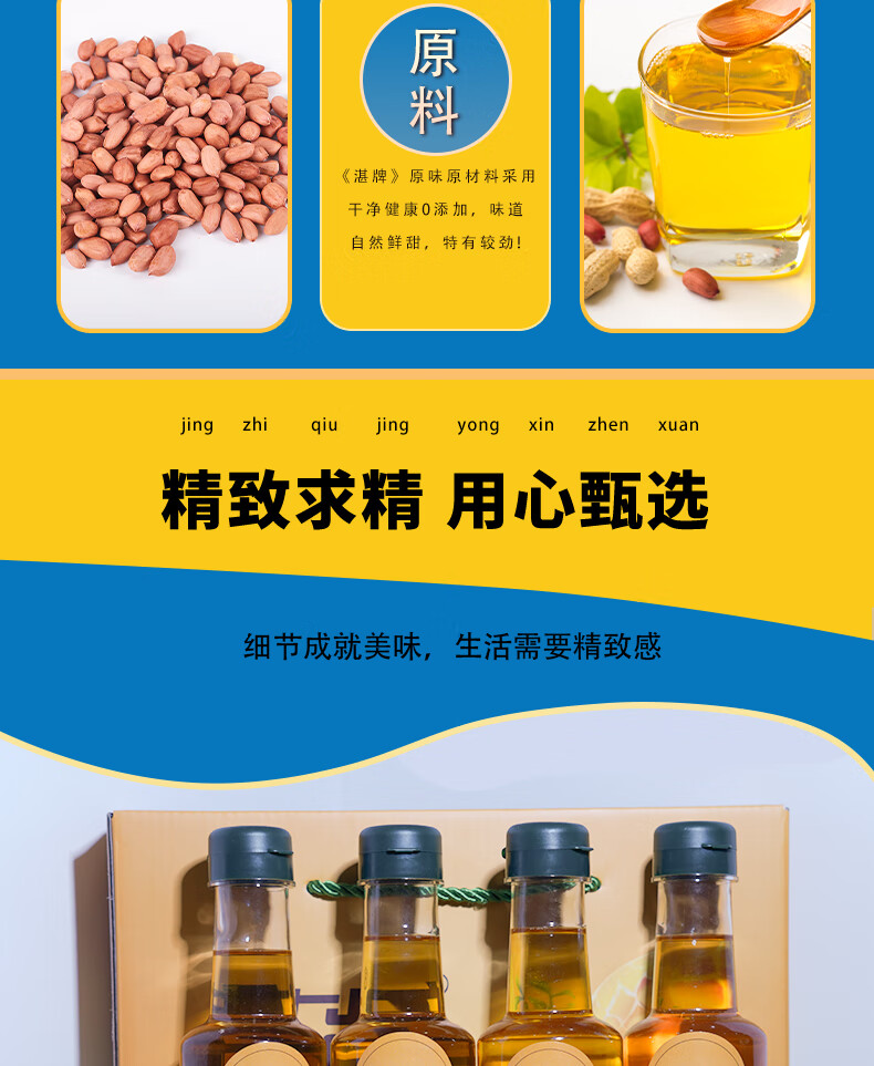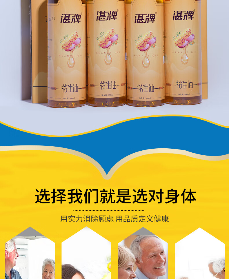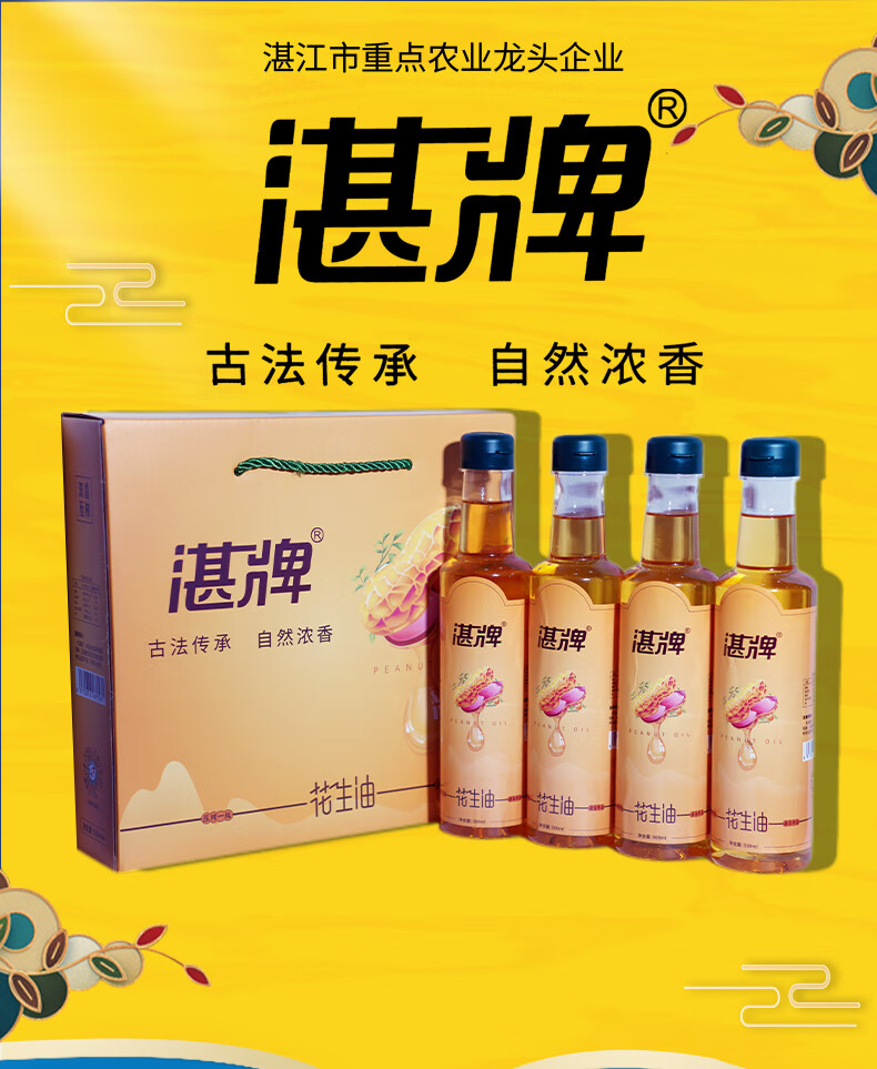 广东湛江 湛牌压榨一级花生油浓香花生油炒菜家庭常用油500ml/瓶*4/盒