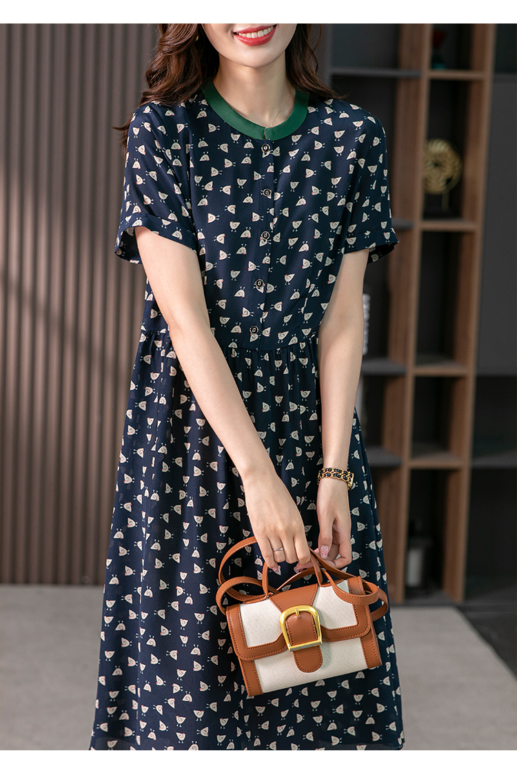 重磅奢华桑蚕丝连衣裙女2024夏季新款印花法式高端真丝裙子