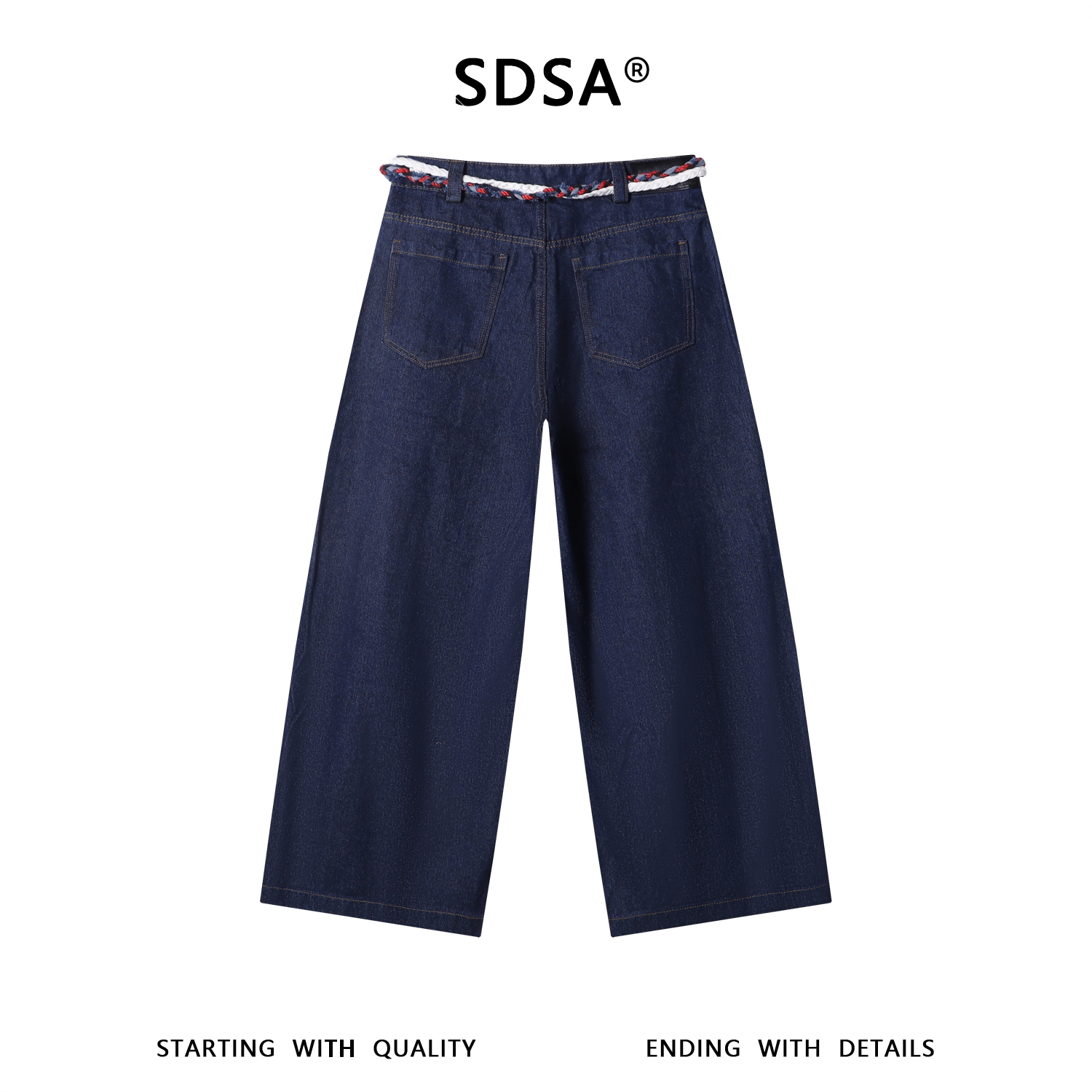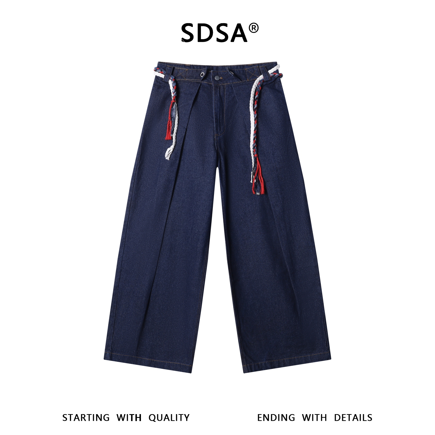 SDSA男装2026新款高贵轻奢美式编织抽绳阔腿牛仔裤复古街头风裤子