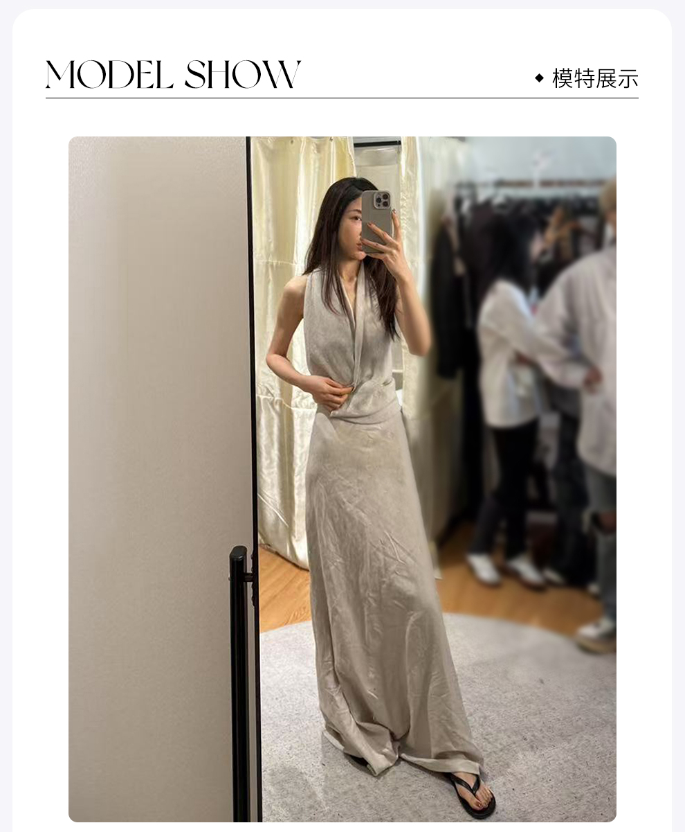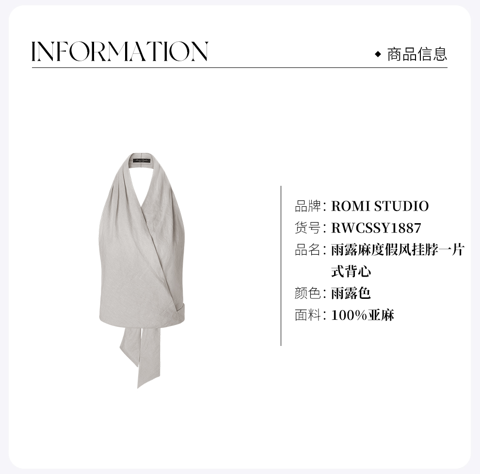 ROMI STUDIO“松弛气息”100%雨露麻一片式斜裁挂脖背 心RWCSSY1887