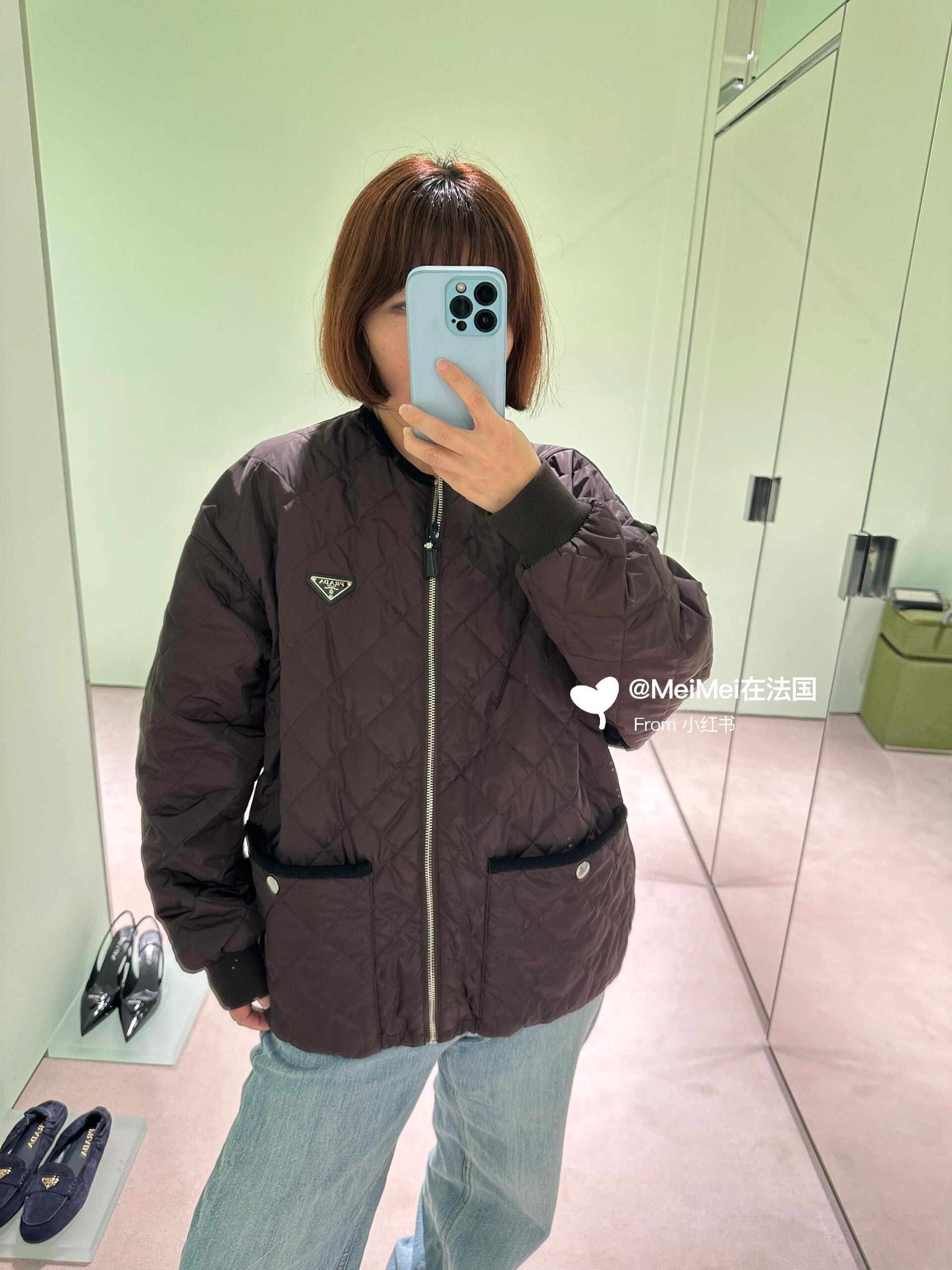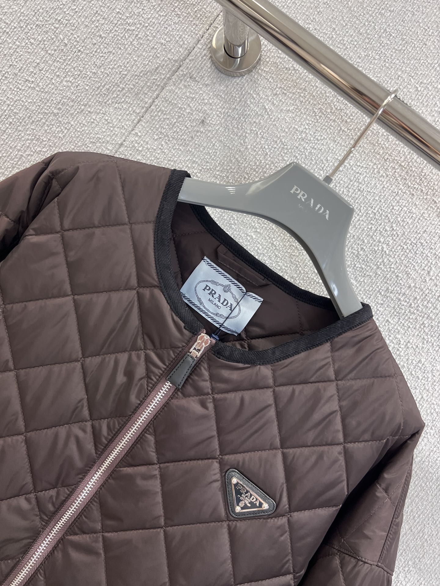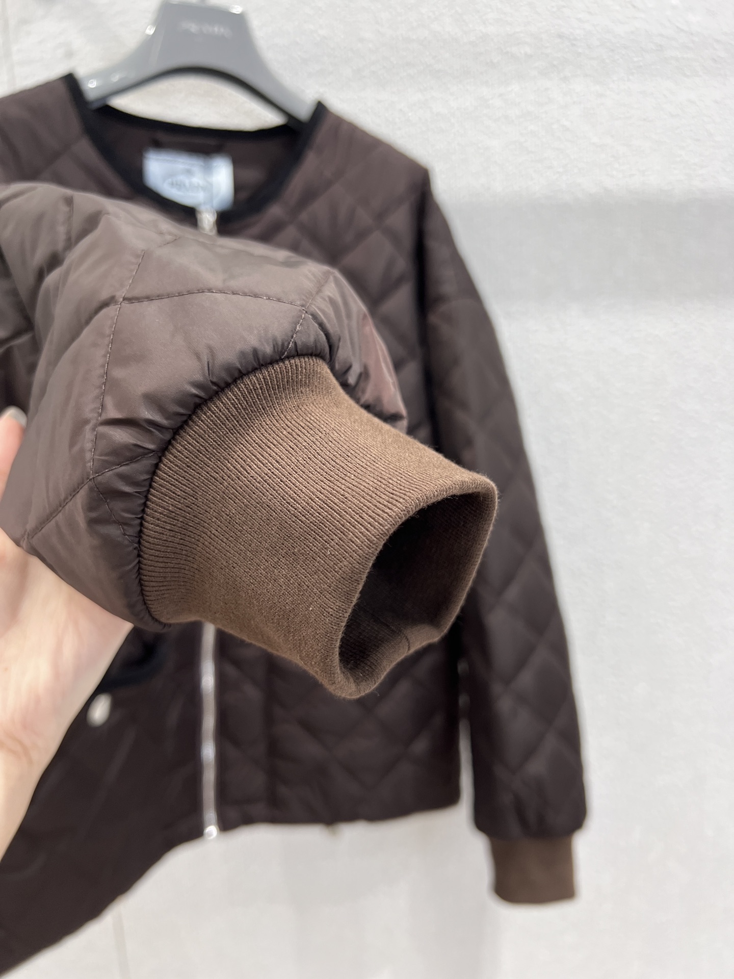 Prad* 25Fw早秋新款 经典三角标圆领菱格纹棉服外套丨⚠独家高版出品!内里夹棉 舒适保暖性强 面料挺阔有型 大口袋设计 好看又很实穿 宽松版型不挑人 包容性强 完美做工品质看细节