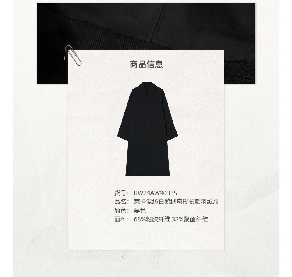 ROMI STUDIO天 丝高弹莱卡混纺白鹅绒廓形长款羽绒服RW24AW90335