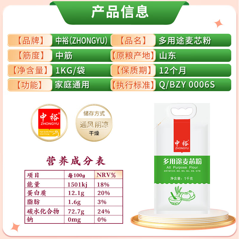 [七彩鲜生]中裕 多用途麦芯粉 (1000g/袋)【俊发城次日自提】