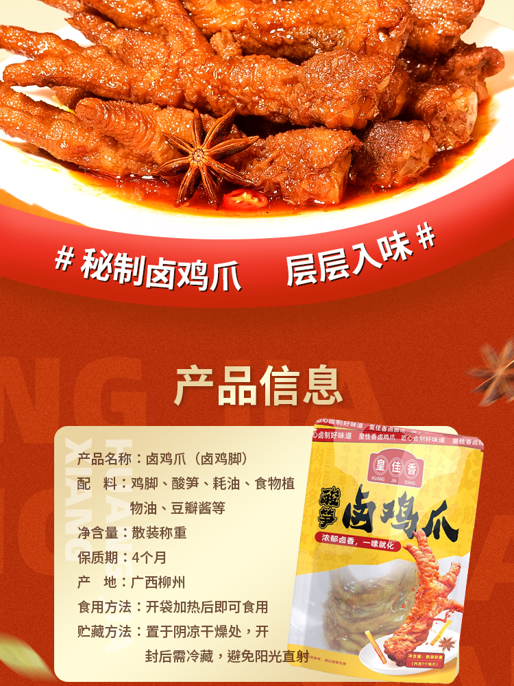 【软软糯糯 一嗦脱骨 】皇佳香卤鸡爪7个装,搭配螺蛳粉绝绝子