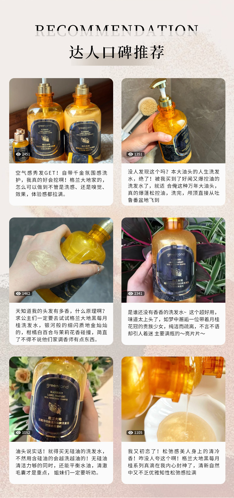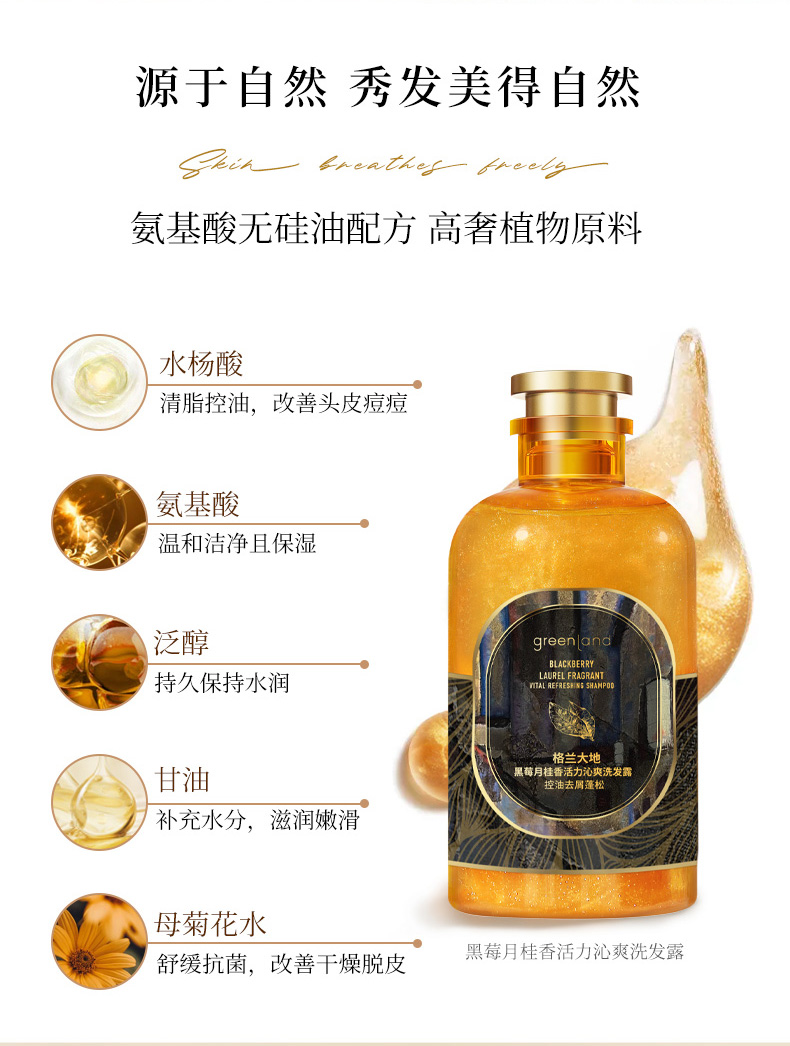 格兰大地(green land)黑莓月桂香活力沁爽洗发露 500ml