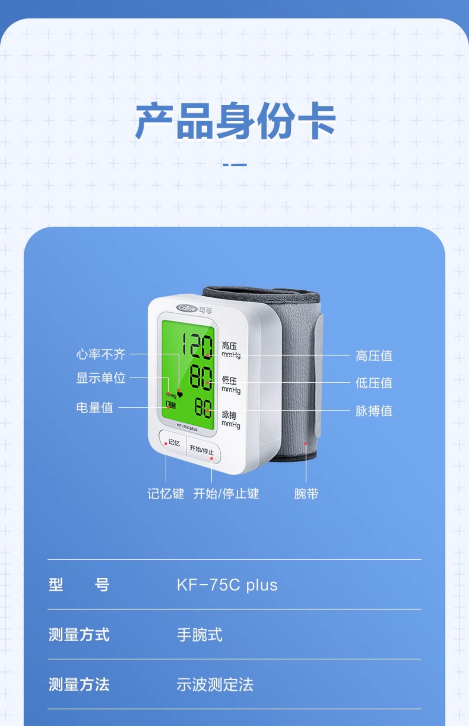 可孚电子手腕式血压测量仪 家用高精准