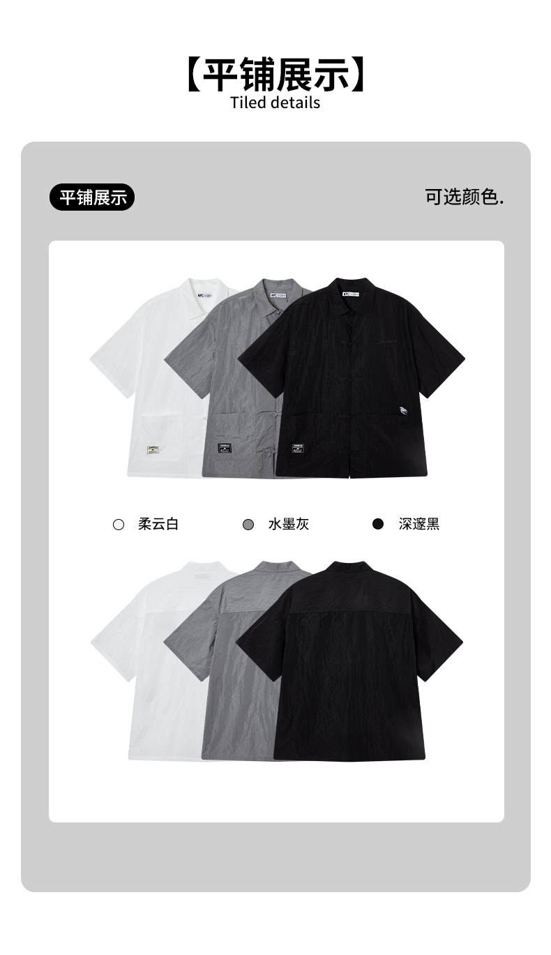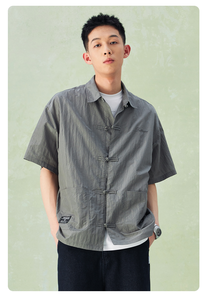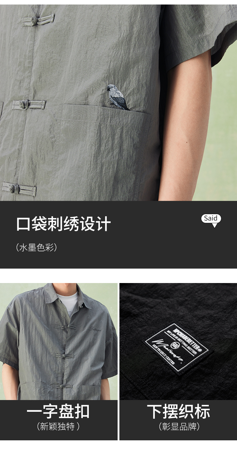 NPC潮牌口袋刺绣翻领中式盘扣短袖衬衫男中国风慵懒男NP44SH10
