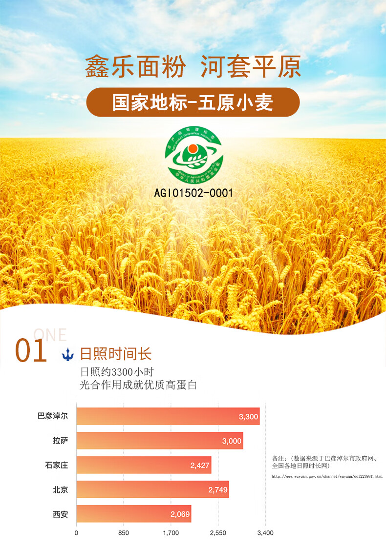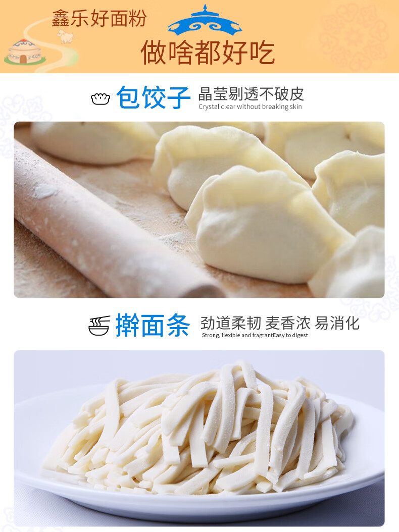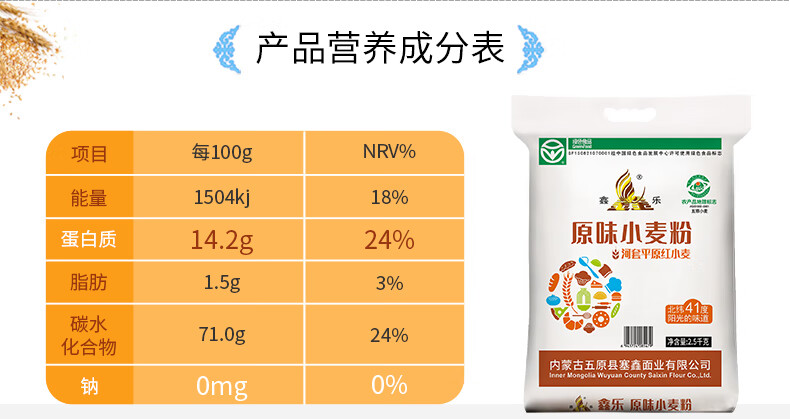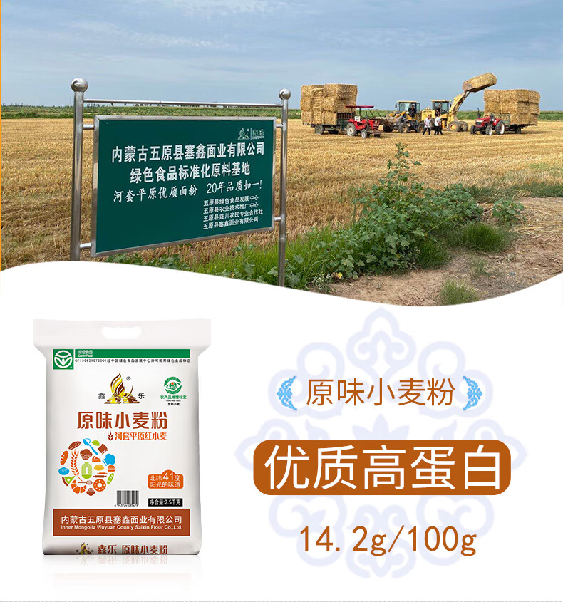鑫乐 原味小麦粉 无添加绿色食品 国家地标五原小麦 自然原味麦香浓2.5kg/袋