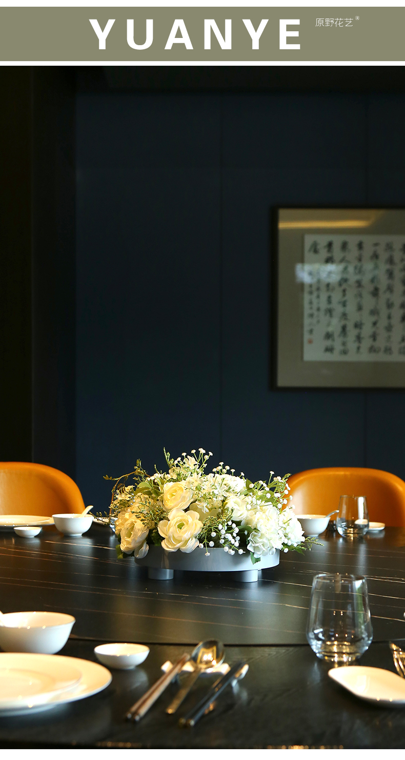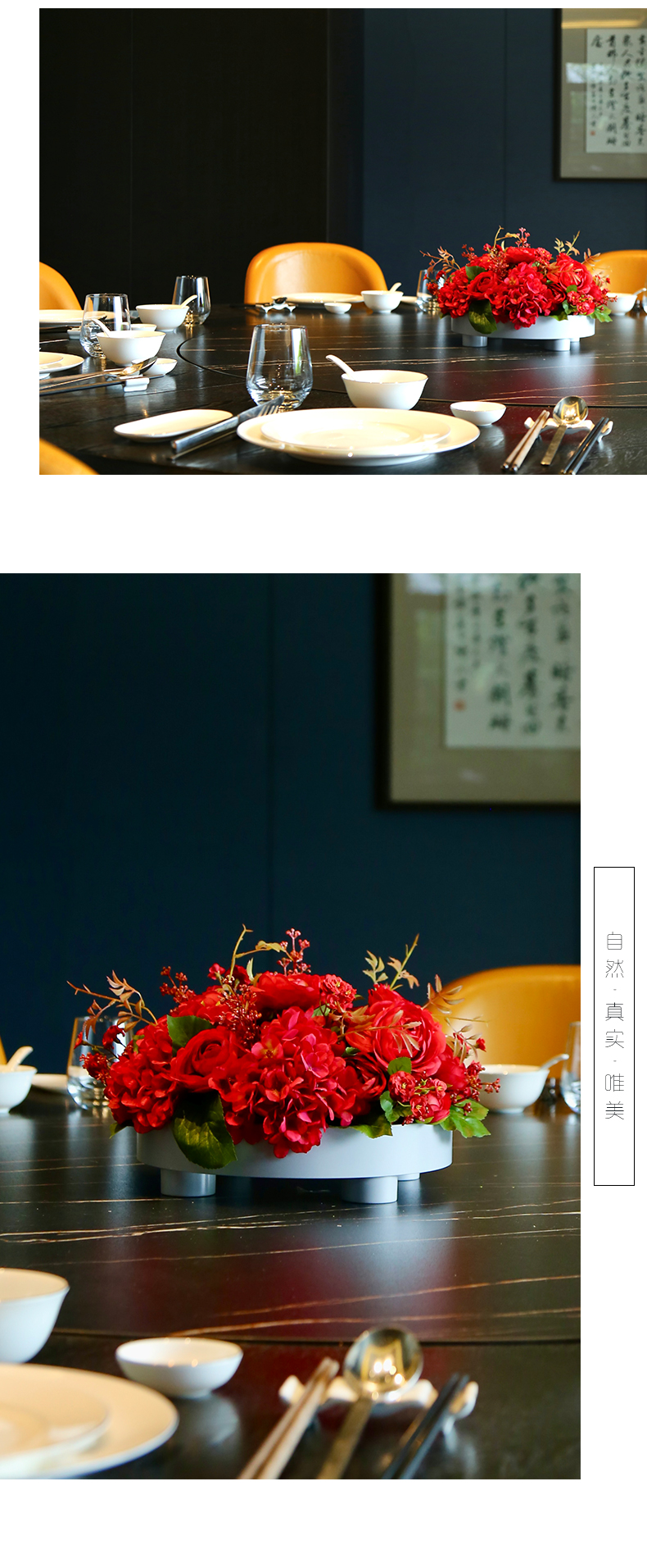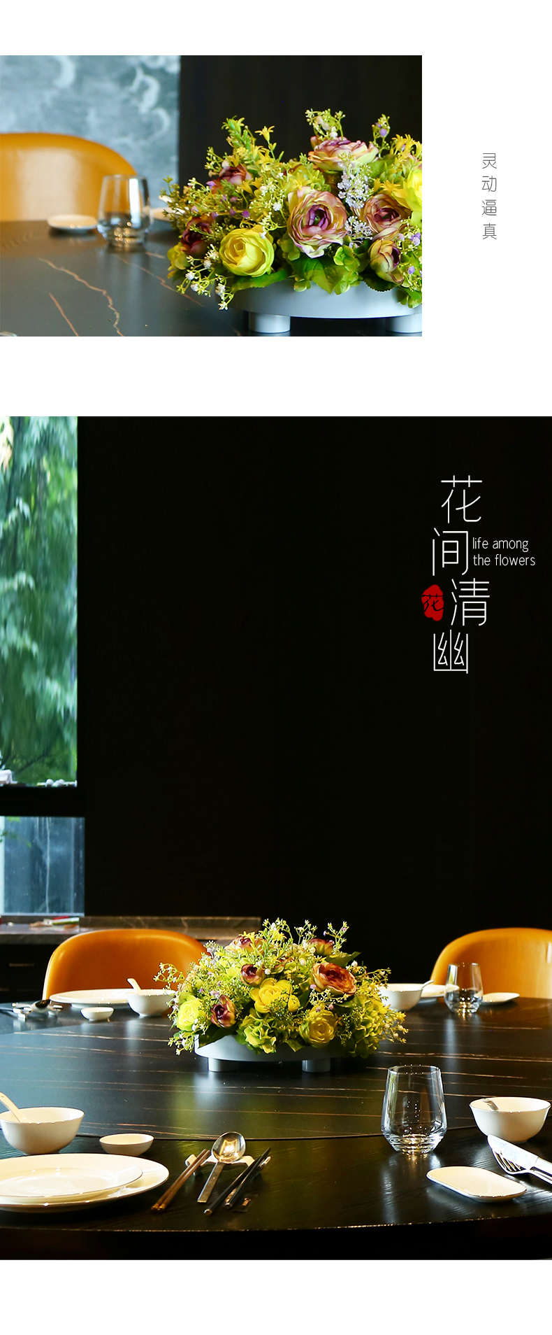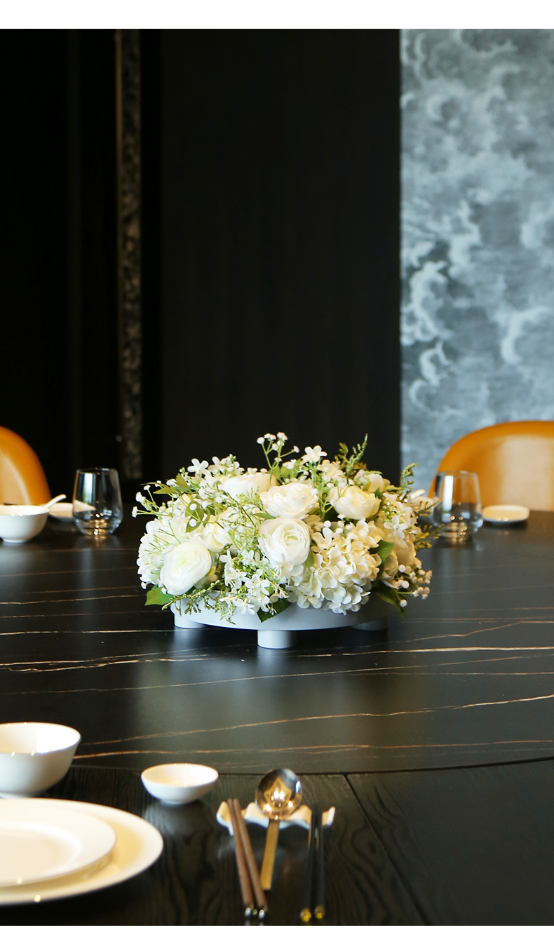 高档餐桌花仿真花圆桌转盘桌面酒店餐厅包厢客厅大装饰假花摆设件