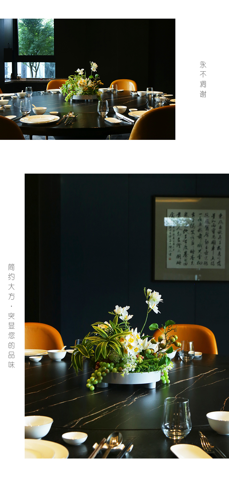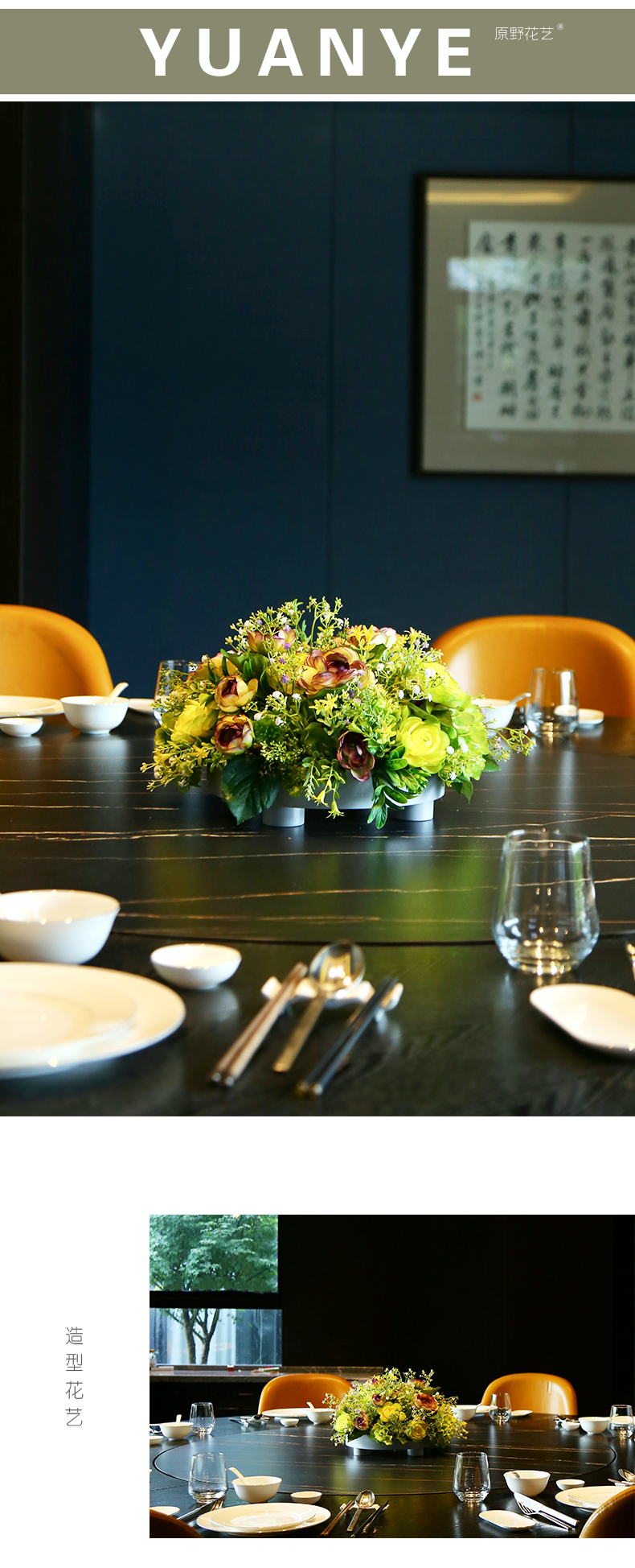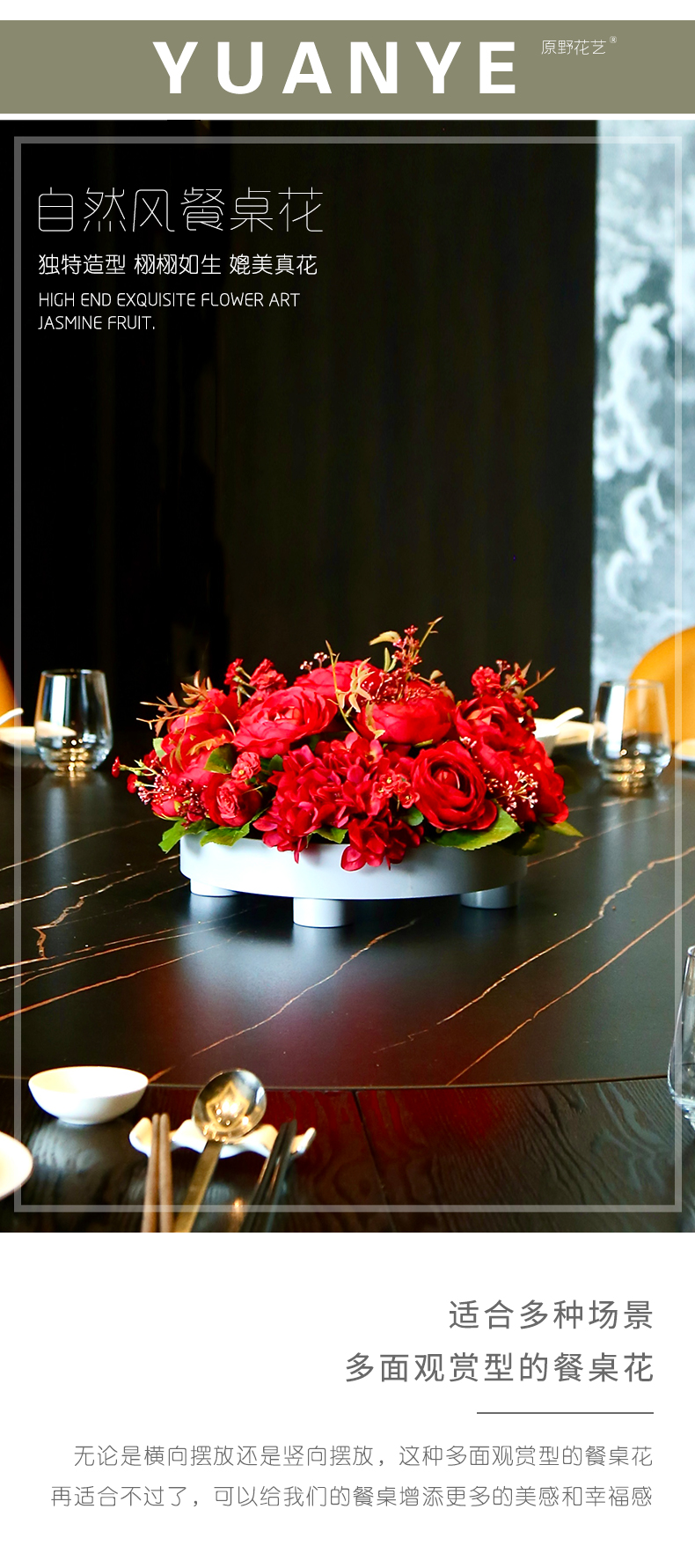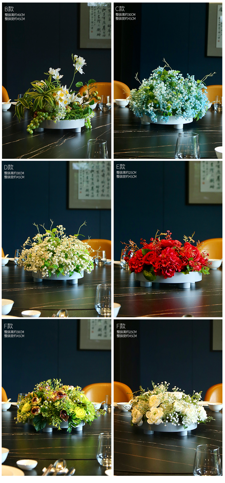 高档餐桌花仿真花圆桌转盘桌面酒店餐厅包厢客厅大装饰假花摆设件